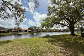 This updated two-bedroom, two-bathroom condo in Montego Cove, a 55-plus community, features a spacious courtyard patio and an enclosed porch with lake views. Inside, you'll find newer LVT flooring, an updated kitchen with granite countertops, and a generous living and dining area. The primary suite has walk-in closets, and there's storm protection with accordion hurricane shutters. Community amenities include two swimming pools, tennis and pickleball courts, and a clubhouse for social activities. Conveniently located near downtown Stuart, US-1 shopping, local beaches, and medical facilities.