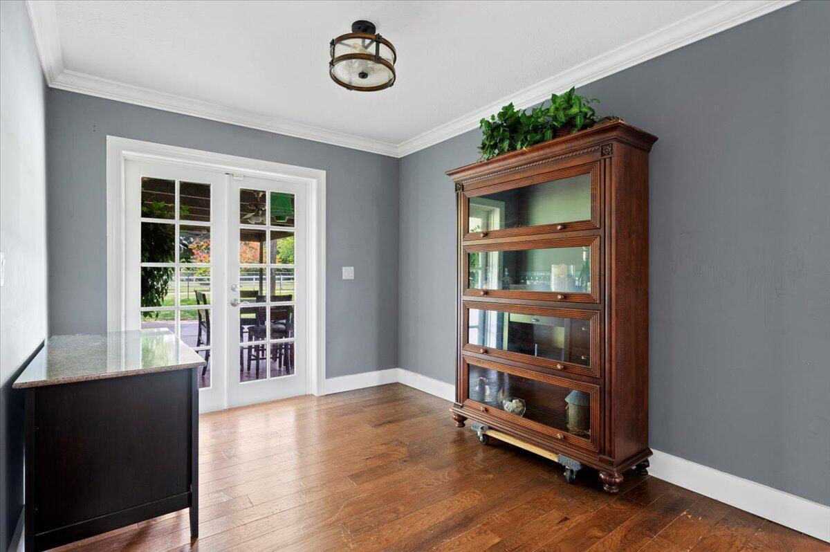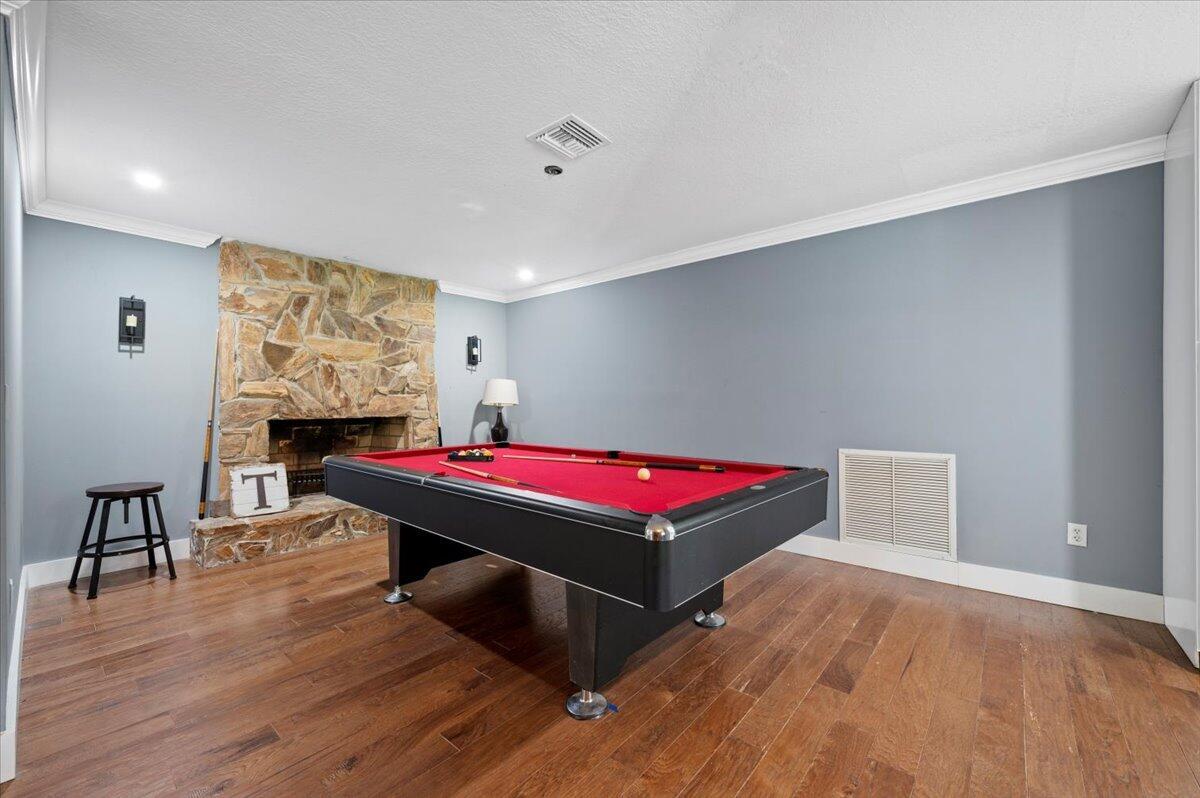 Built-in Shelves, Entry Lvl Lvng Area, Pantry, Pull Down Stairs, Split Bedroom, Walk-in Closet, Closet Cabinets, Cook Island, Fireplace(s), French Door