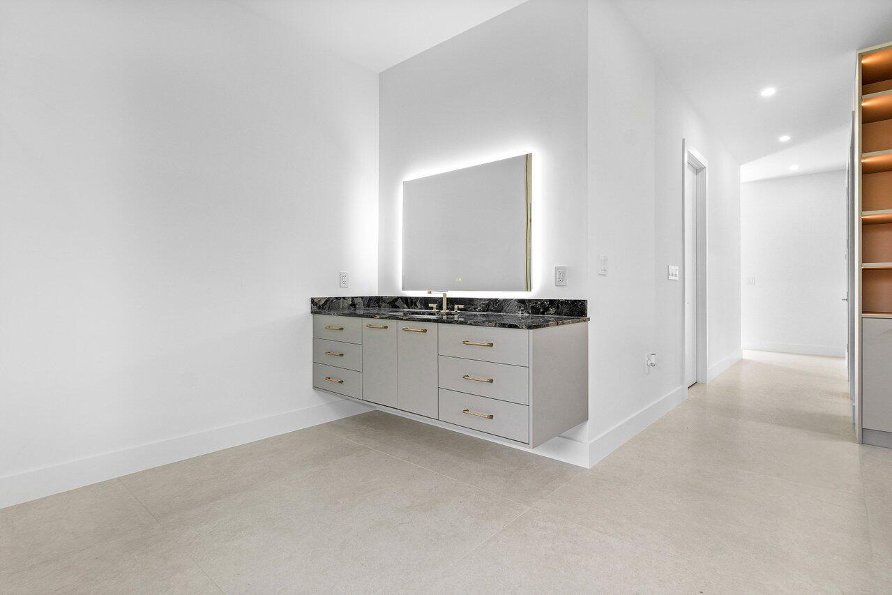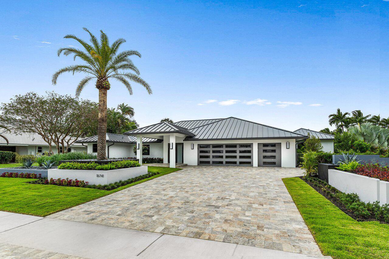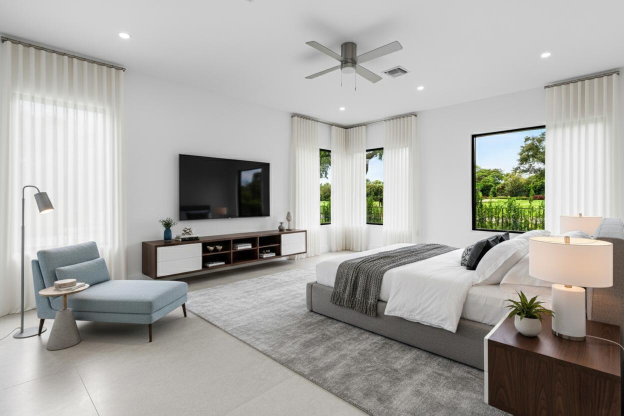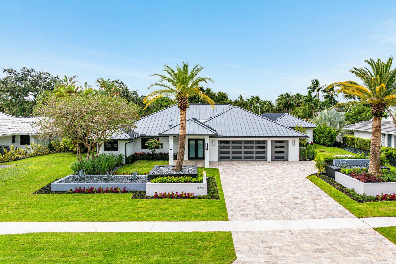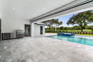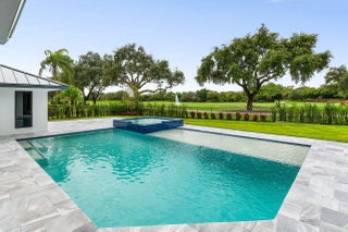 This is truly one of the most spectacular opportunities in all of Delaire Country Club! Perfectly situated on a deep golf-view lot, with the convenience of being just inside the gates for effortless access, this residence has been reimagined with pure sophistication and detail at every turn. From the moment you arrive, the home's stunning curb appeal is undeniable -- a charcoal metal roof, modern bronze fencing, custom professional landscaping with irrigation, and a striking driveway of silver tumbled pavers set the stage. Modern wall sconces cast dramatic light against the elegant stucco exterior, while French pattern Gray Pearl pavers lead you toward a warm welcome. Inside, over 4,100 sq. ft. of masterfully designed space unfolds with soaring 9' to 14' tray ceilings and gleaming 48x48Italian porcelain tile. The expansive floor plan offers 4 ensuite bedrooms, a gracious office/den, and bonus areas that can transform into a media room, gym, or play space. A smart home system seamlessly integrates lights, locks, and climate, while impact glass windows and sliders ensure both energy efficiency and peace of mind. The chef's kitchen is a work of art, quartz countertops, custom soft-close cabinetry with pull-outs, a massive island, Sub-Zero, Wolf, and Bosch appliances, walk-in pantry, and quartz backsplash with under-cabinet and pendant lighting. The primary suite is a private sanctuary featuring dramatic corner windows with panoramic golf course views, dual commodes, a spa-inspired bath with double vanities, LED mirrors, custom lighting, a soaking tub, and a walk-in shower designed for ultimate relaxation. Step outside to your private resort retreat: a natural gas heated pool with a beach entry sun shelf, surrounded by sleek pavers and lush tropical landscaping. Entertain with ease from the covered lanai and custom outdoor kitchen, complete with natural gas appliances. Evenings glow with designer exterior lighting, while the whole-house generator and pre-wired security system deliver comfort and confidence. A two-car garage plus golf cart garage add practicality without compromising elegance. This home is a statement of luxury living in award-winning Delaire Country Club, a boutique community known for its championship 27-hole golf course (no tee times required). The clubhouse itself is a work of art, offering a 16,000 sq. ft. fitness center, resort-style pool, eight Har-Tru tennis courts, four brand-new pickleball courts, and world-class dining. With Delaire's extended family policy, your loved ones can fully embrace this vibrant, private club lifestyle.