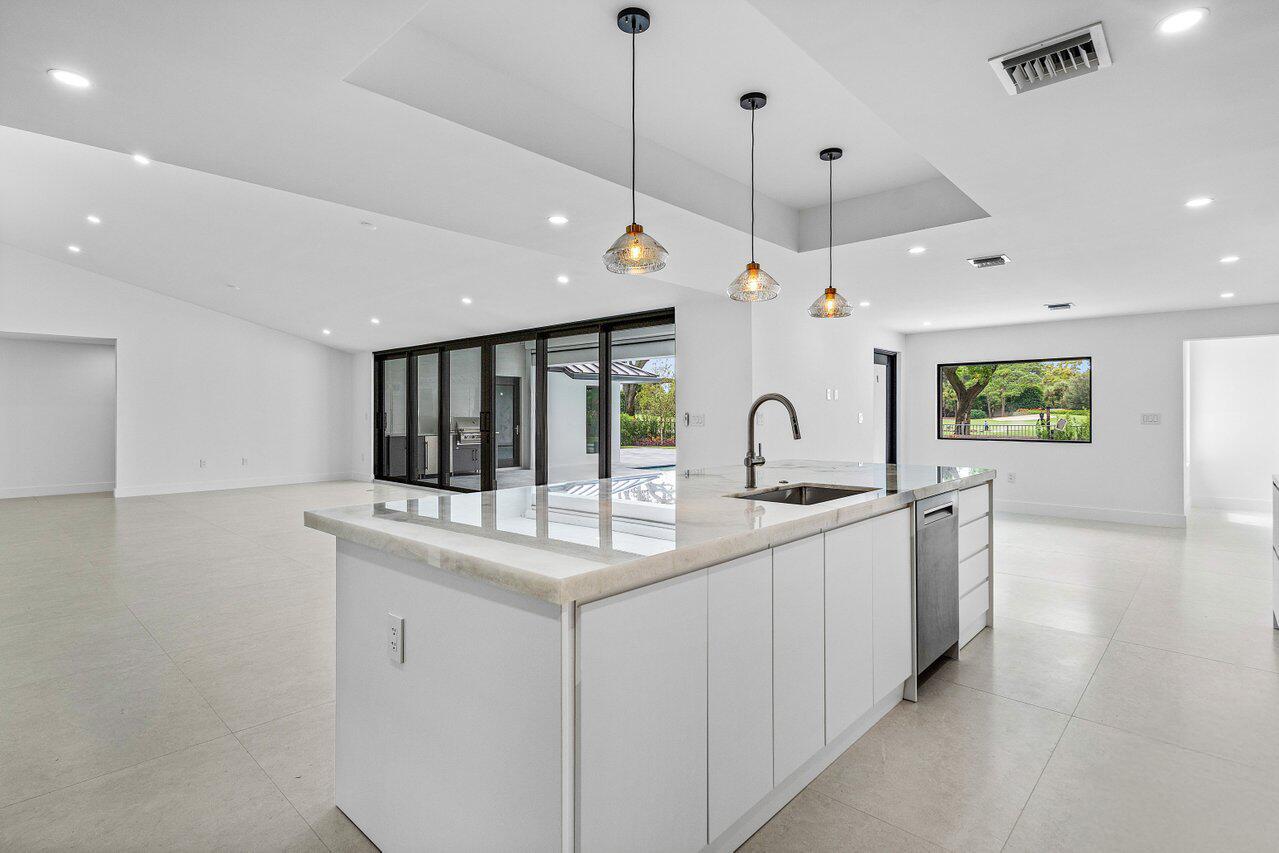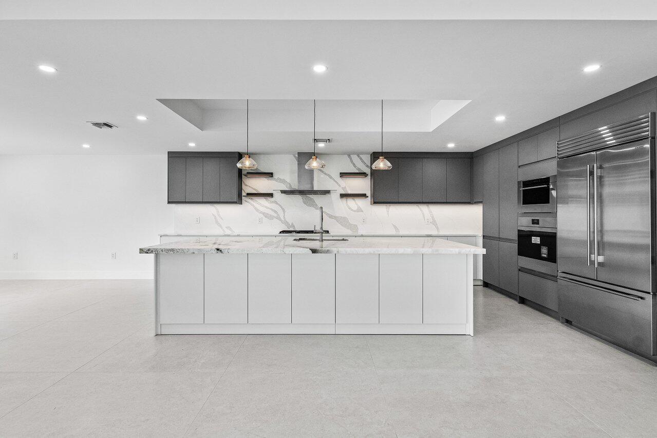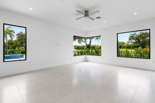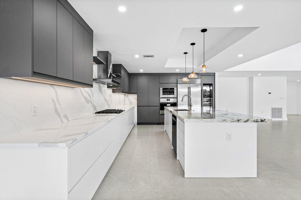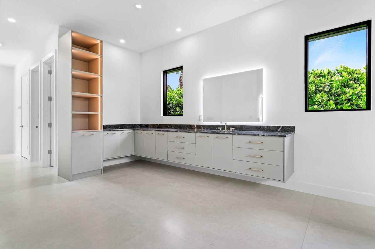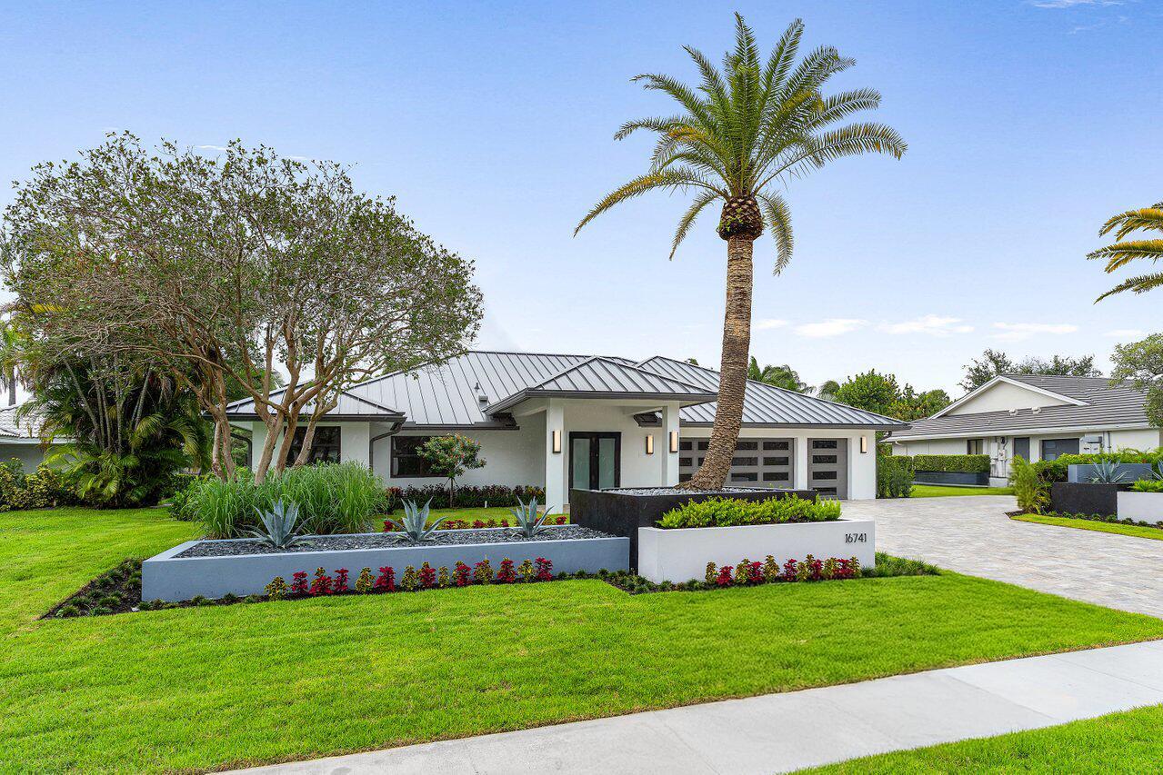 This is truly one of the most spectacular opportunities in all of Delaire Country Club! Perfectly situated on a deep golf-view lot, with the convenience of being just inside the gates for effortless access, this residence has been reimagined with pure sophistication and detail at every turn. From the moment you arrive, the home's stunning curb appeal is undeniable -- a charcoal metal roof, modern bronze fencing, custom professional landscaping with irrigation, and a striking driveway of silver tumbled pavers set the stage. Modern wall sconces cast dramatic light against the elegant stucco exterior, while French pattern Gray Pearl pavers lead you toward a warm welcome. Inside, over 4,100 sq. ft. of masterfully designed space unfolds with soaring 9' to 14' tray ceilings and gleaming 48x48Italian porcelain tile. The expansive floor plan offers 4 ensuite bedrooms, a gracious office/den, and bonus areas that can transform into a media room, gym, or play space. A smart home system seamlessly integrates lights, locks, and climate, while impact glass windows and sliders ensure both energy efficiency and peace of mind. The chef's kitchen is a work of art, quartz countertops, custom soft-close cabinetry with pull-outs, a massive island, Sub-Zero, Wolf, and Bosch appliances, walk-in pantry, and quartz backsplash with under-cabinet and pendant lighting. The primary suite is a private sanctuary featuring dramatic corner windows with panoramic golf course views, dual commodes, a spa-inspired bath with double vanities, LED mirrors, custom lighting, a soaking tub, and a walk-in shower designed for ultimate relaxation. Step outside to your private resort retreat: a natural gas heated pool with a beach entry sun shelf, surrounded by sleek pavers and lush tropical landscaping. Entertain with ease from the covered lanai and custom outdoor kitchen, complete with natural gas appliances. Evenings glow with designer exterior lighting, while the whole-house generator and pre-wired security system deliver comfort and confidence. A two-car garage plus golf cart garage add practicality without compromising elegance. This home is a statement of luxury living in award-winning Delaire Country Club, a boutique community known for its championship 27-hole golf course (no tee times required). The clubhouse itself is a work of art, offering a 16,000 sq. ft. fitness center, resort-style pool, eight Har-Tru tennis courts, four brand-new pickleball courts, and world-class dining. With Delaire's extended family policy, your loved ones can fully embrace this vibrant, private club lifestyle.