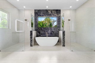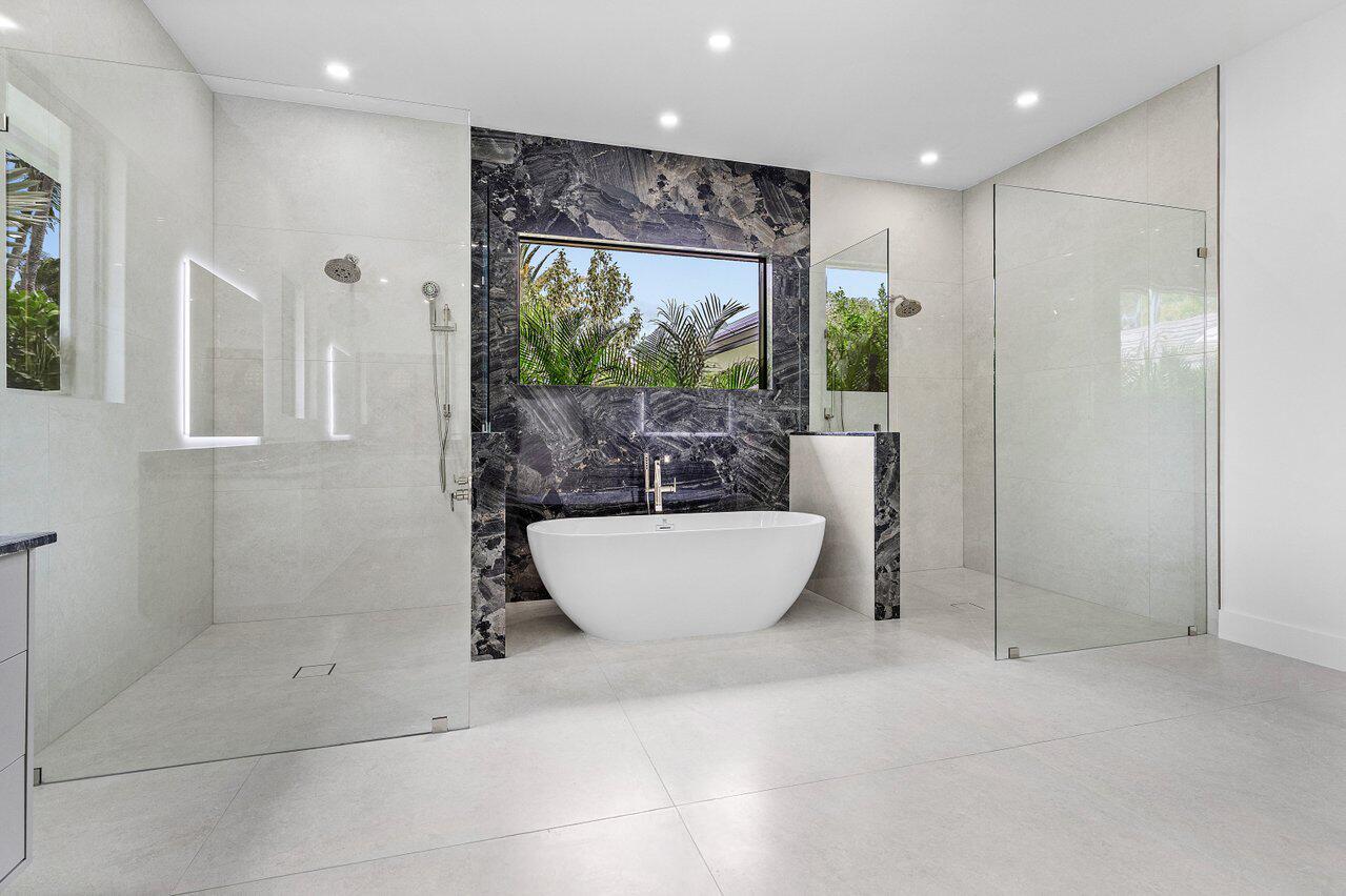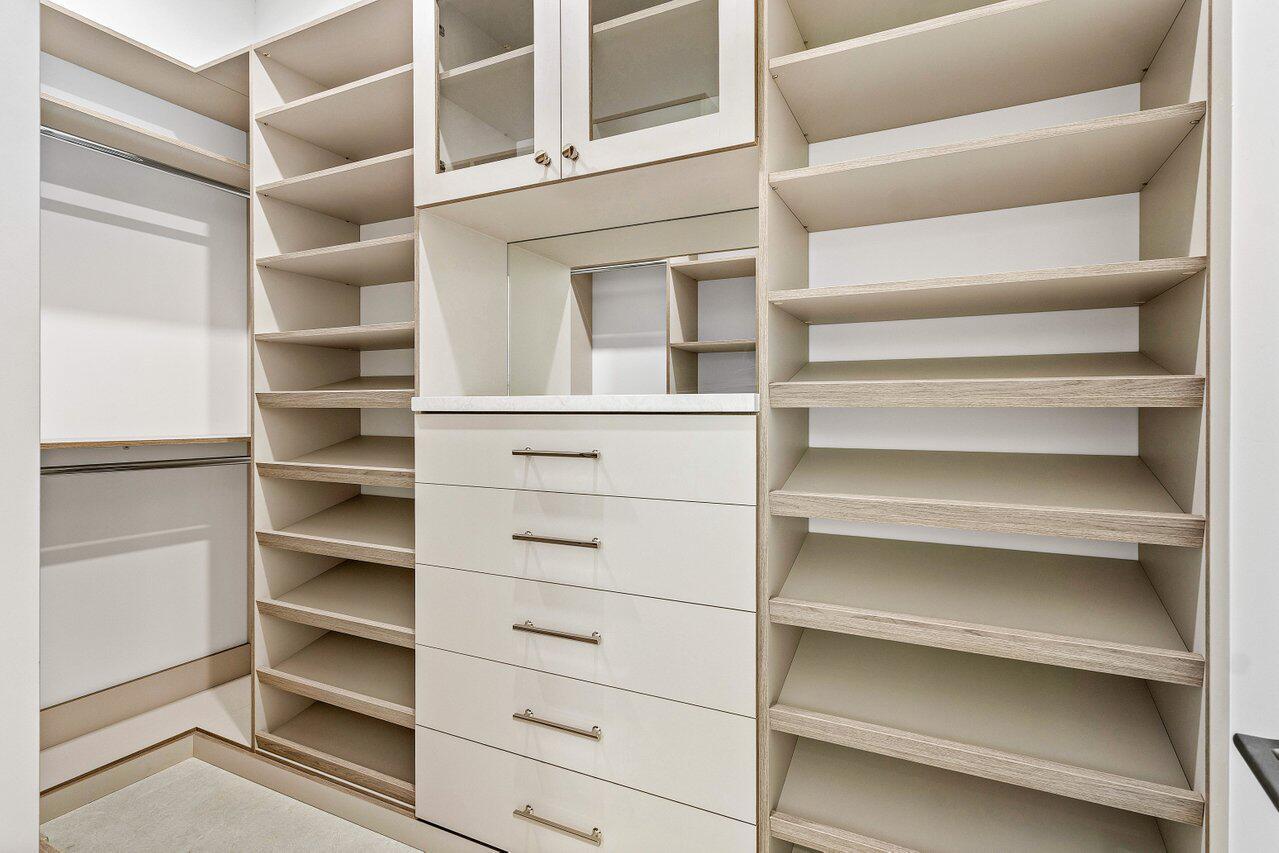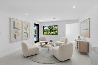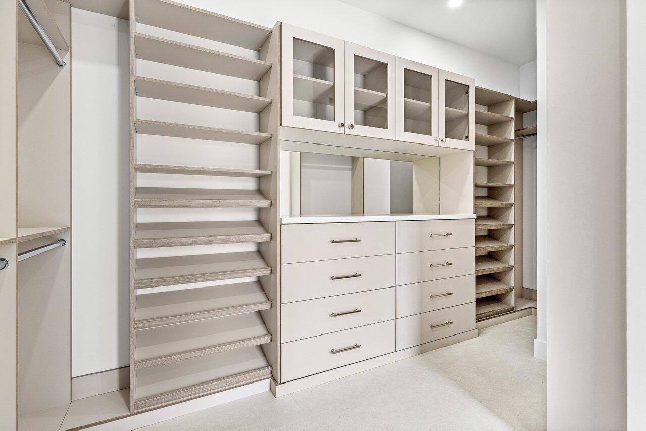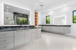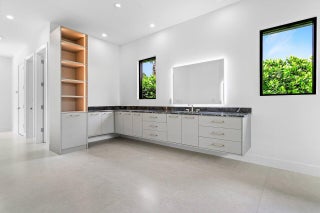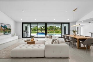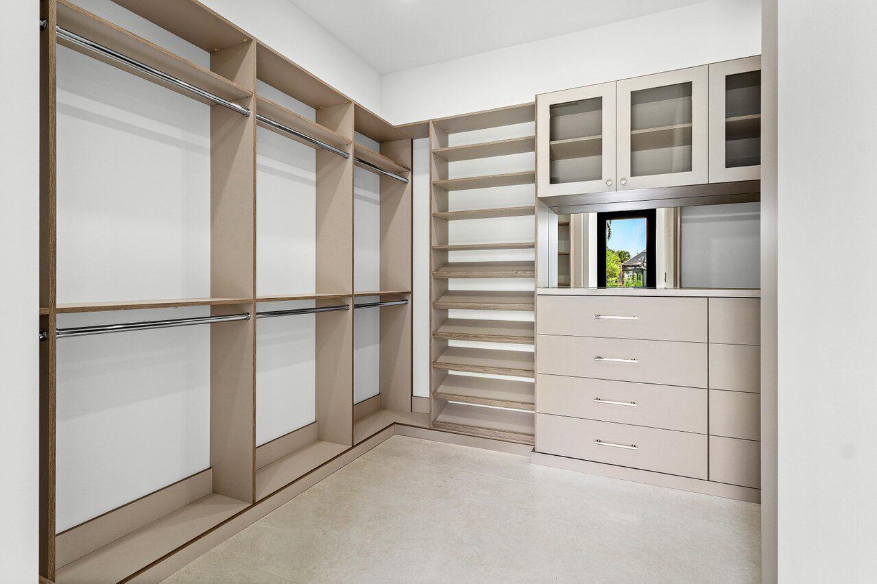 This is truly one of the most spectacular opportunities in all of Delaire Country Club! Perfectly situated on a deep golf-view lot, with the convenience of being just inside the gates for effortless access, this residence has been reimagined with pure sophistication and detail at every turn. From the moment you arrive, the home's stunning curb appeal is undeniable -- a charcoal metal roof, modern bronze fencing, custom professional landscaping with irrigation, and a striking driveway of silver tumbled pavers set the stage. Modern wall sconces cast dramatic light against the elegant stucco exterior, while French pattern Gray Pearl pavers lead you toward a warm welcome. Inside, over 4,100 sq. ft. of masterfully designed space unfolds with soaring 9' to 14' tray ceilings and gleaming 48x48Italian porcelain tile. The expansive floor plan offers 4 ensuite bedrooms, a gracious office/den, and bonus areas that can transform into a media room, gym, or play space. A smart home system seamlessly integrates lights, locks, and climate, while impact glass windows and sliders ensure both energy efficiency and peace of mind. The chef's kitchen is a work of art, quartz countertops, custom soft-close cabinetry with pull-outs, a massive island, Sub-Zero, Wolf, and Bosch appliances, walk-in pantry, and quartz backsplash with under-cabinet and pendant lighting. The primary suite is a private sanctuary featuring dramatic corner windows with panoramic golf course views, dual commodes, a spa-inspired bath with double vanities, LED mirrors, custom lighting, a soaking tub, and a walk-in shower designed for ultimate relaxation. Step outside to your private resort retreat: a natural gas heated pool with a beach entry sun shelf, surrounded by sleek pavers and lush tropical landscaping. Entertain with ease from the covered lanai and custom outdoor kitchen, complete with natural gas appliances. Evenings glow with designer exterior lighting, while the whole-house generator and pre-wired security system deliver comfort and confidence. A two-car garage plus golf cart garage add practicality without compromising elegance. This home is a statement of luxury living in award-winning Delaire Country Club, a boutique community known for its championship 27-hole golf course (no tee times required). The clubhouse itself is a work of art, offering a 16,000 sq. ft. fitness center, resort-style pool, eight Har-Tru tennis courts, four brand-new pickleball courts, and world-class dining. With Delaire's extended family policy, your loved ones can fully embrace this vibrant, private club lifestyle.