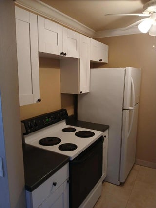 Great location, very quiet. This unit has updated bath, kitchen with plenty of storage cabinets, electric stove, refrigerator, and a tankless waterVinyl flooring and large utility closet