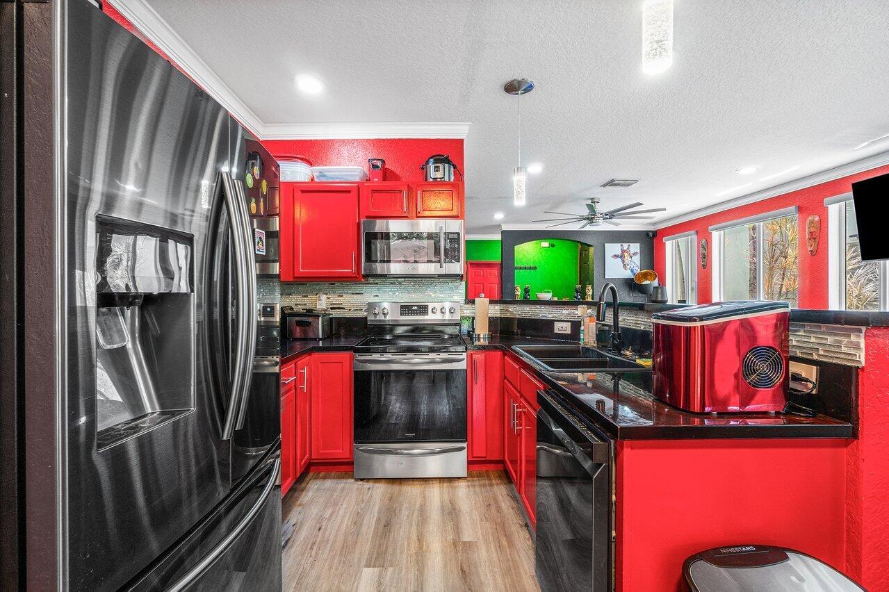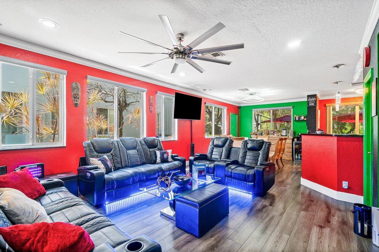 The seller is offering a credit to the buyer for painting the home in the color of their choice.Welcome to this completely updated and immaculately kept 3 bedroom, 2.5 bathroom corner townhome in the desirable Thousand Oaks community. The home features smart-home technology, luxury hardwood floors, custom lighting, crown molding, and hurricane impact windows. The kitchen and living areas flow seamlessly, with thoughtful details like custom blinds, smart ceiling fans, and a Nest thermostat. Additional highlights include a tankless water heater, Ring camera system, WiFi garage door, 1 car garage with a 2 car driveway, and a private outdoor patio with a fire pit, perfect for relaxing or entertaining. The AC was replaced in 2019 for peace of mind. Residents of Thousand OaksResidents of Thousand Oaks enjoy resort-style amenities, including a pool, clubhouse, fitness center, and moreall with the convenience of a low-maintenance lifestyle.