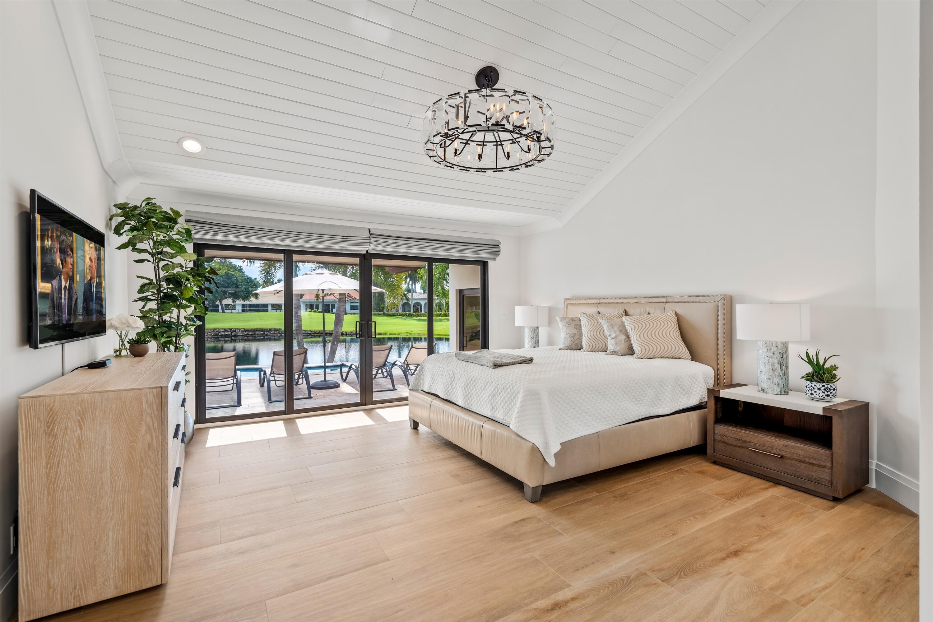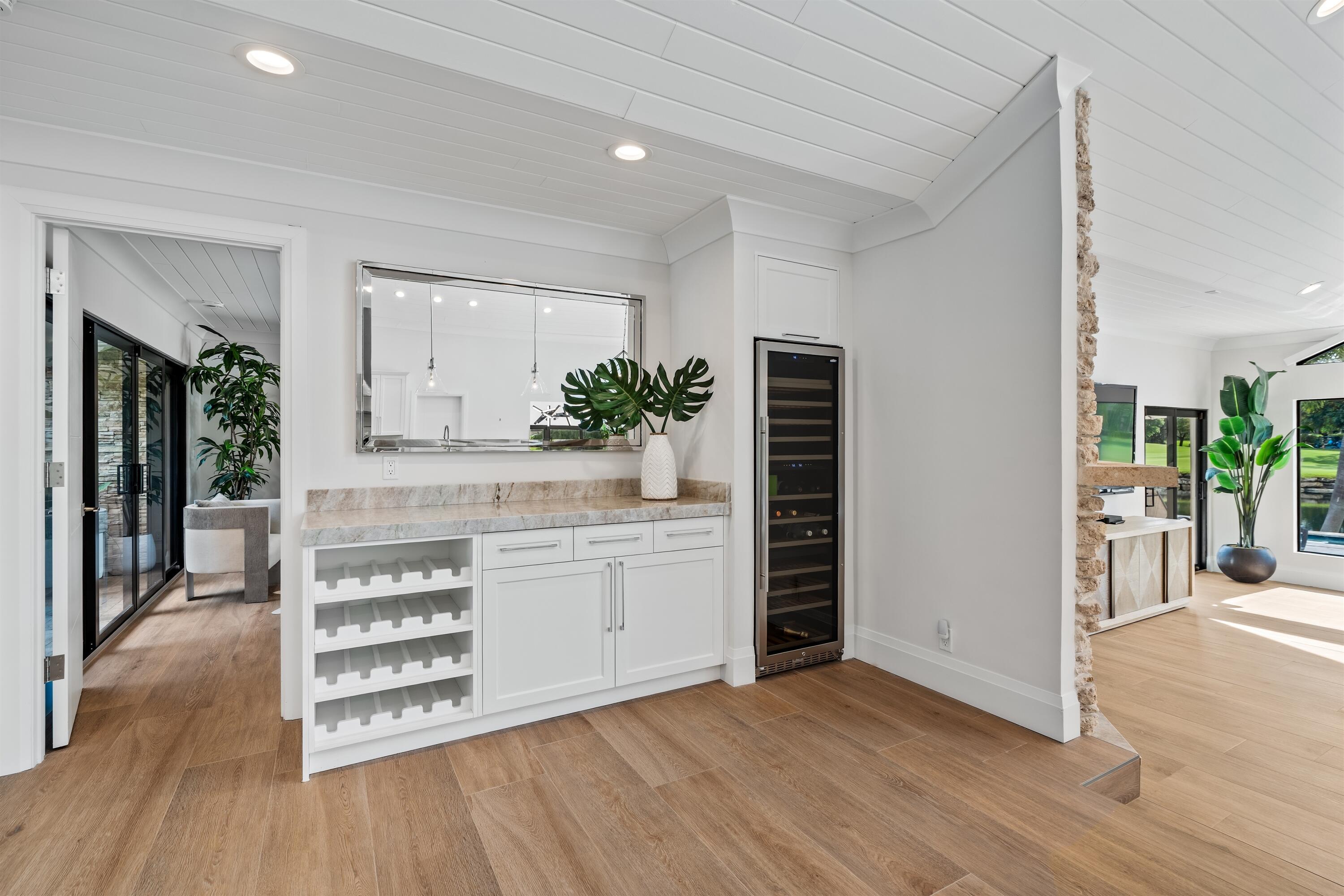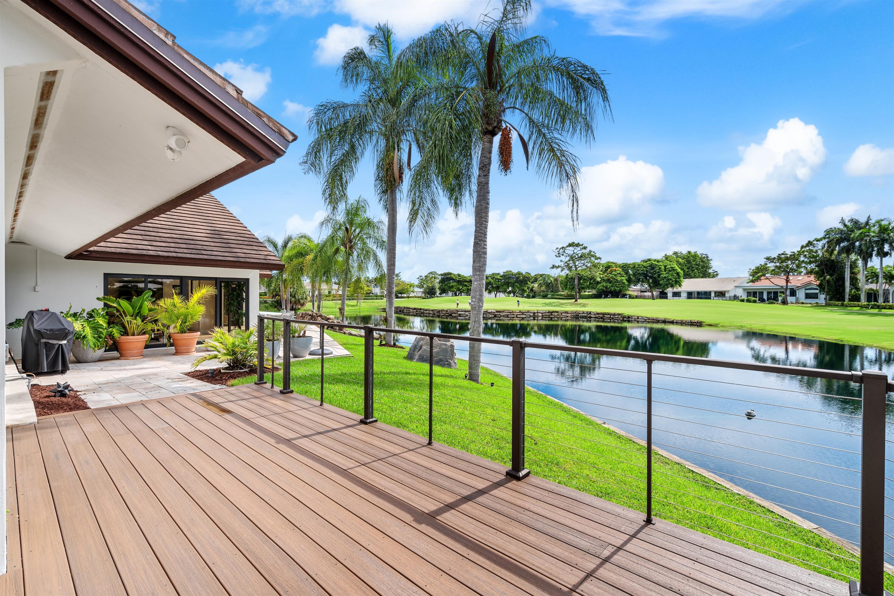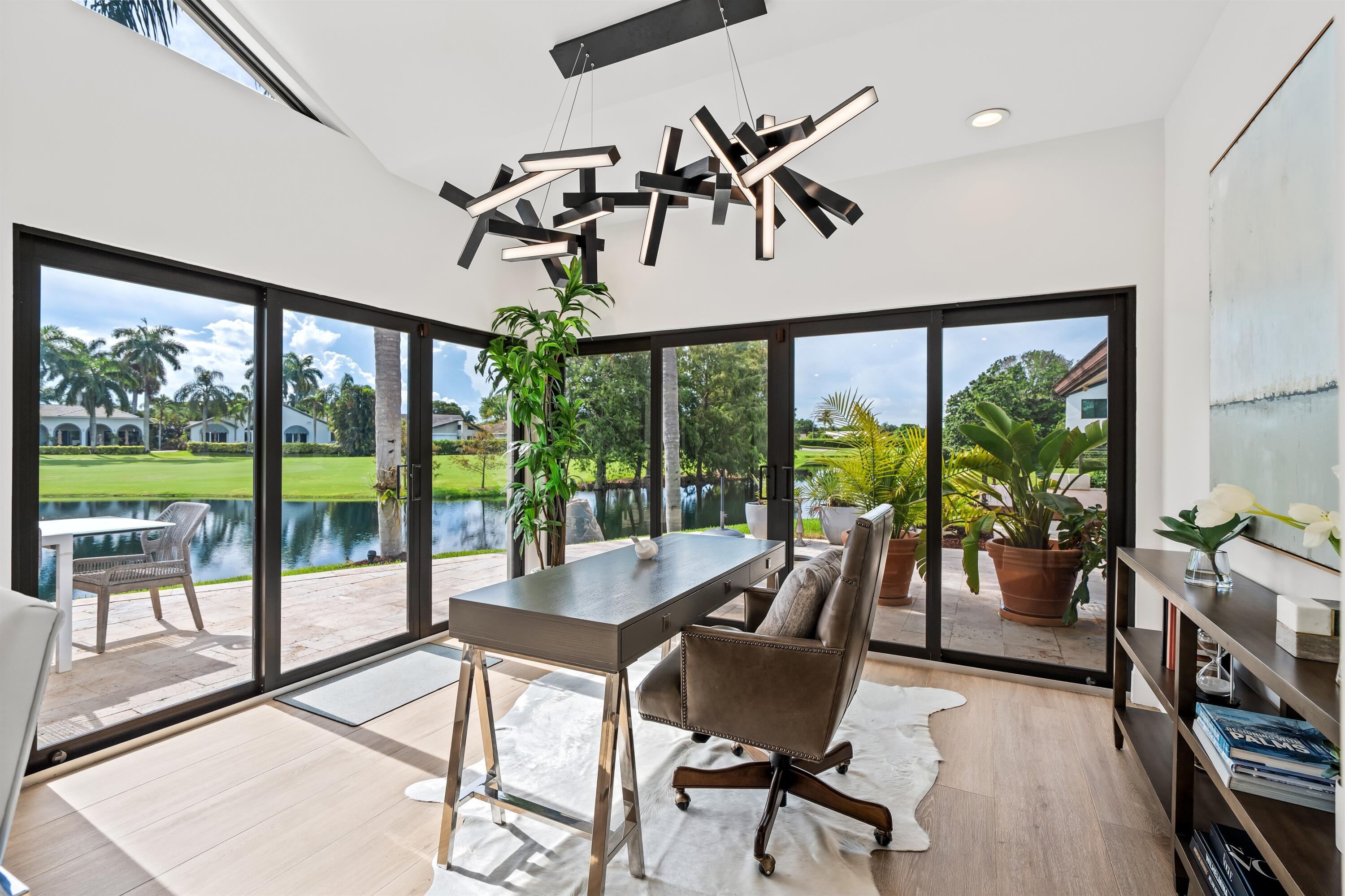 Enveloped within the beauty of its natural setting and defined by luxury, this completely remodeled East Coast style residence captures tranquil panoramic lake and fairway views as well as beautifully manicured fairway vistas from every room. With four bedrooms and spanning 4,714+/- total square feet, details throughout include dramatic tongue-and-groove vaulted ceilings punctuated by skylights, wide-plank washed-oak imported porcelain flooring, and window-walls of impact glass throughout. From the double-door entry, an inviting lounge, with a built-in bar topped by quartzite and featuring a refrigerated wine tower, introduces the dramatic open-floorplan living area of this spectacular residence. The chic great room features tongue and grooved wood vaulted ceiling, a wood-burningfireplace and window walls that capture expansive lake and fairway views, while the lounge and dining area directly access the gourmet island kitchen, fitted with Shaker-style cabinetry, quartzite waterfall counters, sea-glass backsplashes, high-end Monogram stainless-steel appliances and a pantry providing generous storage. The grand primary bedroom suite is especially lavish with a private seating area highlighted by a wood-burning fireplace and sliding glass doors that lead out to the pool patio. Completing the suite is a custom-fitted boutique closet and a spa-inspired marble bathroom, finished with dual sinks, a soaking tub, a walk-in glass-enclosed shower and a separate water closet. All bathrooms are remodeled with marble and European-imported tile. Along with the three bedrooms and the office, the layout also comprises a half-bath, laundry room, and oversized garage, with durable epoxy-coated flooring, accommodating two cars and a golf cart. Amenities include two circulating hot-water heaters for instant hot water, built-in central vacuum system, whole-house generator, new roof, new pool heater, newer multizone air-conditioning system, propane gas tanks, an outdoor shower, and side-load garages. Ready for a discerning owner's immediate enjoyment, everything has been updated in this stunning residence in this prime Delray Beach location. DISCLAIMER: Information published or otherwise provided by the listing company and its representatives including but not limited to prices, measurements, square footages, lot sizes, calculations, statistics, and videos are deemed reliable but are not guaranteed and are subject to errors, omissions or changes without notice. All such information should be independently verified by any prospective purchaser or seller. Parties should perform their own due diligence to verify such information prior to a sale or listing. Listing company expressly disclaims any warranty or representation regarding such information. Prices published are either list price, sold price, and/or last asking price. The listing company participates in the Multiple Listing Service and IDX. The properties published as listed and sold are not necessarily exclusive to listing company and may be listed or have sold with other members of the Multiple Listing Service. Transactions where listing company represented both buyers and sellers are calculated as two sales. "No payments made until title passes" Some affiliations may not be applicable to certain geographic areas. If your property is currently listed with another broker, please disregard any solicitation for services. Information published or otherwise provided by seller, listing company or its representatives is deemed reliable but are not guaranteed and subject to errors, omissions, or changes without notice. Copyright 2025 by the listing company. All Rights Reserved.