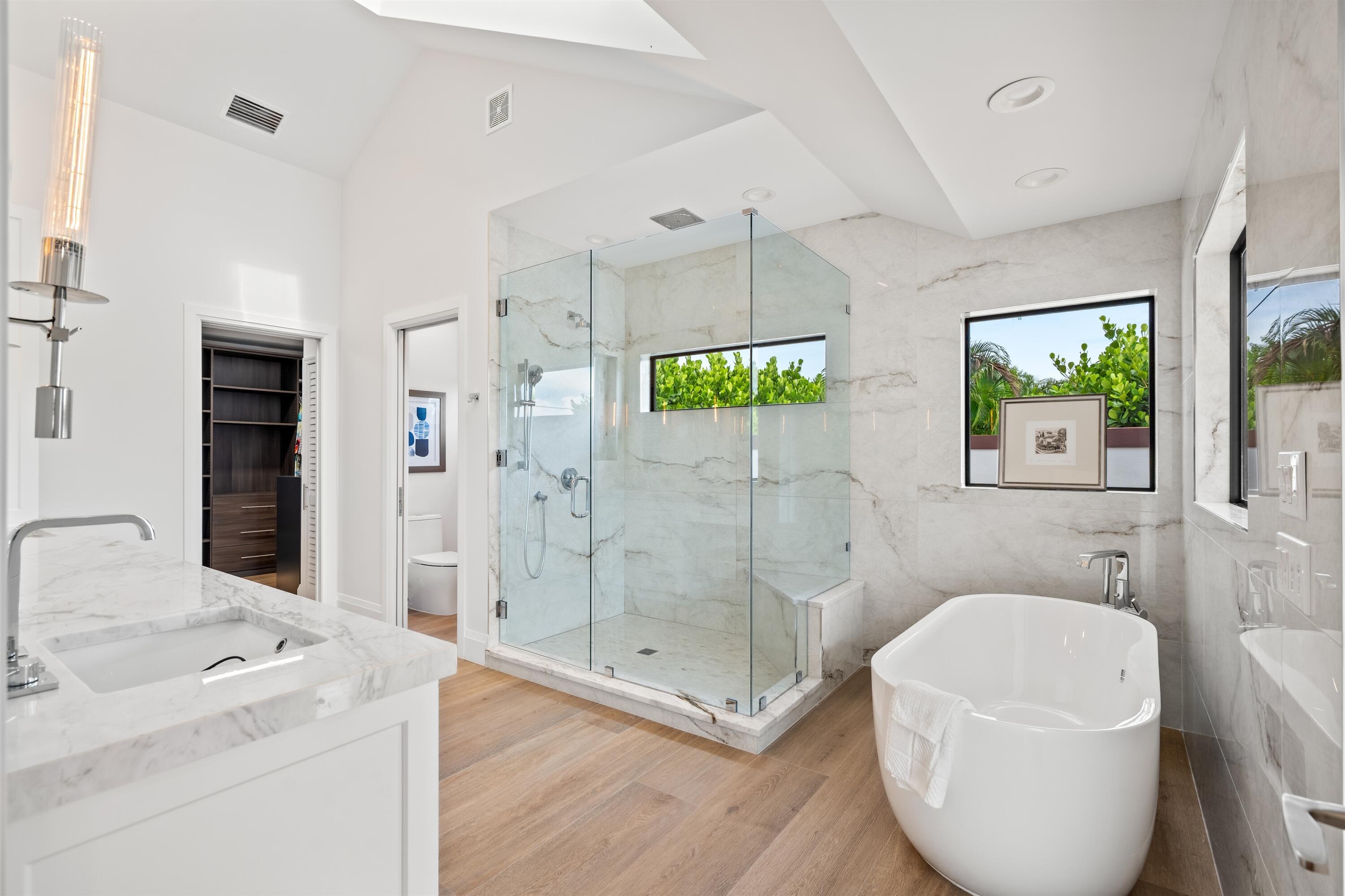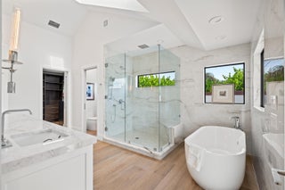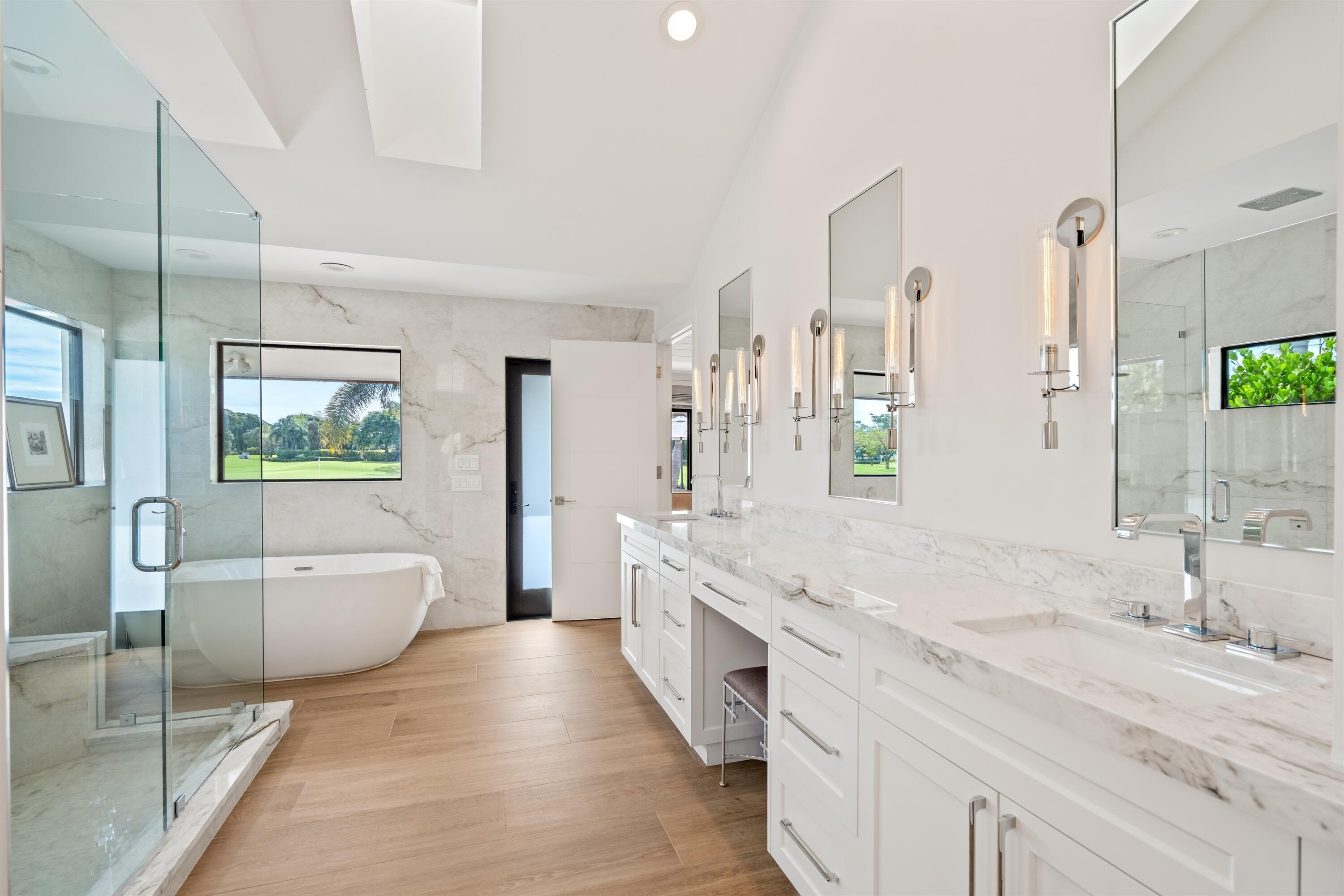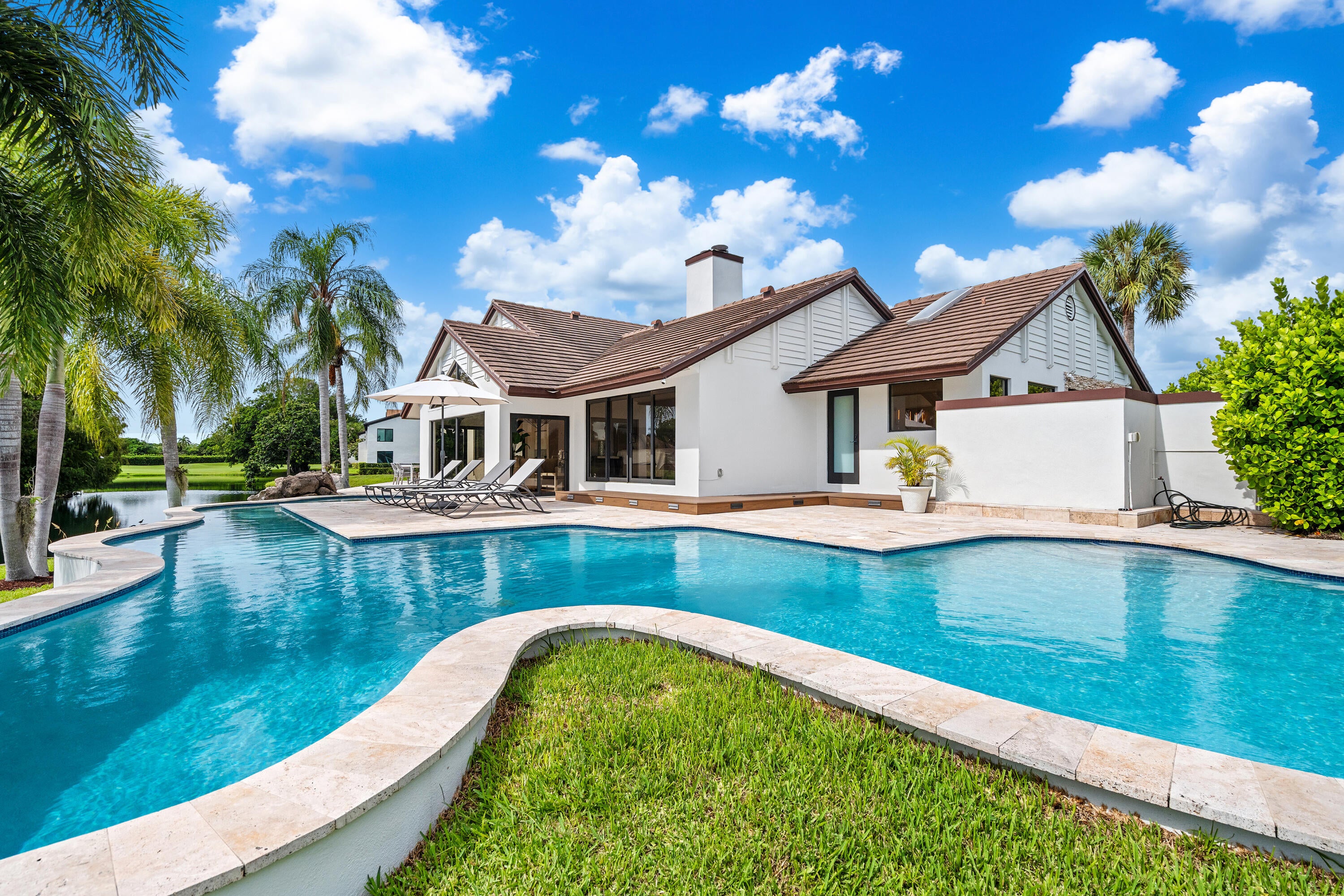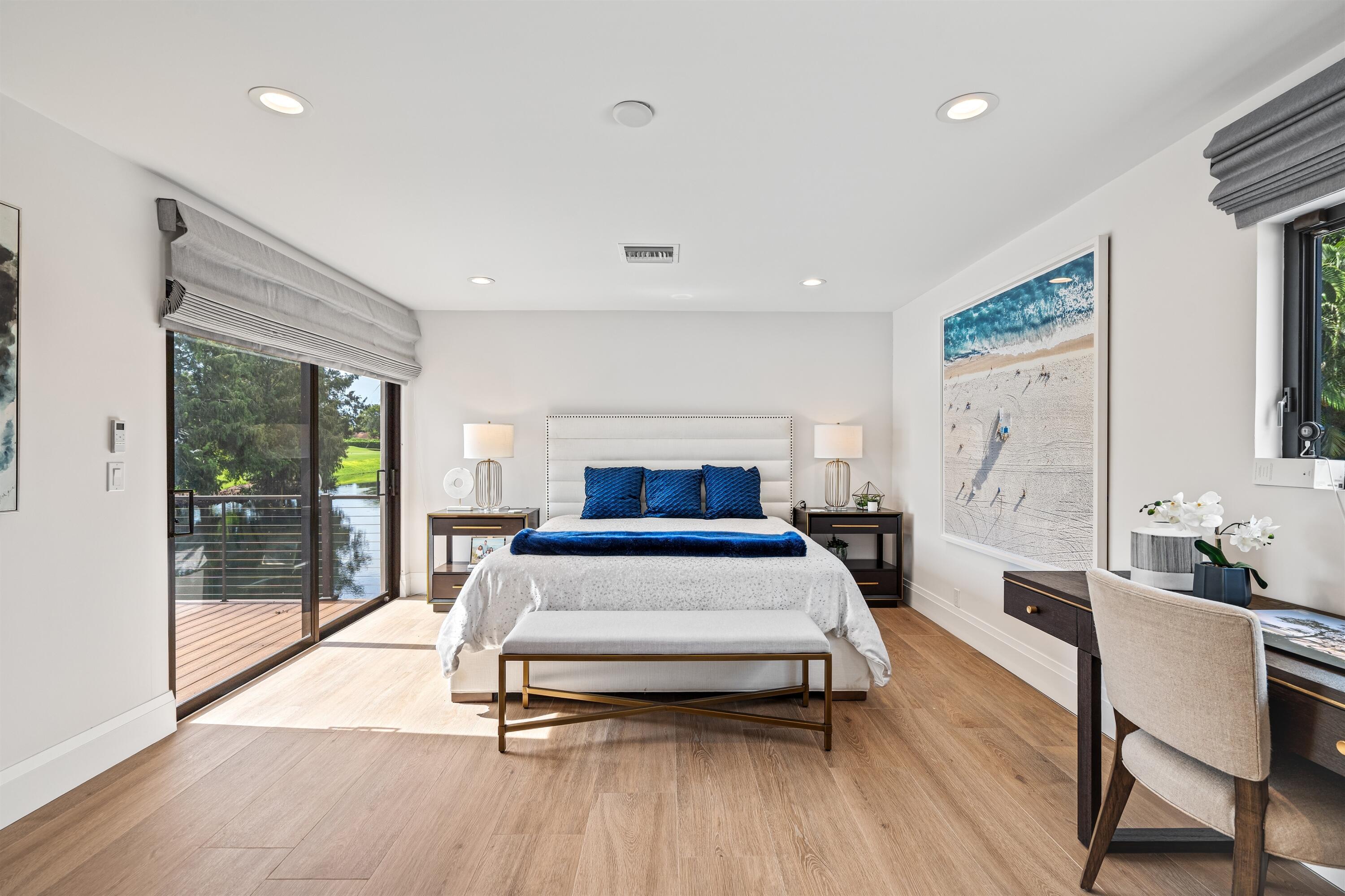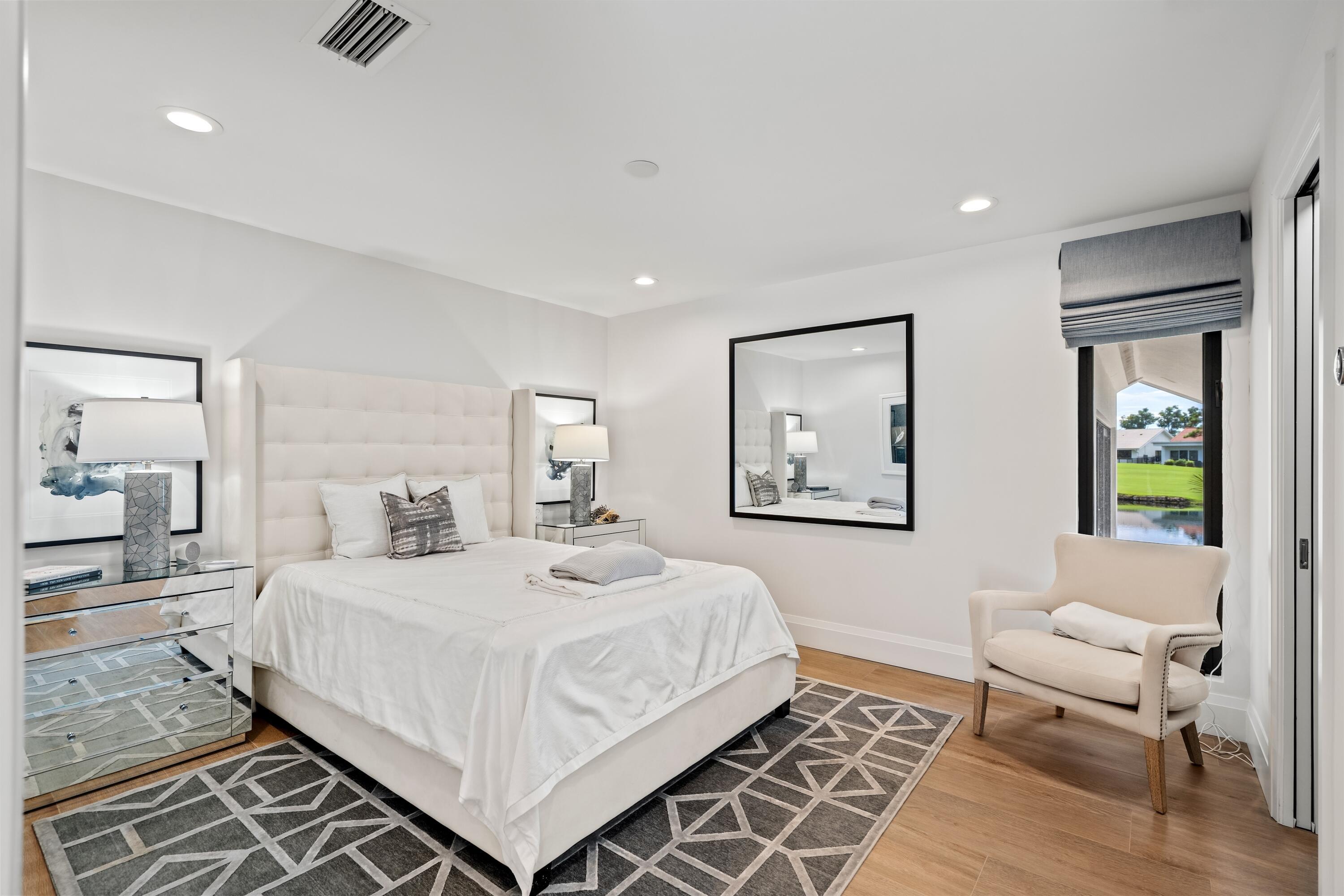 Enveloped within the beauty of its natural setting and defined by luxury, this completely remodeled East Coast style residence captures tranquil panoramic lake and fairway views as well as beautifully manicured fairway vistas from every room. With four bedrooms and spanning 4,714+/- total square feet, details throughout include dramatic tongue-and-groove vaulted ceilings punctuated by skylights, wide-plank washed-oak imported porcelain flooring, and window-walls of impact glass throughout. From the double-door entry, an inviting lounge, with a built-in bar topped by quartzite and featuring a refrigerated wine tower, introduces the dramatic open-floorplan living area of this spectacular residence. The chic great room features tongue and grooved wood vaulted ceiling, a wood-burningfireplace and window walls that capture expansive lake and fairway views, while the lounge and dining area directly access the gourmet island kitchen, fitted with Shaker-style cabinetry, quartzite waterfall counters, sea-glass backsplashes, high-end Monogram stainless-steel appliances and a pantry providing generous storage. The grand primary bedroom suite is especially lavish with a private seating area highlighted by a wood-burning fireplace and sliding glass doors that lead out to the pool patio. Completing the suite is a custom-fitted boutique closet and a spa-inspired marble bathroom, finished with dual sinks, a soaking tub, a walk-in glass-enclosed shower and a separate water closet. All bathrooms are remodeled with marble and European-imported tile. Along with the three bedrooms and the office, the layout also comprises a half-bath, laundry room, and oversized garage, with durable epoxy-coated flooring, accommodating two cars and a golf cart. Amenities include two circulating hot-water heaters for instant hot water, built-in central vacuum system, whole-house generator, new roof, new pool heater, newer multizone air-conditioning system, propane gas tanks, an outdoor shower, and side-load garages. Ready for a discerning owner's immediate enjoyment, everything has been updated in this stunning residence in this prime Delray Beach location. DISCLAIMER: Information published or otherwise provided by the listing company and its representatives including but not limited to prices, measurements, square footages, lot sizes, calculations, statistics, and videos are deemed reliable but are not guaranteed and are subject to errors, omissions or changes without notice. All such information should be independently verified by any prospective purchaser or seller. Parties should perform their own due diligence to verify such information prior to a sale or listing. Listing company expressly disclaims any warranty or representation regarding such information. Prices published are either list price, sold price, and/or last asking price. The listing company participates in the Multiple Listing Service and IDX. The properties published as listed and sold are not necessarily exclusive to listing company and may be listed or have sold with other members of the Multiple Listing Service. Transactions where listing company represented both buyers and sellers are calculated as two sales. "No payments made until title passes" Some affiliations may not be applicable to certain geographic areas. If your property is currently listed with another broker, please disregard any solicitation for services. Information published or otherwise provided by seller, listing company or its representatives is deemed reliable but are not guaranteed and subject to errors, omissions, or changes without notice. Copyright 2025 by the listing company. All Rights Reserved.