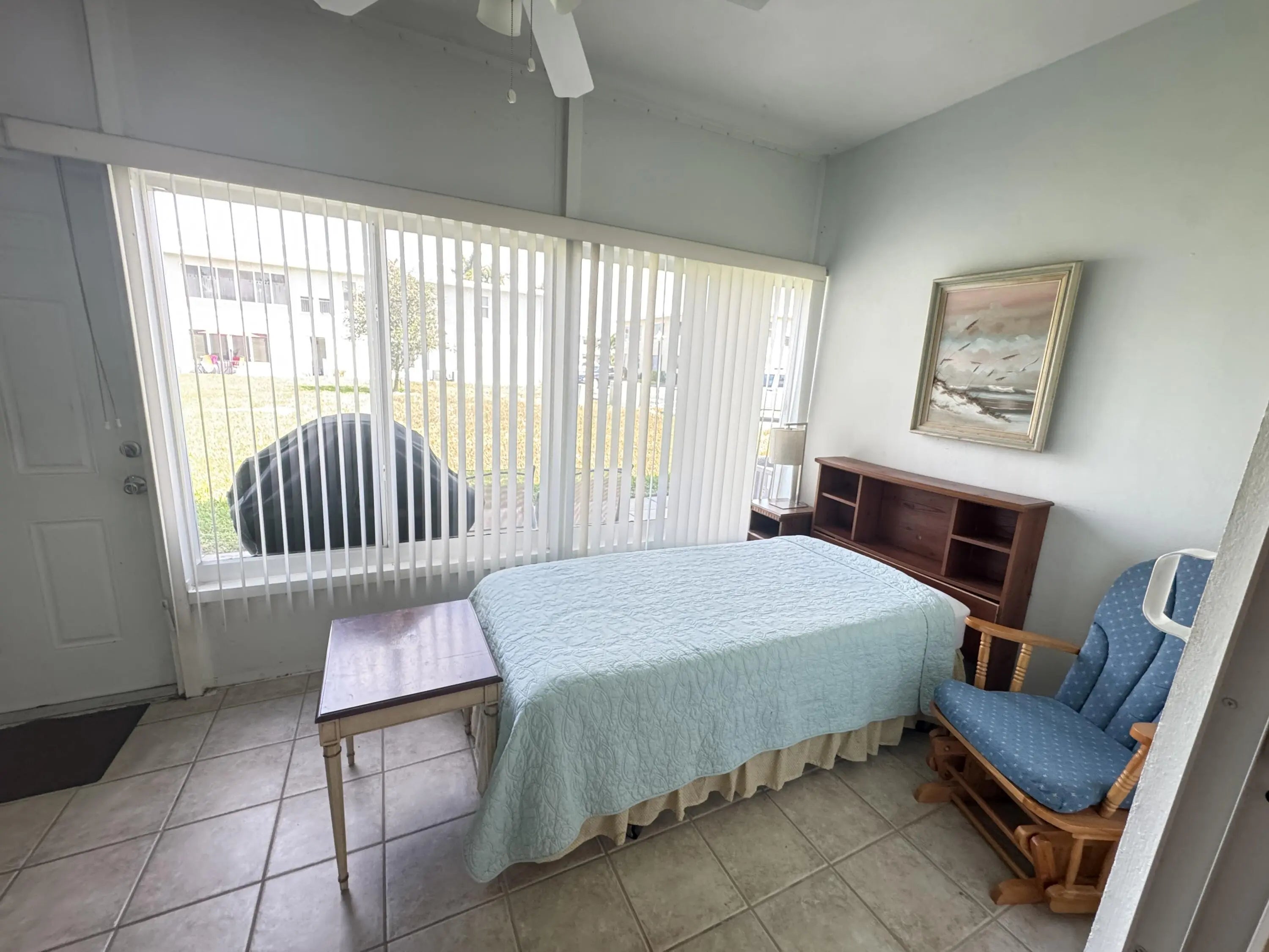 First-floor condo featuring an updated kitchen with dishwasher and trash compactor, updated bathroom with a separate vanity area. This well-kept seasonal residence offers two walk-in closets, impact windows, and newer A/C (2020). Enclosed Patio makes a great flex space. Currently used as guest space. Conveniently located in an east Boynton Beach location, close to the beach, dining, and shopping. Priced for a quick sale, this home provides great value for the area.Dues include water, trash, building insurance, cable, and internet.