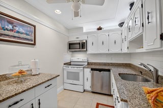 Meticulously maintained 2BR/2BA villa in the active 55+ Limetree community! Features tile flooring throughout, accordion shutters, 2021 water heater, and 2025 A/C. Kitchen renovated recently with granite countertops, stainless steel refrigerator, microwave, dishwasher, and sink. The spacious primary suite offers a walk-in closet and updated bath. Relax in the enclosed patio with storage. Community includes 3 pools, clubhouse, tennis, pickleball & more. Close to beaches, dining & shopping.