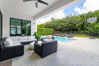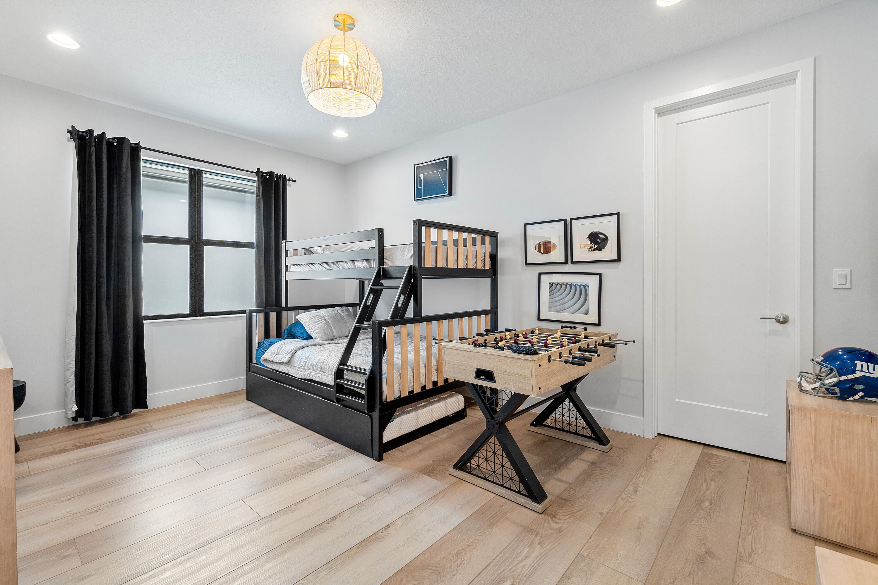 Fantastic Mariana Model two-story pool home in LOTUS offered for annual rent. 5 bedrooms (one bed/bath on the first floor; primary on 2nd floor), 5 bathrooms, large loft area with balcony, second floor laundry room with sink, bonus room: this space can be a game/pool table room, a bar or a movie room! Chef's Kitchen with huge island and pantry flows into the dining and family room with coastal built-ins and overlooks the backyard.The private oversized pool with sun shelf and deck, child proof pool fence, pool heater, clusia hedge for complete privacy and turf make it easy living & care free maintenance. No carpet anywhere but beautiful ceramic floors, LVT on stairs & 2nd floor. epoxy sealed garage floors.Available November 2025. Move to Florida and enjoy the season & all LOTUS has to offer! First Class resort-style clubhouse and A+ Schools.