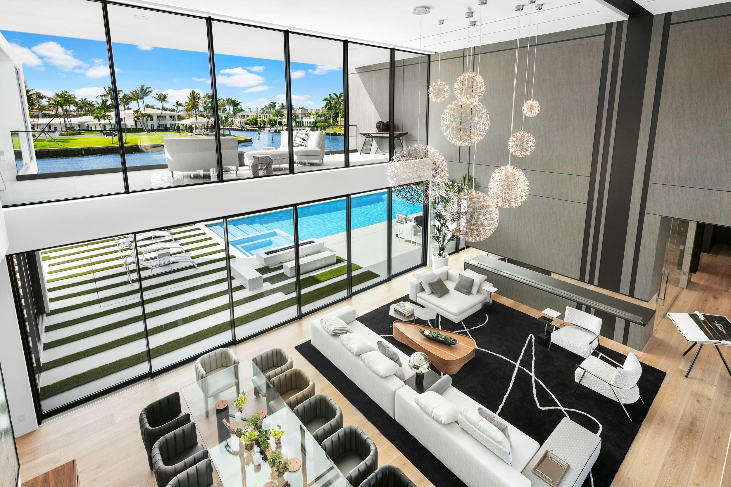 2633 Spanish River Road stands as a true trophy waterfront compound in Boca Raton's prestigious Estate Section--a residence of rare iconic stature. Featured on CNBC and Mansion Global, this award-winning architectural masterpiece is a one-of-a-kind ''celebrity home'' that sets the standard for South Florida luxury living.Nestled in an exclusive enclave on a barrier island between the Intracoastal Waterway and the Atlantic Ocean, this waterfront mansion dazzles with architectural originality, exquisite craftsmanship, and artful splendor. Boasting 125 feet of prime Intracoastal frontage, the estate captures the drama of endless water views, brilliant South Florida sunrises, and sunsets.A visionary tour de force by Studio Khora, the evolution of Rex Nichols Architects, this home spans nearly 10,000 square feet of interiors (over 14,000 total), realized by Anthony Routhier of Cavadium Construction. Its soaring two-story design features walls of glass that dissolve boundaries between indoors and out, complemented by waterfalls, brise soleil screens, and exotic wood details for an architectural poetry of light, texture, and form. Commercial-grade strength is concealed within its artistry, supported by 155 concrete piles. The sophisticated interior includes six bedrooms, eight full baths (with separate primary baths), an office, a media room, and a glass elevator. Dramatic lighting and double-height ceilings enhance the grandeur of the first-floor living area overlooking the water. European white oak flooring, bespoke Neff cabinets, and state-of-the-art appliances add warmth and elegance to the spacious chef's kitchen. The seamless splendor extends outdoors, clad in white and built for entertaining, with highlights including a heated infinity-edge pool and spa, a cabana, and a full summer kitchen. Positioned at the nexus of Boca's most desirable destinations, this residence is just minutes from premier shopping, dining, and social scenes, including the famed Boca Raton Resort and Beach Club. For car aficionados and visionaries alike, a rare secondary dry lot across the street offers boundless potential: a guest villa, private car gallery, wellness retreat, or bespoke "man cave." Offered separately, it transforms this opportunity into an extraordinary compound acquisition of privacy, versatility, and distinction. Step into 2633 Spanish River Road, a sanctuary of privilege and prestige. In Boca Raton's illustrious Estate Section, this contemporary masterpiece defies convention and elevates luxury to an art form.