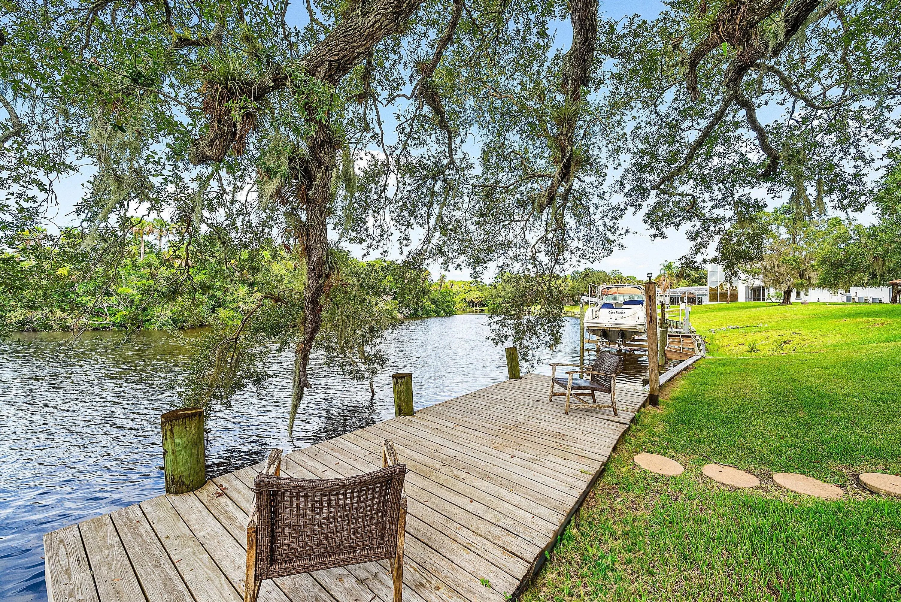 Rare peninsula estate on the St. Lucie River! This 5 Bedroom + Den 3,543 sf home offers water views in paradise with a serene resort-like lifestyle. The residence features a NEW roof, IMPACT windows, NEW kitchen upgrades, in a LOW HOA set on a 0.35 -acre lot with spacious living areas, natural light, and seamless indoor-outdoor flow. Multiple bedrooms capture tranquil vistas, while an expansive patio & lush landscaping create perfect entertaining spaces. Launch a kayak, fish, or enjoy sunsets from your private riverfront backyard which offers unrivaled ocean access! This home combines classic Florida charm with endless versatility. Conveniently located to shopping, dining, & entertainment, yet feels like a private retreat. A one-of-a-kind opportunity to own waterfront living in PSL!