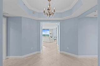 Experience luxury living in this customized 10th-floor residence at The Landmark, offering sweeping NE coastline views, 3 bedrooms, 3 baths, and over 2,300 sq ft of elegant space. Enjoy a wrap-around balcony, soaring 9-ft ceilings, gourmet kitchen with European cabinetry, marble floors, new bedroom carpeting, custom window treatments, and a built-in safe. Just steps from Whole Foods, Lifetime Fitness, The Gardens Mall, and Downtown Palm Beach Gardens. The Landmark, the only luxury high-rise in the PGA corridor, provides 24-hour valet and concierge, an attended lobby, resort-style pool and sundeck, theater, club room, leisure decks, and a state-of-the-art fitness center.