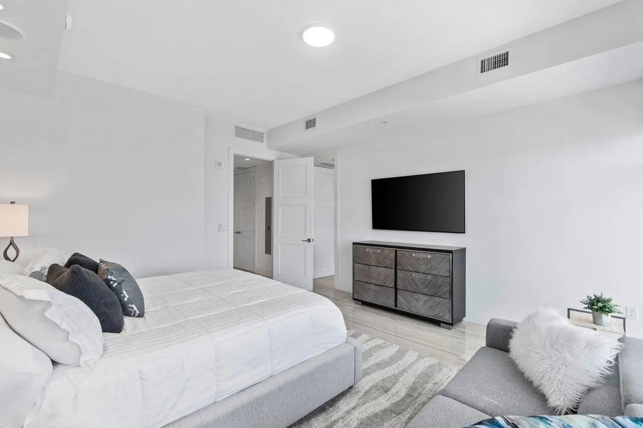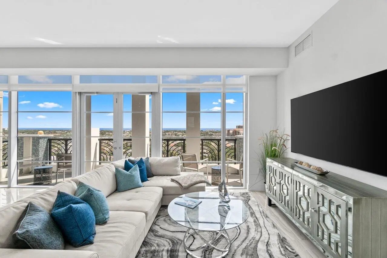 Experience luxury living at its finest in this breathtaking 12th-floor penthouse located in the heart of East Boca. Boasting panoramic ocean and city views, this contemporary furnished 3 bedroom, 3.5-bath residence offers unmatched elegance and style. The master suite is conveniently located on the main floor, providing ultimate privacy & comfort. Floor-to-ceiling windows flood the space with natural light. The chef's kitchen features quartz countertops, Italian cabinetry, Subzero refrigerator, & a spacious center island perfect for entertaining. Steps away from downtown Boca & Mizner Park, this penthouse combines upscale living with unparalleled convenience. Don't miss the opportunity to make this extraordinary residence your own!