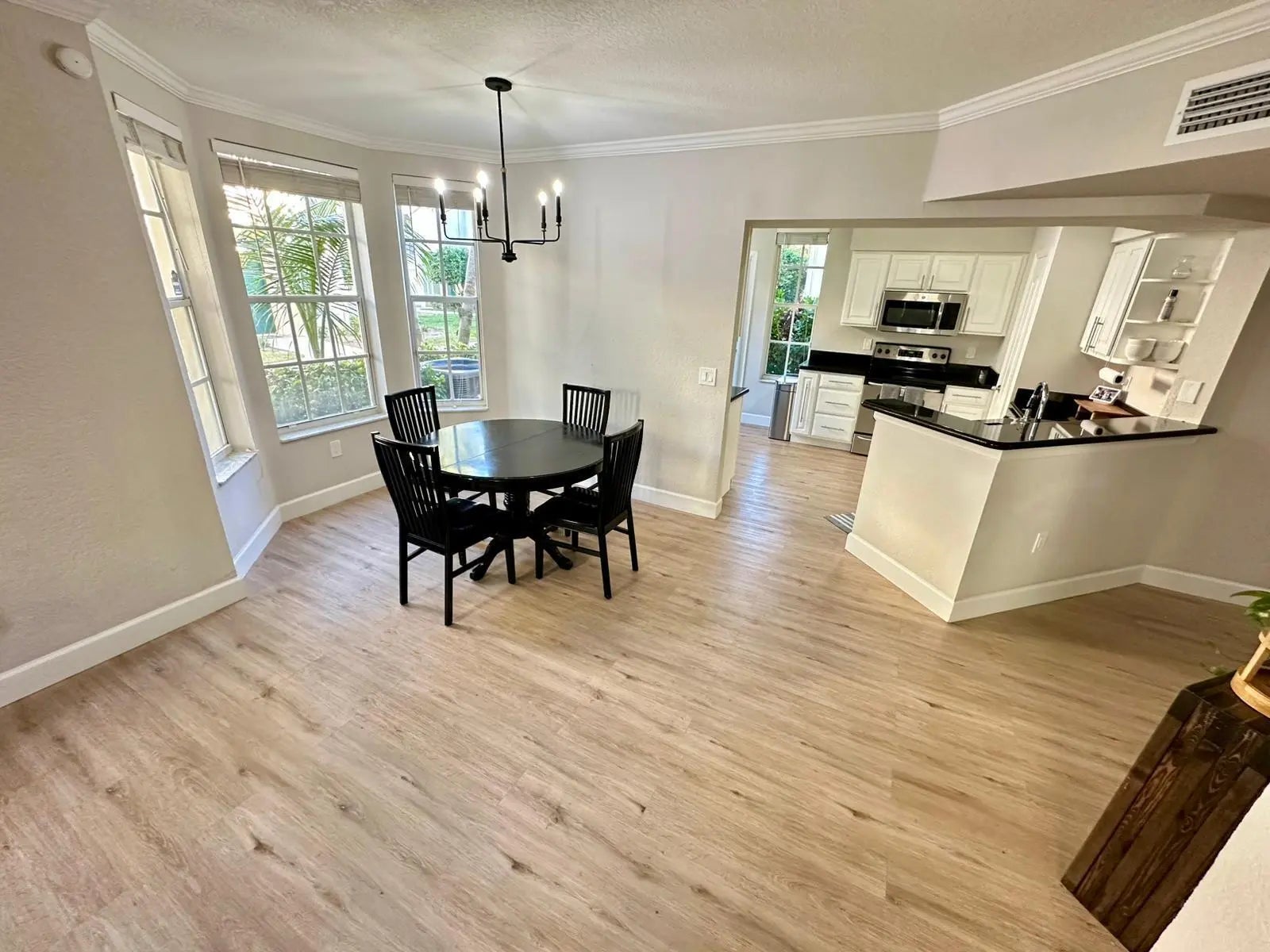 Step into this charming bright & airy corner unit with 3-bedroom, 2-bathroom home in The Residences of Belmont in Boynton! With over 1,600 Sq ft of thoughtfully designed living space, this home offers the perfect balance of comfort and modern living or anyone seeking their own oasis. The spacious primary suite features a private en-suite bath completely remodeled with beautiful finishes and ample closet space, while the two additional bedrooms are perfect for guests, or a home office. The heart of the home includes features like granite countertops, stainless steel appliances, and a breakfast peninsula, ideal for both cooking and entertaining. The open floor plan seamlessly connects the living room, dining area, and kitchen, creating a welcoming atmosphere filled with natural light.