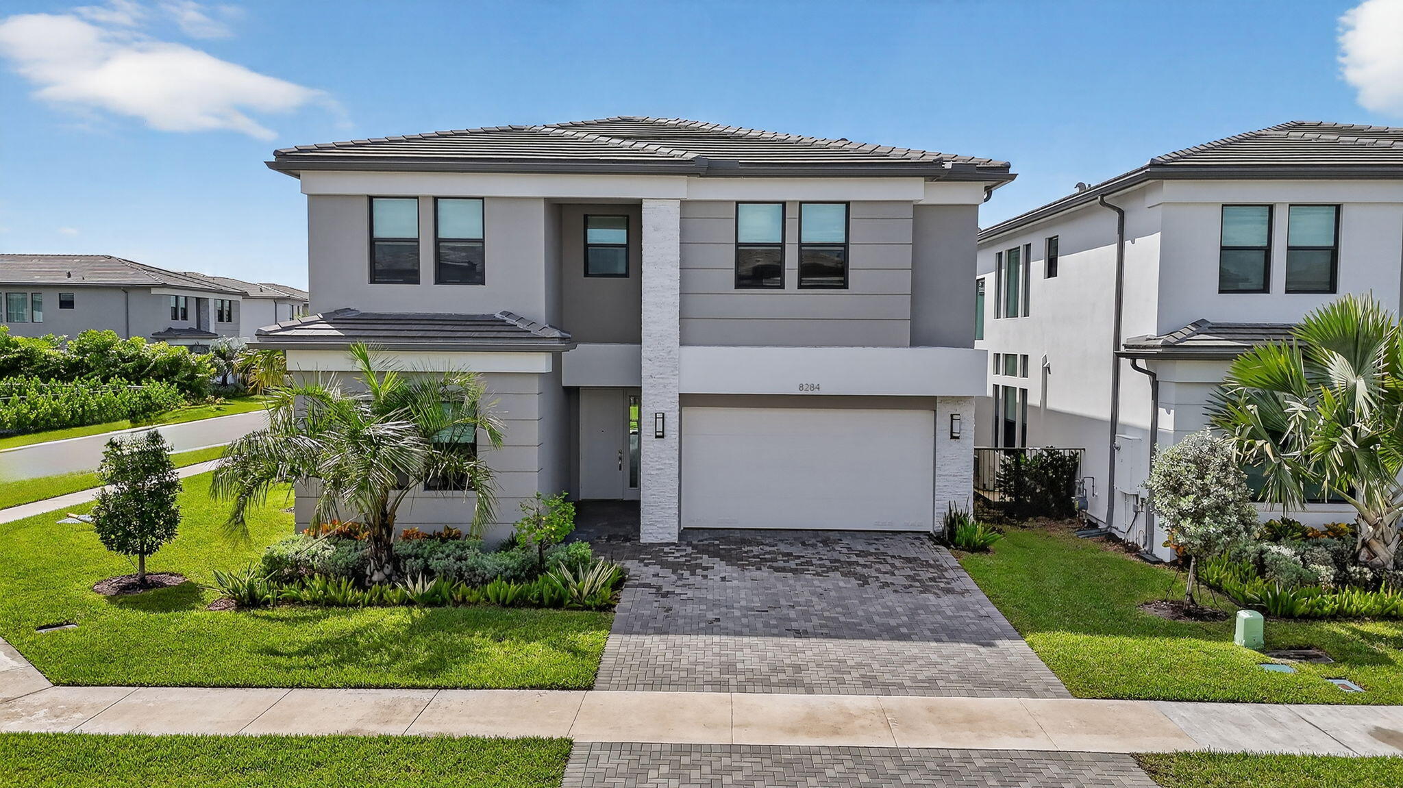Discover this stunning Polynesia model on a rare oversized corner lot with southern exposure, filling the home with natural light from sunrise to sunset. Enjoy soaring corner windows extending to the second-floor loft, creating an airy, modern ambiance and architectural appeal. This 5-bedroom, 7-bath home features upgraded concrete-look porcelain tile, recessed lighting, and an epoxy-finished garage floor. Relax with serene corner lake views and envision your future pool basking in all-day sun. Located in Boca Raton's premier Lotus Palm community with resort-style amenities and top-rated schools.