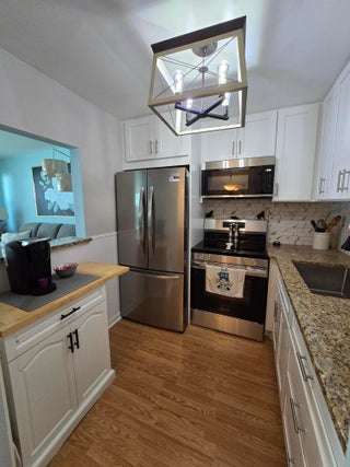 Beautiful ground floor unit displaying renovated kitchen, new stainless steel appliances, one bedroom one bathroom also recently renovated. Large pantry and lots of storage space. The unit offers impact windows and doors throughout including renovated enclosed patio. Furnished (optional). Very friendly neighbors.Century Village community offers a great list of amenities including a large main clubhouse with a restaurant, an indoor pool, fitness center, ballroom, theater, and arts/crafts studios; numerous outdoor satellite pools; sports courts for tennis, pickleball, shuffleboard, and bocce ball; and community transportation services. There are also areas for socializing and relaxation like cafes, picnic spots, and walking/biking trails.