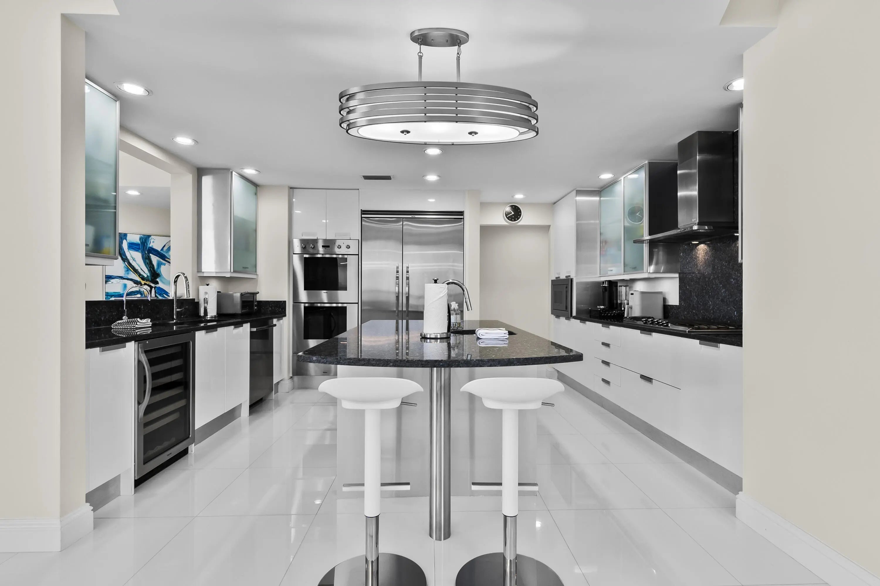 This rare, direct oceanfront residence offers an unparalleled lifestyle across more than 3,100 square feet of meticulously designed living space. The expansive, contemporary floor plan encompasses four spacious bedrooms and four-and-a-half luxurious bathrooms. Entertain effortlessly in the gourmet chef's kitchen, appointed with top-of-the-line Viking appliances, or admire the sleek finish of the exquisite porcelain floors throughout. Designed for immersion, the home features floor-to-ceiling windows that provide unobstructed, panoramic views of both the Atlantic Ocean and the Intracoastal Waterway from every room. Step onto your private balcony to experience the dual beauty of the water views, perfect for both sunrises and sunsets.