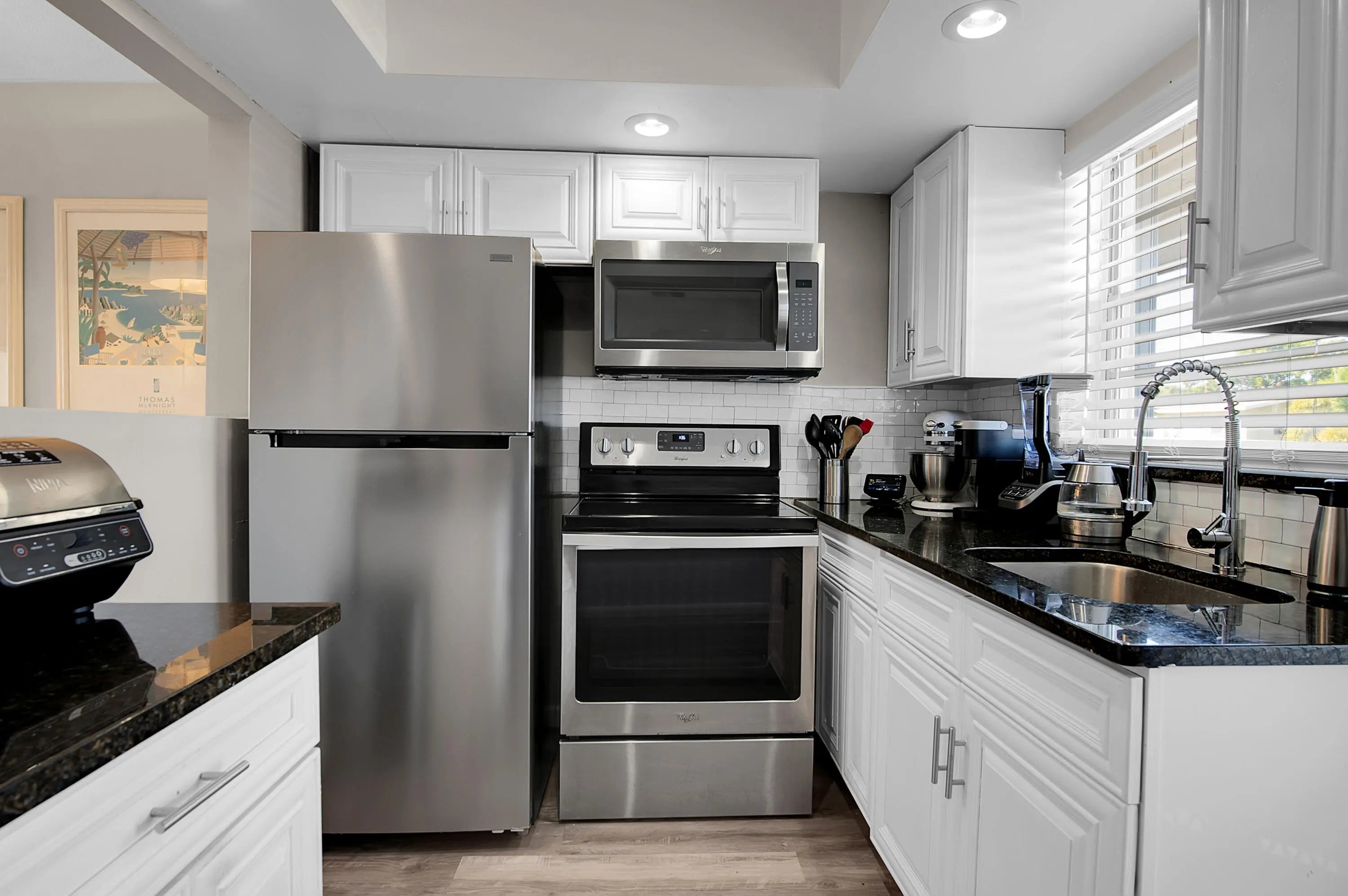 Experience coastal living at its best with this beautiful 1 bedroom, 1.5 bath condo, conveniently located less than 10 minutes from the beach. Situated on the second floor, this inviting home offers both comfort and convenience in a peaceful, hidden gem of a community. The interior features new flooring throughout, updated white cabinets with granite countertops, and a bright, open living area that flows to a private patio overlooking a lush garden--perfect for enjoying your morning coffee or unwinding in the evening. The spacious primary suite includes a full wall closet and en-suite bath, while a convenient half bath accommodates guests.The layout and design of this condo will leave you in awe, and if desired, most furnishings are negotiable separately.