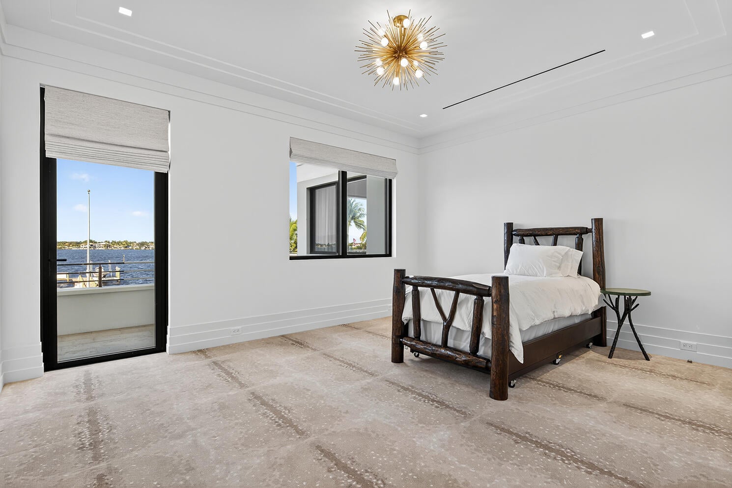 Experience the art of luxury living in this spectacular modern estate on the scenic Loxahatchee River in Jupiter, Florida. Tucked away on a private street, this custom-built masterpiece blends architectural sophistication, advanced technology, and the serene beauty of South Florida waterfront living.Beyond the stately gates, the resort-style setting offers 127' of waterfrontage, a covered outdoor kitchen with large island and seating area and a 20' x 40' pool with spa. The meticulously landscaped grounds feature artificial turf lawns ensuring a pristine look year-round. The private dock, with boat lift and floating dock for smaller boats, provides direct boating access to the Intracoastal Waterway and the Atlantic Oceana''perfect for those who treasure the coastal lifestyle.The heart of the home is a grand great room, designed for both comfort and sophistication, with soaring ceilings and panoramic river views. The chef's kitchen is a true showpiecefeaturing a large central island and Miele appliances. Custom terrazzo flooring, solid wood doors, and bespoke wood cabinetry and moldings throughout the home showcase craftsmanship of the highest caliber. This residence offers six bedrooms, six full baths and four half baths. The bedrooms include a primary suite with a spa-like bathroom, four en suite guest bedrooms for luxurious privacy and a guest suite featuring its own sitting room and kitchenette providing additional flexibility for guests or staff. Laundry rooms on each level add convenience for large-scale living. Designed for the ultimate entertainer, the home's amenities include formal and casual dining areas, a 1,500-bottle temperature-controlled wine cellar and wet bar, all overlooking the tranquil riverfront. Every element of this home reflects thoughtful design and superior engineering. The Crestron home automation system provides effortless control of lighting, climate, and security, complemented by a Sonos sound system with 24 invisible speakers. Comfort and efficiency are ensured by four tankless water heaters, six zoned air-conditioning units, and a comprehensive camera and security system. The air-conditioned garages feature poured concrete flooring and a dedicated second-level storage area, offering both functionality and durability. Built with a concrete and steel structural system, the design pressures of this home can withstand winds exceeding 200 MPH, this residence is truly built to last. This exceptional Jupiter estate embodies the pinnacle of South Florida living-a boater's and golfer's paradise where privacy, elegance, and waterfront tranquility converge. Private. Polished. Perfectly Jupiter.