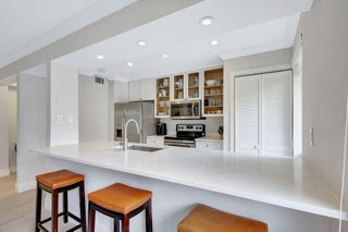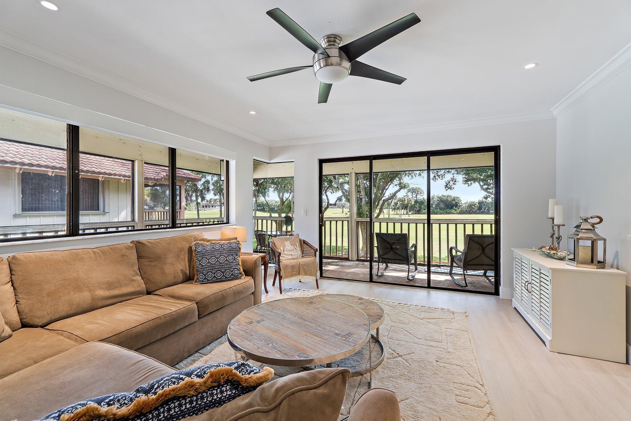 Welcome to 438 Brackenwood South, a beautifully renovated, fully furnished, 2-bedroom, 2-bath Golf Villa located in the heart of PGA National. This bright and stylish 2nd floor, corner residence offers sweeping views towards the Championship Course -- home to world-class golf and breathtaking vistas.The interior has been completely updated with modern finishes, luxury flooring, and a sleek open-concept kitchen featuring quartz countertops, custom cabinetry, and stainless steel appliances. Both bathrooms have been fully reimagined with elegant tilework and designer fixtures.Enjoy peaceful mornings and relaxing evenings on your private balcony overlooking the fairways, surrounded by lush landscaping and the tranquil beauty of PGA National.Ideal as a primary residence,investment property this move-in-ready villa offers easy access to resort amenities, five championship golf courses, a world-class spa, tennis, pickleball, and fine dining all just minutes from top beaches, shopping, and Palm Beach International Airport.