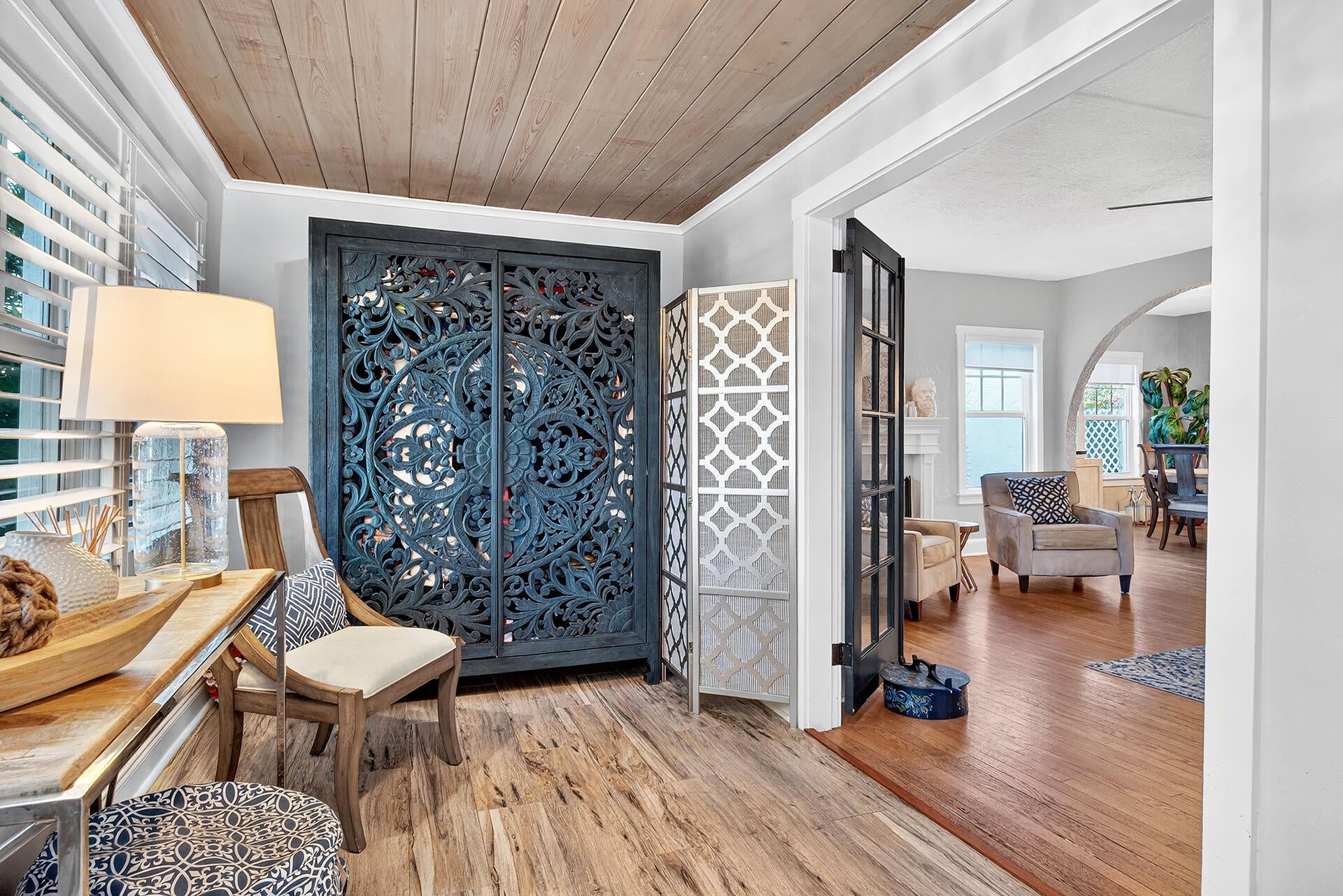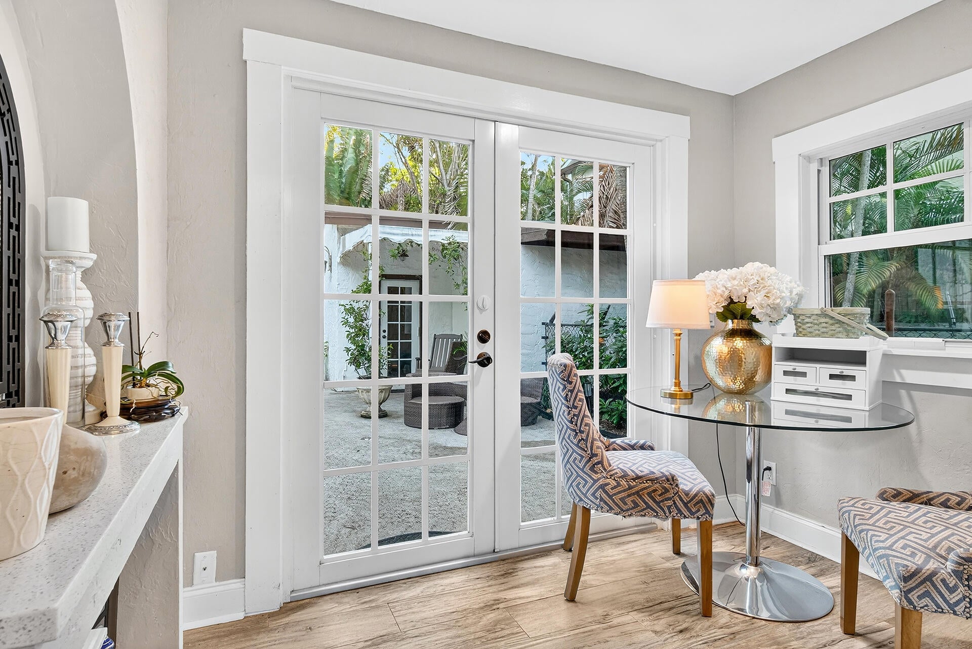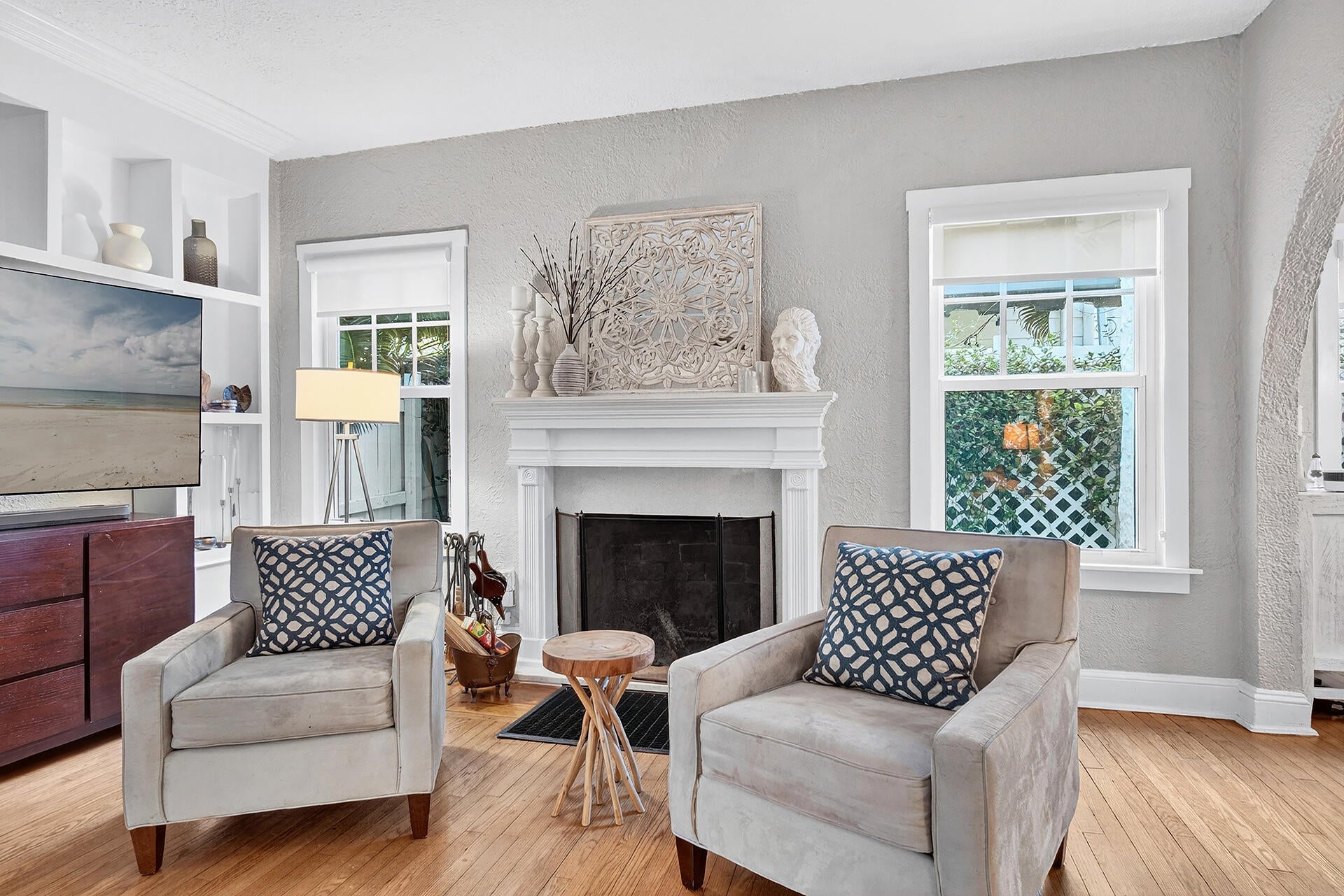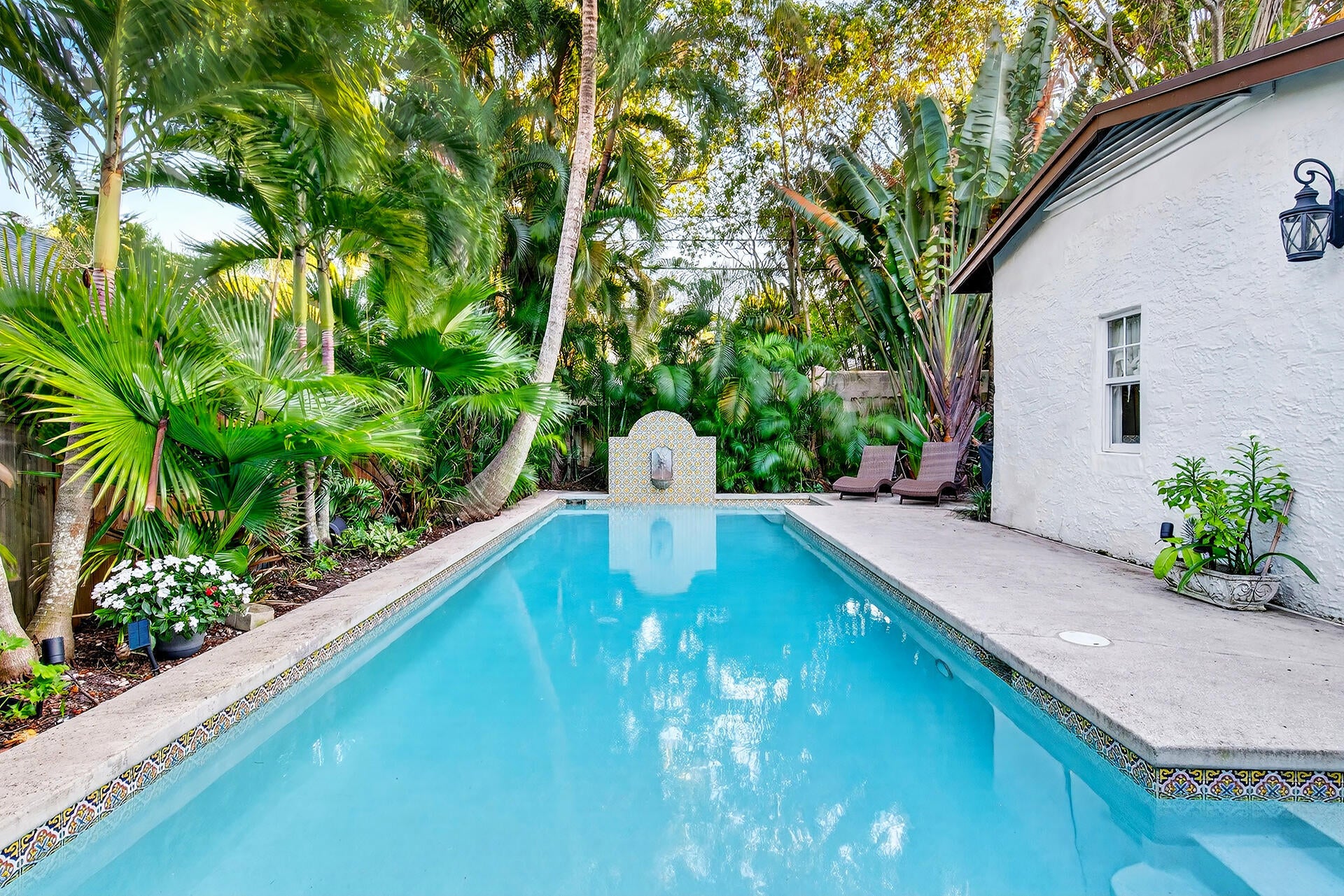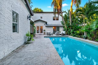 Welcome to 704 Claremore Drive in the heart of Flamingo Park. Built in 1925, this tranquil Spanish residence captures the grace of West Palm Beach's historic era while offering the comfort of modern living. 3 BD/2.5 BA Main House (Note: all 3 bedrooms are upstairs), a powder room/cabana bath downstairs, 2042 tsf/1834 under air, covered parking, a sunroom, a generous living room w/ original hardwood floors, high ceilings, wood-burning fireplace, charming dining room, updated kitchen, & cozy breakfast nook. Private backyard: mosaic-tiled, newly resurfaced, salt swimming pool & serene patio. 1 BD/1 BA Cottage (ground floor), 568 tsf, full kitchen. With impact windows, updates throughout & brick-paver driveway, this historic home offers a blend of period character & modern comfort.Living area (2,266 SF) reflects the combined total of Building 1 & Building 2 under air, as reported in tax records. Nestled on one of Flamingo Park's most enchanting blocks just moments from City Place, downtown WPB, great schools, Palm Beach Island, PBI Airport, world-class dining, shopping. & more. A rare opportunity for those who value historic architecture & the ease of contemporary living. All measurements & information are deemed reliable but not guaranteed. Buyer to independently verify.