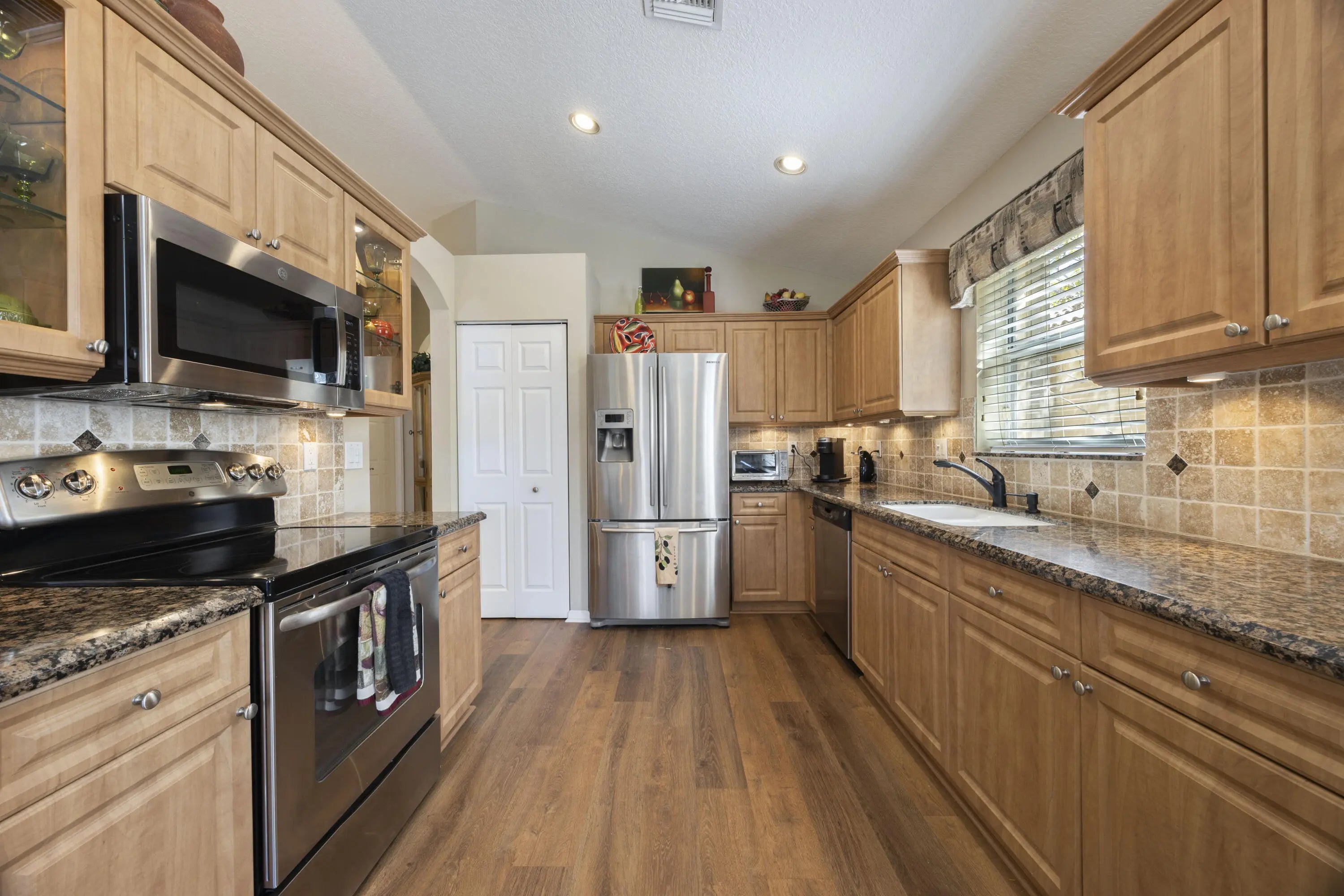 Welcome to Palladium, an all-age gated community in central Boynton Beach w/low HOA! Double door entry opens to a bright, inviting interior w/vaulted ceilings & abundant natural light. Formal living & dining rooms feature tile flooring & create a welcoming space for entertaining. Spacious kitchen w/generous cabinetry, granite countertops, rolled marble backsplash, SS appliances, & pantry; opening seamlessly to the family room, where wide lake views provide a peaceful backdrop. Step outside to the extended, screened-in patio perfect for enjoying the outdoors all year long.Vaulted ceilings continue into the oversized primary suite, complete w/ \two walk-in closets & an ensuite bath featuring dual sinks, separate tub & shower.