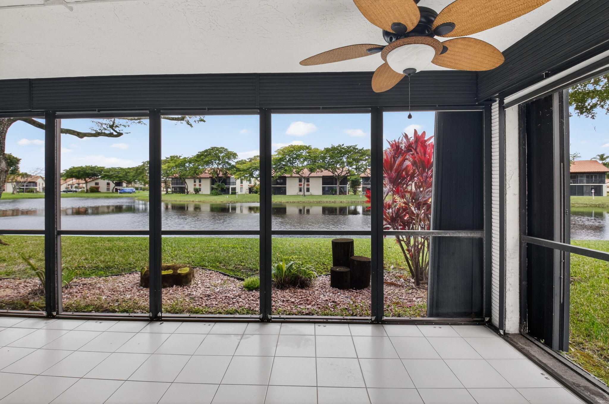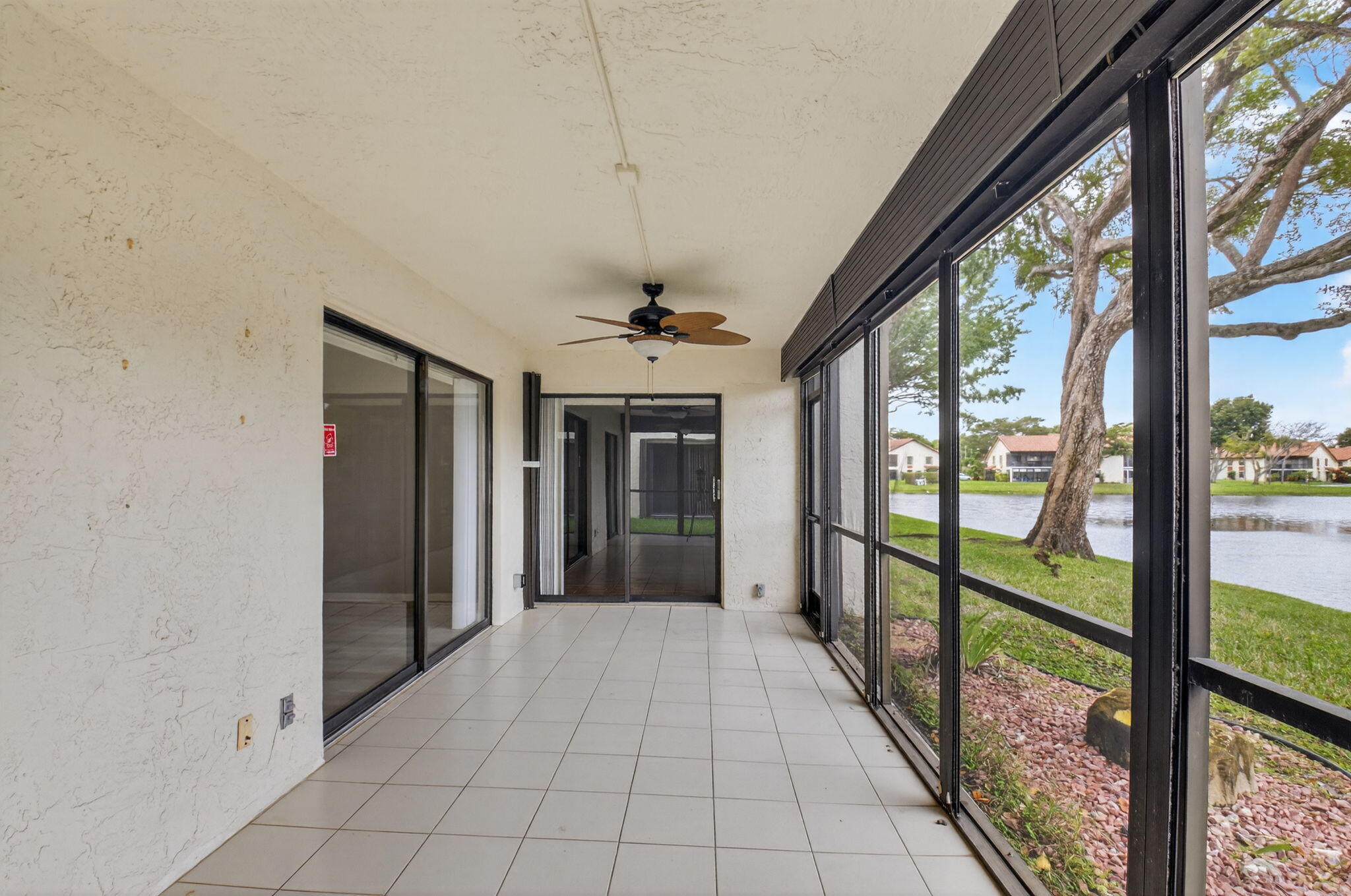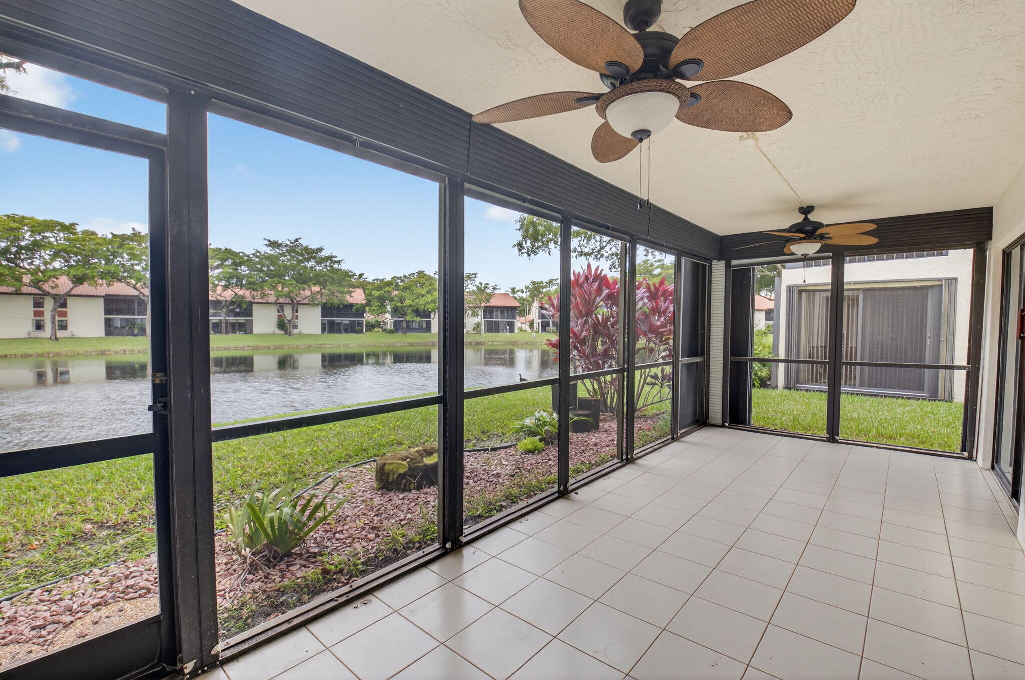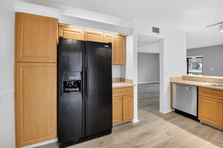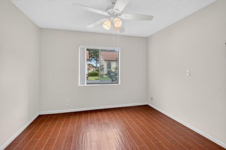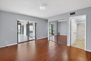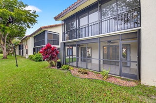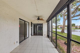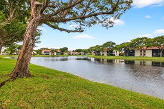 Now available in the gated 55+ community of Palm Chase. This beautiful 2 bed, 2 bath condo is incredibly spacious and offers an oversized screened-in patio with breathtaking views of the lake. There's ample living space with a large living room, separate open den/office, dining room and an eat-in kitchen. The master bedroom features a walk-in closet, a standard closet, and an en-suite bathroom with a walk-in shower. The entire unit has newer luxury vinyl flooring throughout and newer stainless steel appliances. There's a full washer and dryer located inside the unit as well and a newer A/C. Water and basic cable included. No pets per association - ESA and service animals are welcomed.Palm Chase is a premier 55+ community offering a heated salt water pool, hot tub, clubhouse, auditorium, and tennis courts with many clubs, activities and social events.
