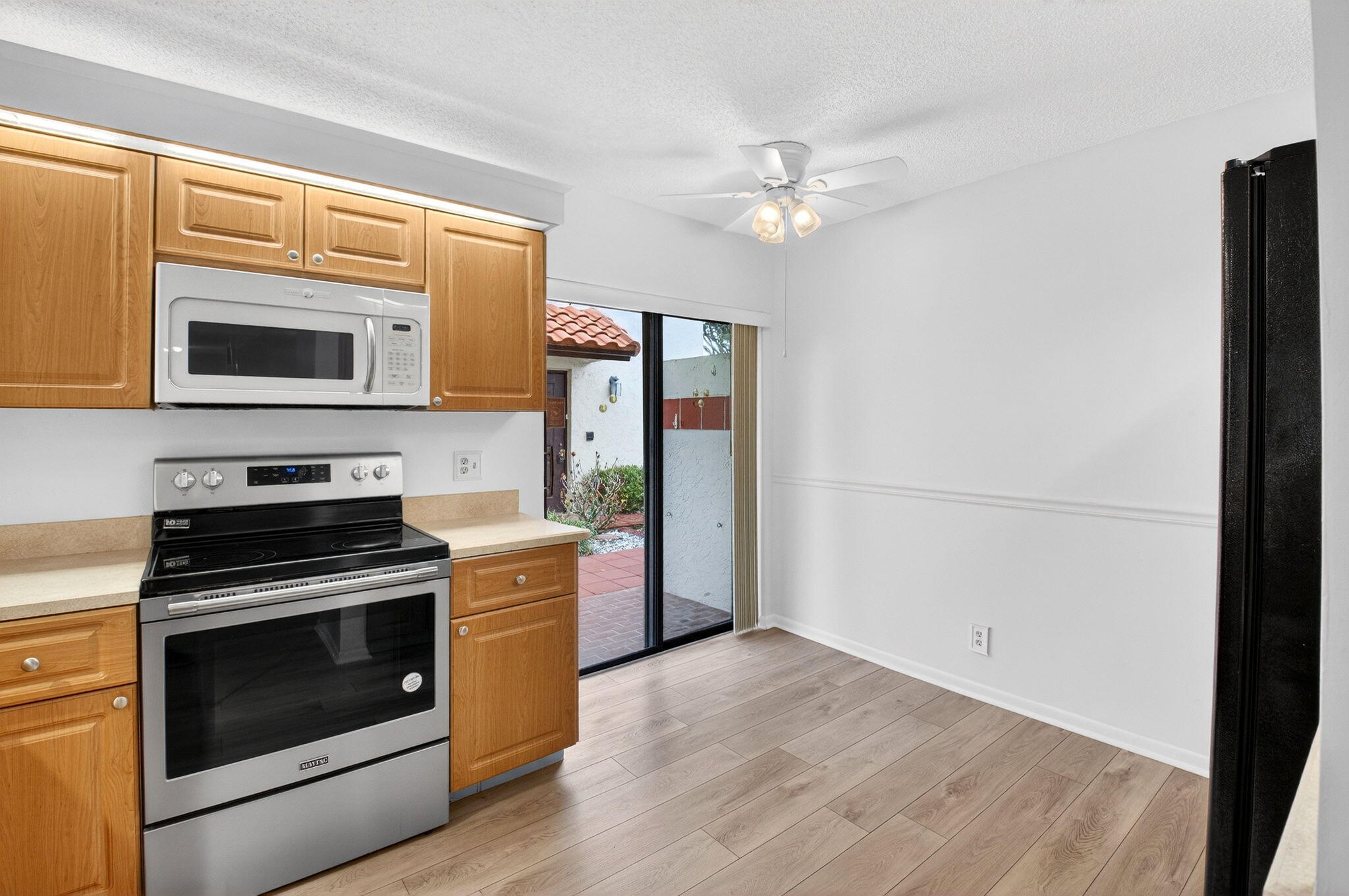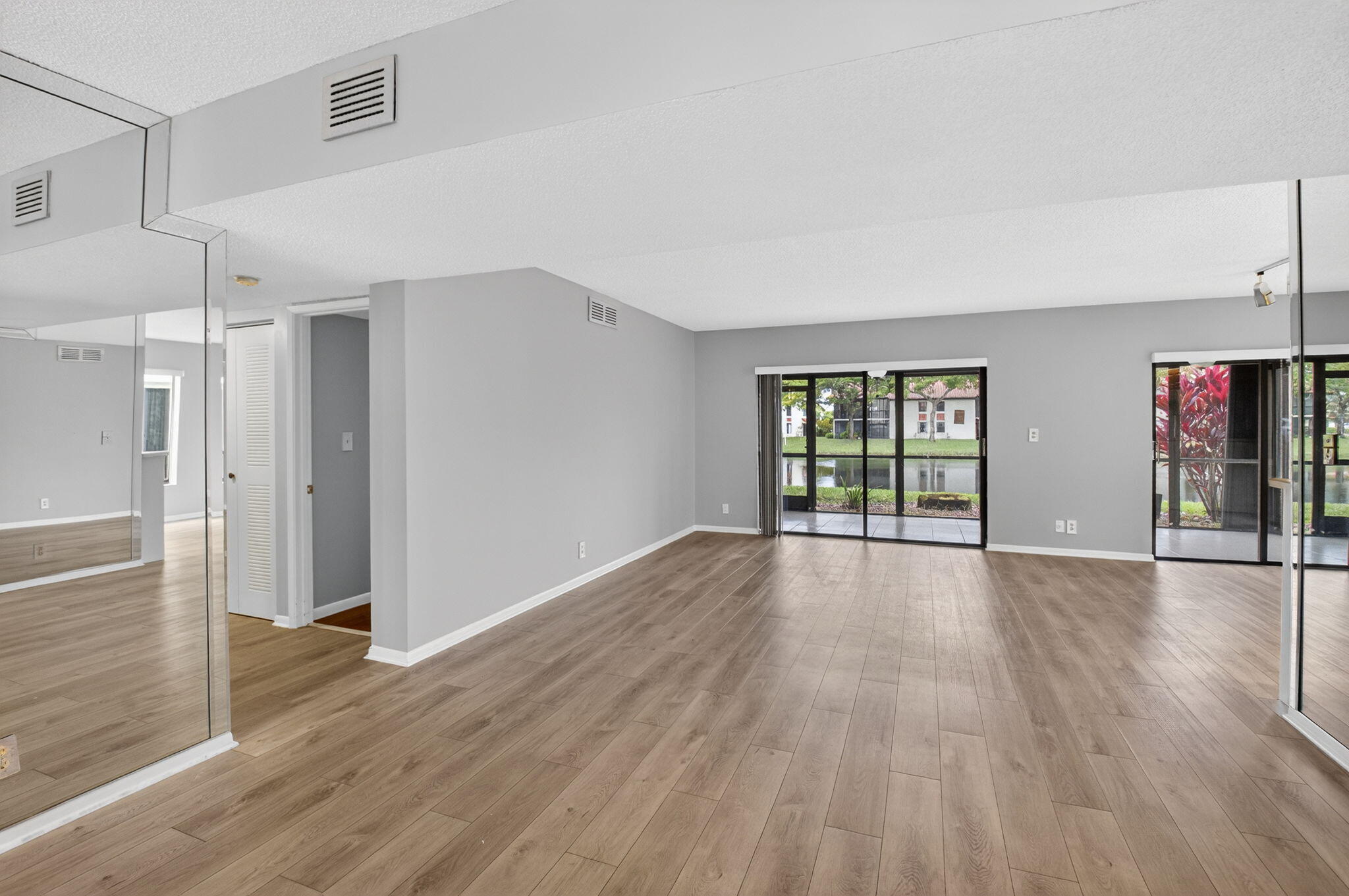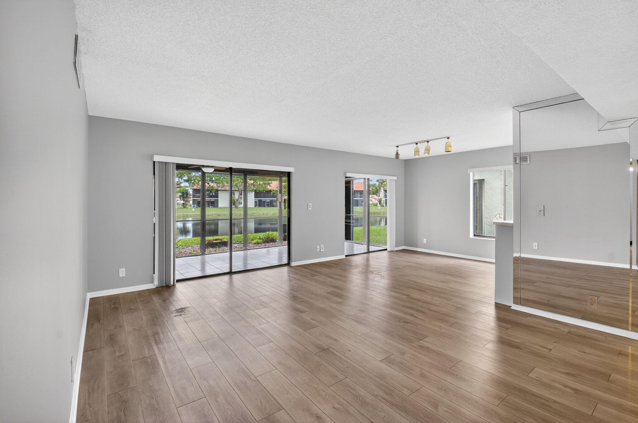 Now available in the gated 55+ community of Palm Chase. This beautiful 2 bed, 2 bath condo is incredibly spacious and offers an oversized screened-in patio with breathtaking views of the lake. There's ample living space with a large living room, separate open den/office, dining room and an eat-in kitchen. The master bedroom features a walk-in closet, a standard closet, and an en-suite bathroom with a walk-in shower. The entire unit has newer luxury vinyl flooring throughout and newer stainless steel appliances. There's a full washer and dryer located inside the unit as well and a newer A/C. Water and basic cable included. No pets per association - ESA and service animals are welcomed.Palm Chase is a premier 55+ community offering a heated salt water pool, hot tub, clubhouse, auditorium, and tennis courts with many clubs, activities and social events.