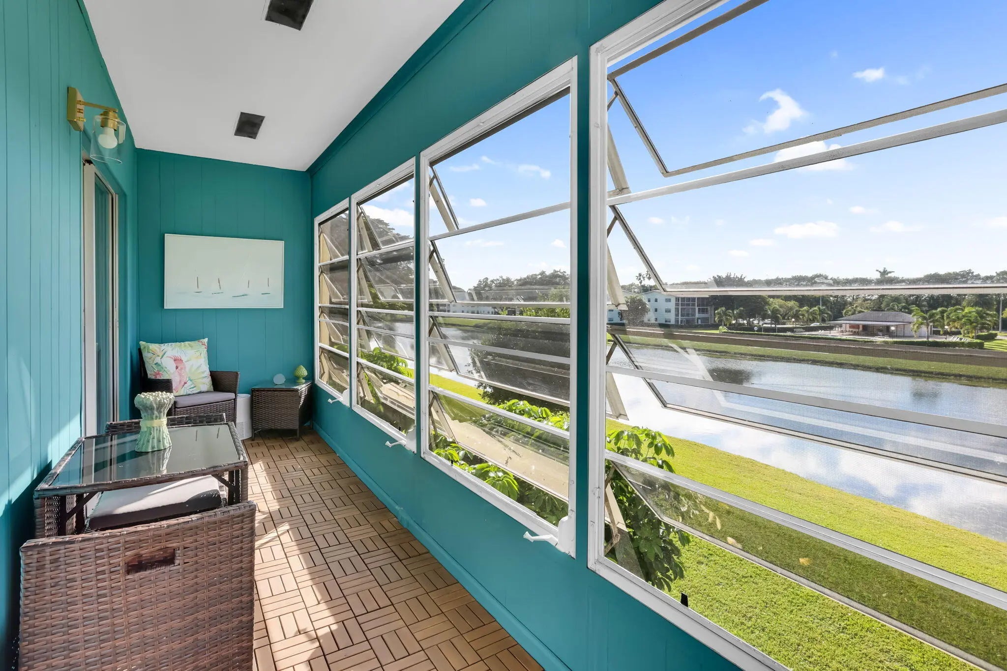 This inviting top-floor end-unit condo offers two bedrooms and one and a half baths, enhanced by recent upgrades that make it truly move-in ready. The home features all hard-surface flooring with no carpet, fresh interior paint, a brand-new AC system, and an updated electric panel for added peace of mind. An enclosed balcony with access from both bedrooms, a unique find, overlooks a peaceful lake, providing a relaxing space to enjoy morning coffee or unwind in the evenings. As an end unit, the condo benefits from additional windows and a quieter setting, while the open living area offers comfortable space for daily living or a low-maintenance seasonal retreat.