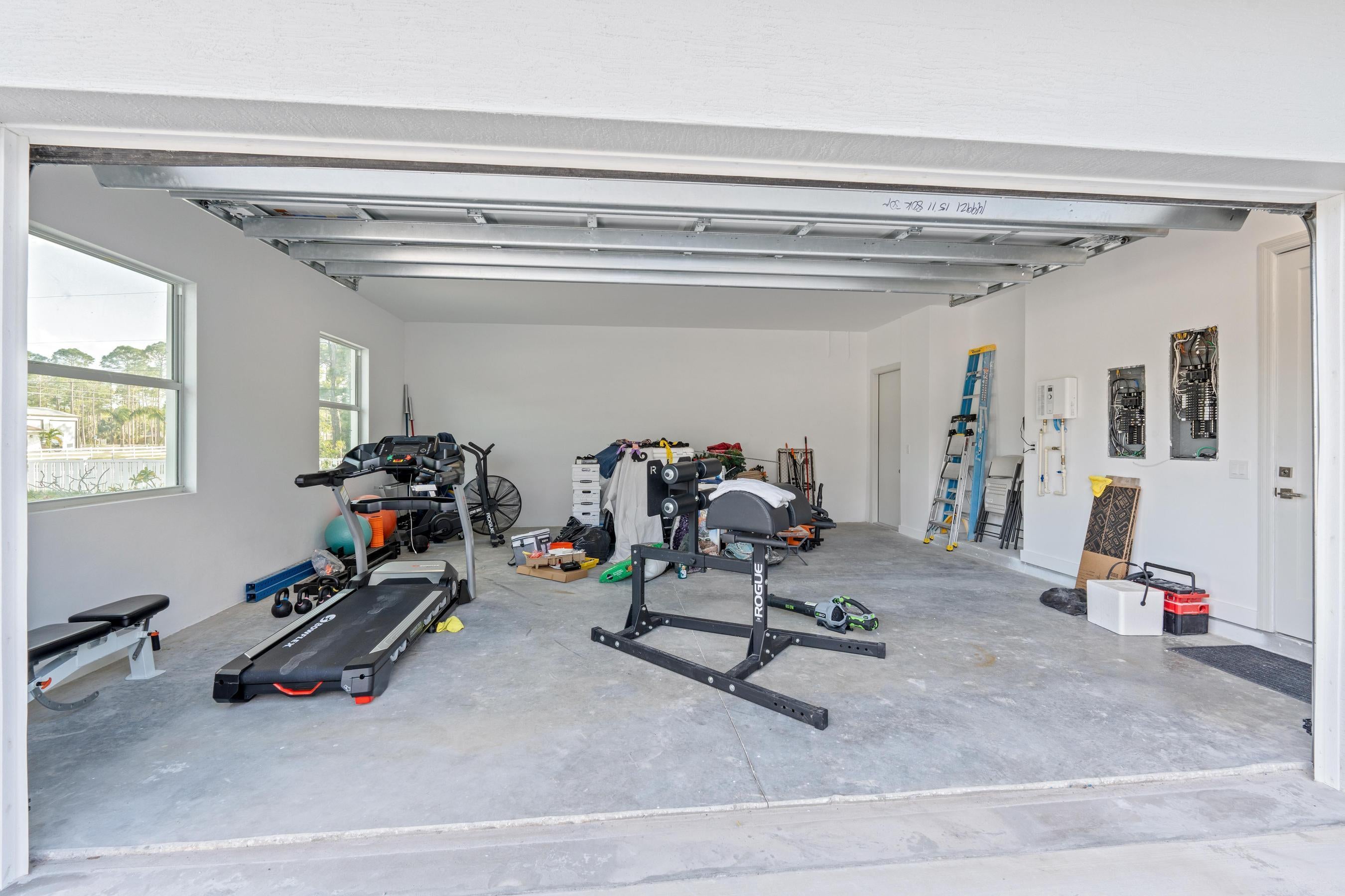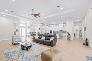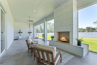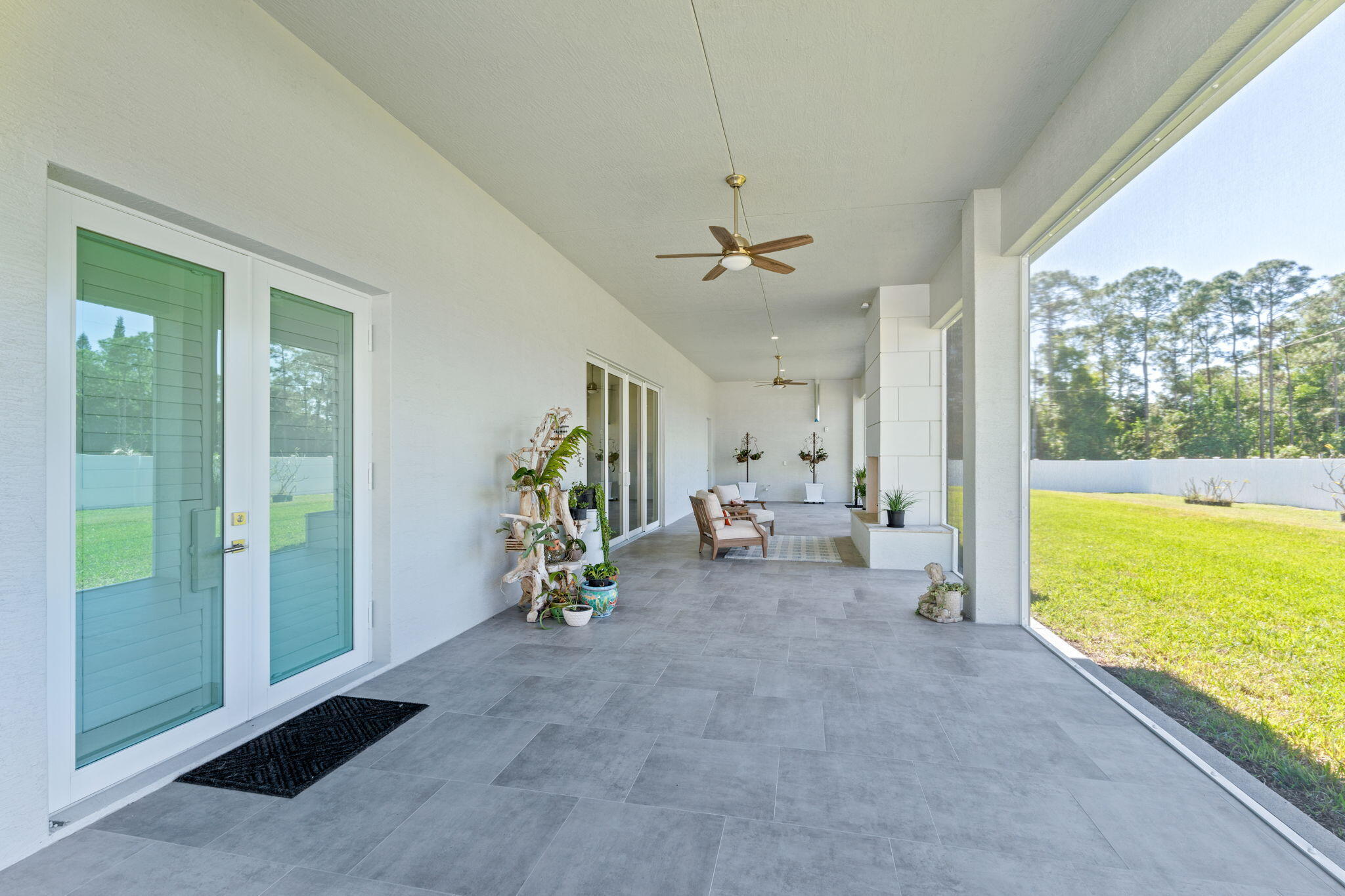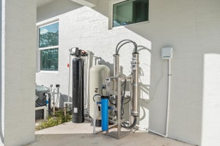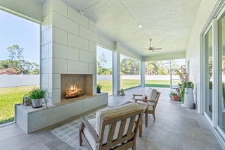 Experience unparalleled luxury and craftsmanship in this meticulously designed custom home, showcasing unique upgrades and premium finishes throughout. Nestled on a beautifully landscaped lot with a 4' privacy fence, the property is enhanced by a lush St. Augustine lawn maintained by a sprinkler system. The owners have invested well over $60,000 to properly fill and elevate the lot, ensuring superior drainage and eliminating any potential water-related concerns for years to come. A whole-house reverse osmosis system and a 4'' deep well with pump ensure exceptional water quality and efficiency. The exterior boasts energy-efficient double impact argon-filled windows and 8' doors with custom handles, while the interior features expansive 16' sliding glass doors that lead to a (continued)stunning porch with a custom-built wood-burning fireplace. Step inside to discover luxury laminate flooring and soaring 12' and 13' ceilings that create a spacious and elegant ambiance. The chef's kitchen is a masterpiece, featuring Quartzite countertops with a full backsplash, an oversized kitchen sink, and a custom cooktop backsplash by Haven Metals. A massive 6' x 12'6" island with a waterfall edge complements the suite of KitchenAid appliances, including a wine fridge. All-wood cabinetry with custom hardware and glass display tops adds a refined touch, while the fully equipped butler's pantry offers additional storage, Quartzite countertops, a built-in fridge, microwave, and floating shelves. The master suite is a sanctuary of luxury, with custom wood vanities featuring pullouts, polished nickel hardware, and a Quartz countertop that cascades into the walk-in shower. The master bathroom also includes a freestanding soaker tub with a polished nickel floor filler, a frameless glass shower with large-format tiles and recessed shelves, and polished nickel Kohler fixtures. Each ensuite bathroom throughout the home mirrors this level of elegance, with solid wood vanities, Quartz countertops, frameless glass showers, and large-format tiles, while the powder room stands out with a Quartzite countertop, custom sink, and faucet. The home's functionality matches its beauty, with a laundry room featuring all-wood cabinets, Quartz countertops with a waterfall edge, and an undermount sink. Energy efficiency is ensured with full spray foam insulation, two tankless water heaters, two A/C systems, and soundproofed interior walls. Ceiling fans are installed throughout the home, while full-skirted Kohler toilets add a final touch of refinement. The warehouse is equally impressive, featuring spray foam insulation, sheetrocked ceilings, and a bathroom with Quartz countertops, an undermount sink, and Kohler fixtures. The outdoor patio is ultimate backyard retreat fully screened with picture frame style screens to not obstruct your amazing views into the backyard. Outdoor patio is fully tiled with rectified porcelain making it a breeze to maintain. There is not anything not thought of with this home. This home exemplifies the perfect blend of luxury, design, and practicality, offering an unmatched living experience for the discerning buyer. Don't miss your opportunity to call this exceptional property your own.