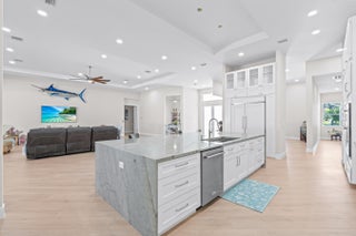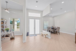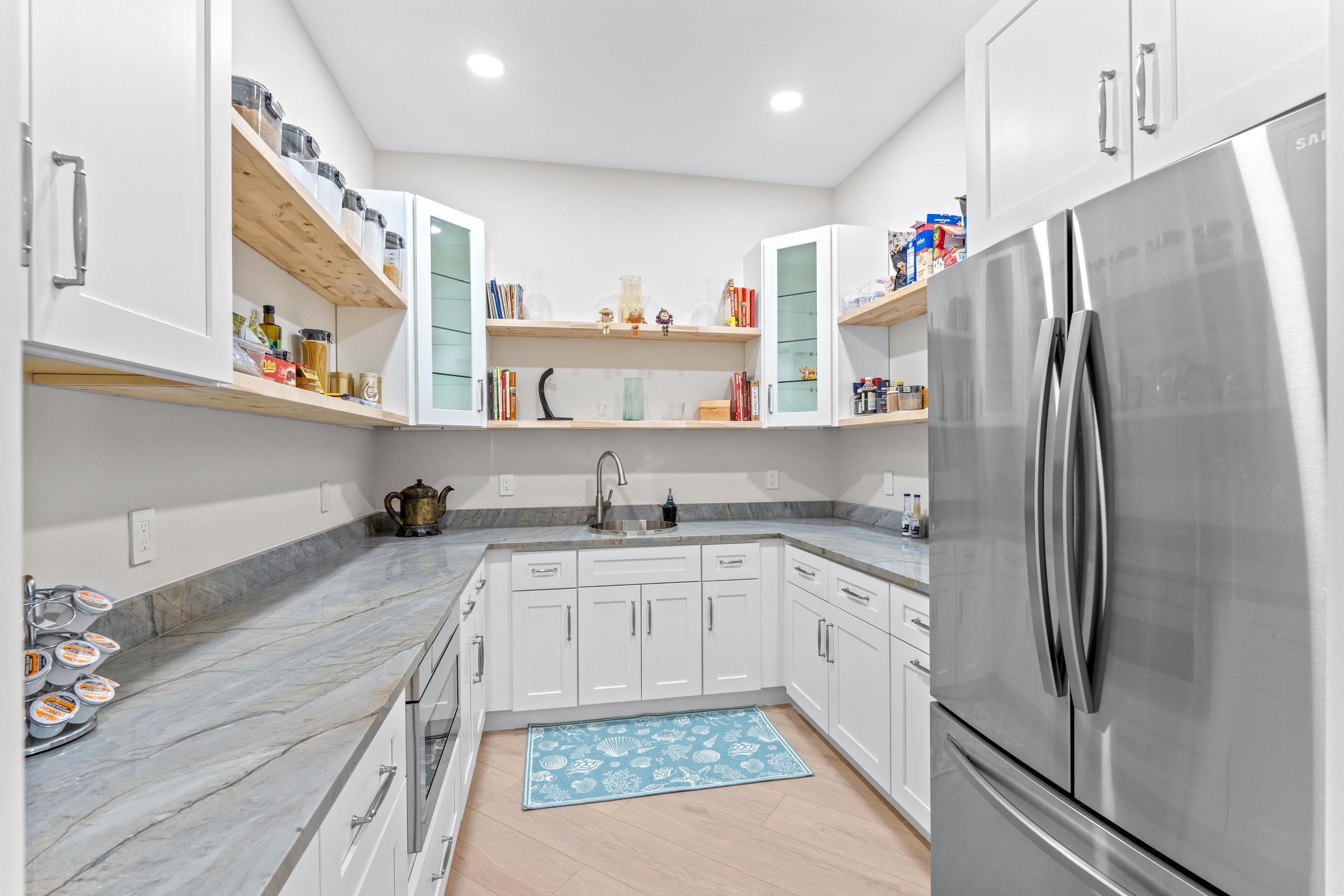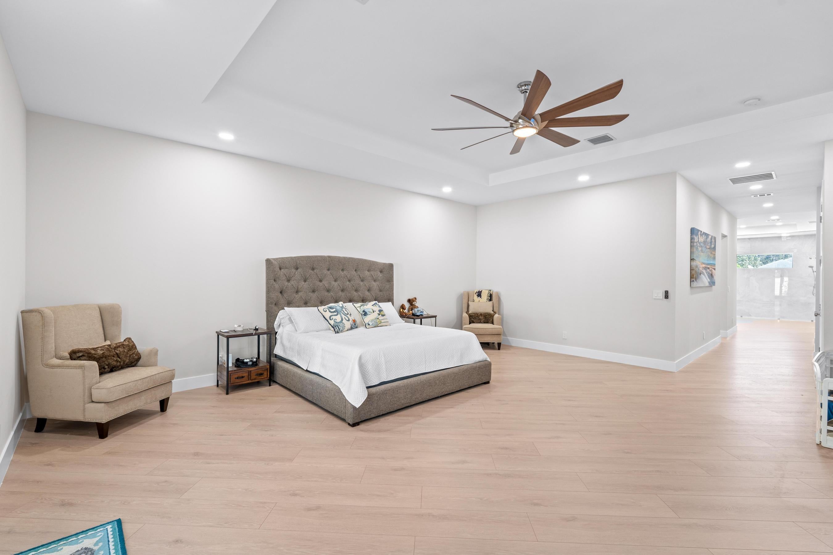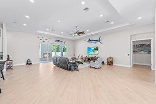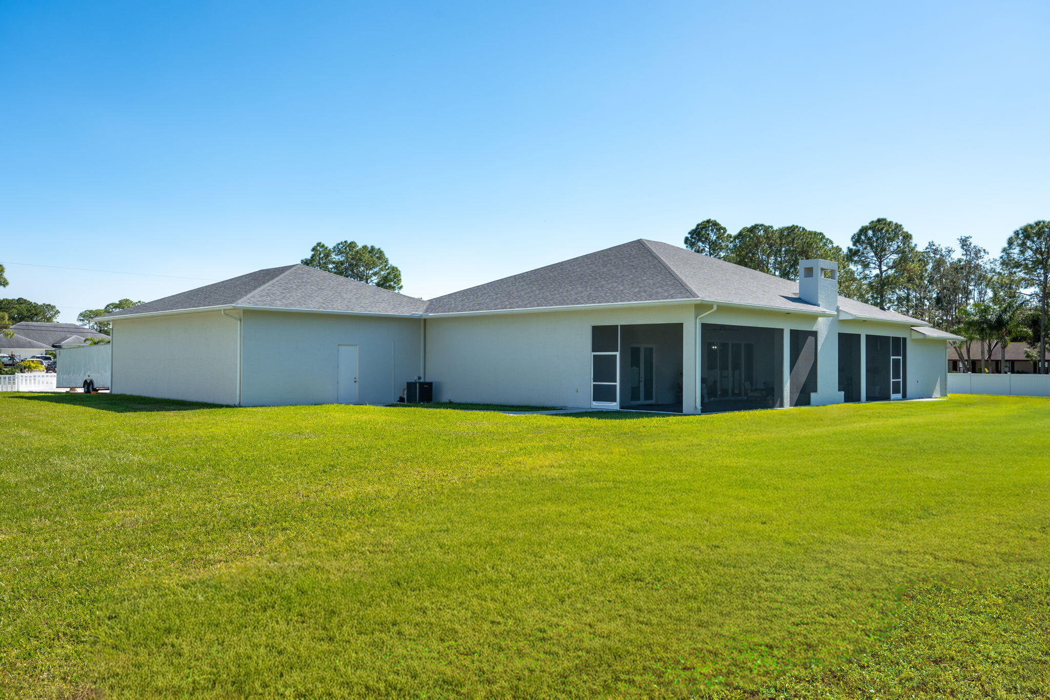Experience unparalleled luxury and craftsmanship in this meticulously designed custom home, showcasing unique upgrades and premium finishes throughout. Nestled on a beautifully landscaped lot with a 4' privacy fence, the property is enhanced by a lush St. Augustine lawn maintained by a sprinkler system. The owners have invested well over $60,000 to properly fill and elevate the lot, ensuring superior drainage and eliminating any potential water-related concerns for years to come. A whole-house reverse osmosis system and a 4'' deep well with pump ensure exceptional water quality and efficiency. The exterior boasts energy-efficient double impact argon-filled windows and 8' doors with custom handles, while the interior features expansive 16' sliding glass doors that lead to a (continued)stunning porch with a custom-built wood-burning fireplace. Step inside to discover luxury laminate flooring and soaring 12' and 13' ceilings that create a spacious and elegant ambiance. The chef's kitchen is a masterpiece, featuring Quartzite countertops with a full backsplash, an oversized kitchen sink, and a custom cooktop backsplash by Haven Metals. A massive 6' x 12'6" island with a waterfall edge complements the suite of KitchenAid appliances, including a wine fridge. All-wood cabinetry with custom hardware and glass display tops adds a refined touch, while the fully equipped butler's pantry offers additional storage, Quartzite countertops, a built-in fridge, microwave, and floating shelves. The master suite is a sanctuary of luxury, with custom wood vanities featuring pullouts, polished nickel hardware, and a Quartz countertop that cascades into the walk-in shower. The master bathroom also includes a freestanding soaker tub with a polished nickel floor filler, a frameless glass shower with large-format tiles and recessed shelves, and polished nickel Kohler fixtures. Each ensuite bathroom throughout the home mirrors this level of elegance, with solid wood vanities, Quartz countertops, frameless glass showers, and large-format tiles, while the powder room stands out with a Quartzite countertop, custom sink, and faucet. The home's functionality matches its beauty, with a laundry room featuring all-wood cabinets, Quartz countertops with a waterfall edge, and an undermount sink. Energy efficiency is ensured with full spray foam insulation, two tankless water heaters, two A/C systems, and soundproofed interior walls. Ceiling fans are installed throughout the home, while full-skirted Kohler toilets add a final touch of refinement. The warehouse is equally impressive, featuring spray foam insulation, sheetrocked ceilings, and a bathroom with Quartz countertops, an undermount sink, and Kohler fixtures. The outdoor patio is ultimate backyard retreat fully screened with picture frame style screens to not obstruct your amazing views into the backyard. Outdoor patio is fully tiled with rectified porcelain making it a breeze to maintain. There is not anything not thought of with this home. This home exemplifies the perfect blend of luxury, design, and practicality, offering an unmatched living experience for the discerning buyer. Don't miss your opportunity to call this exceptional property your own.