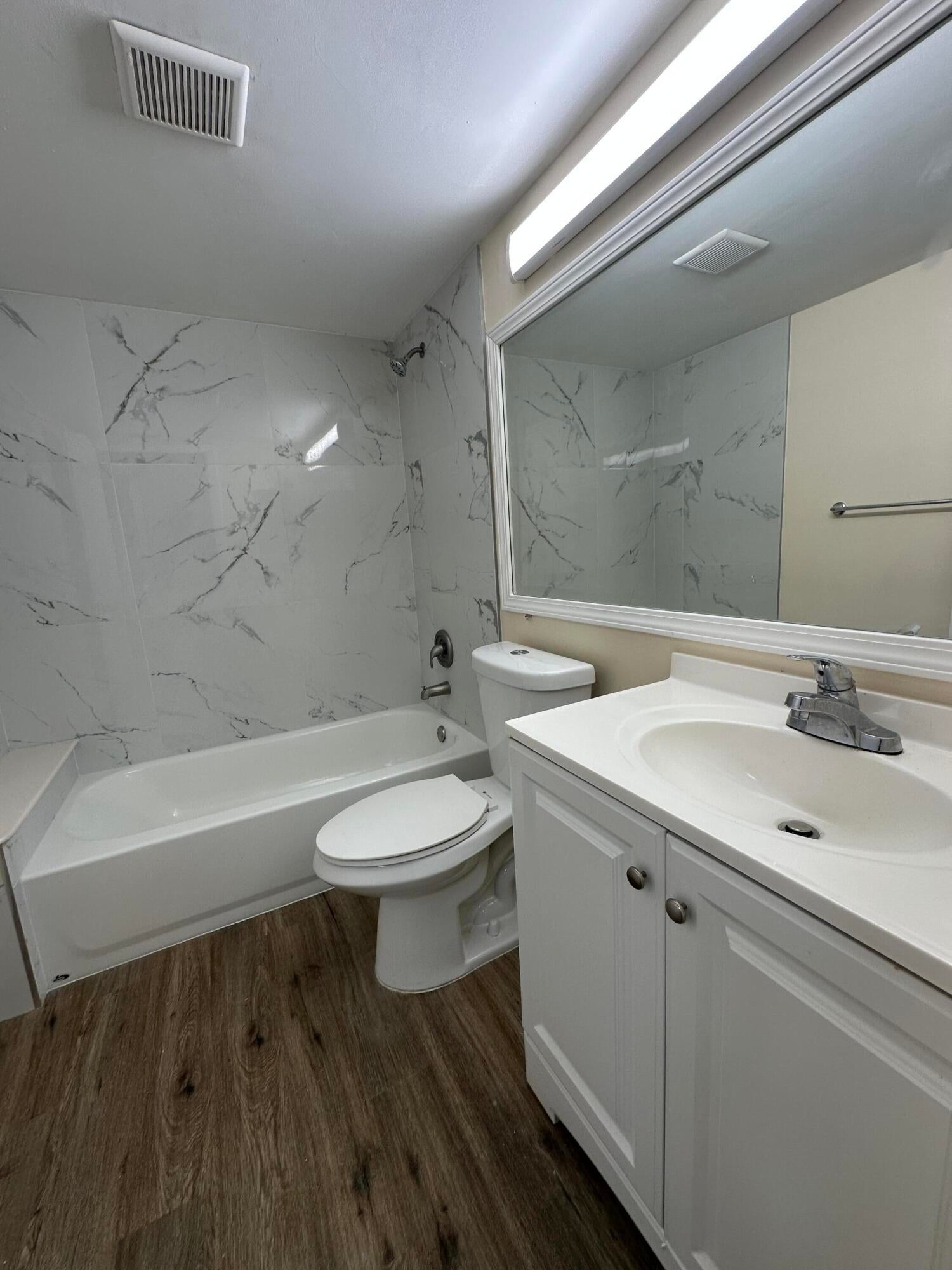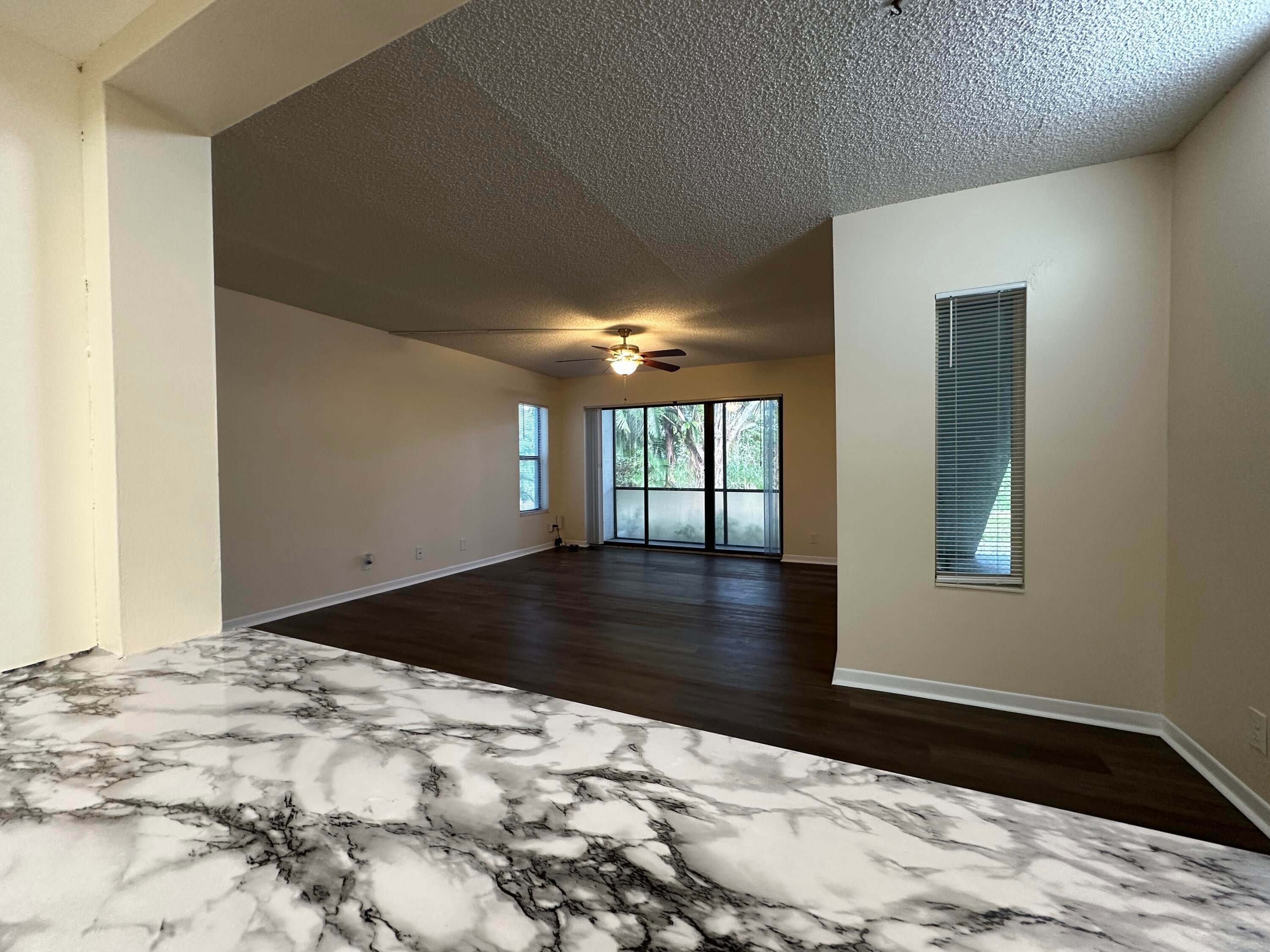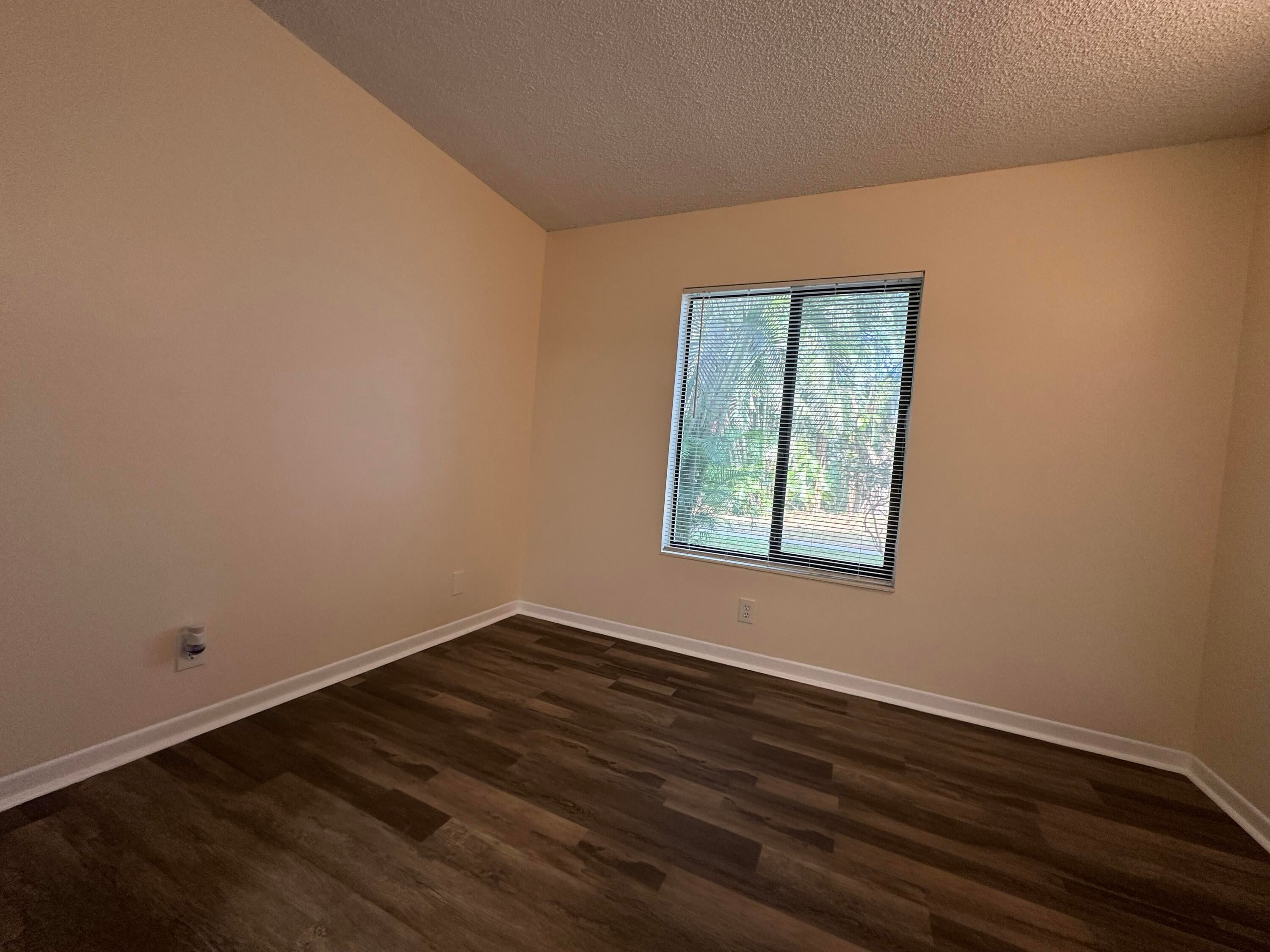 Spacious 2/2, Corner Unit with Screened Patio in Gated Community with Pool, Spa, Tennis Courts and a Clubhouse, which can be reserved for special events. First floor, plenty of parking, beautiful grounds with wide open spaces, big oak trees, benches, grills and picnic tables overlooking the lakes, which you are allowed to fish. Convenient location, West of Military Tr, North of Community Dr. Brand new Luxury Vinyl Flooring, Refurbished Kitchen, Newer Washer & Dryer in the unit, brand new blinds and fresh paint throughout. Clean and ready for move in after board approval. Cable, Water, Internet included. Small dog considered on a case by case basis.