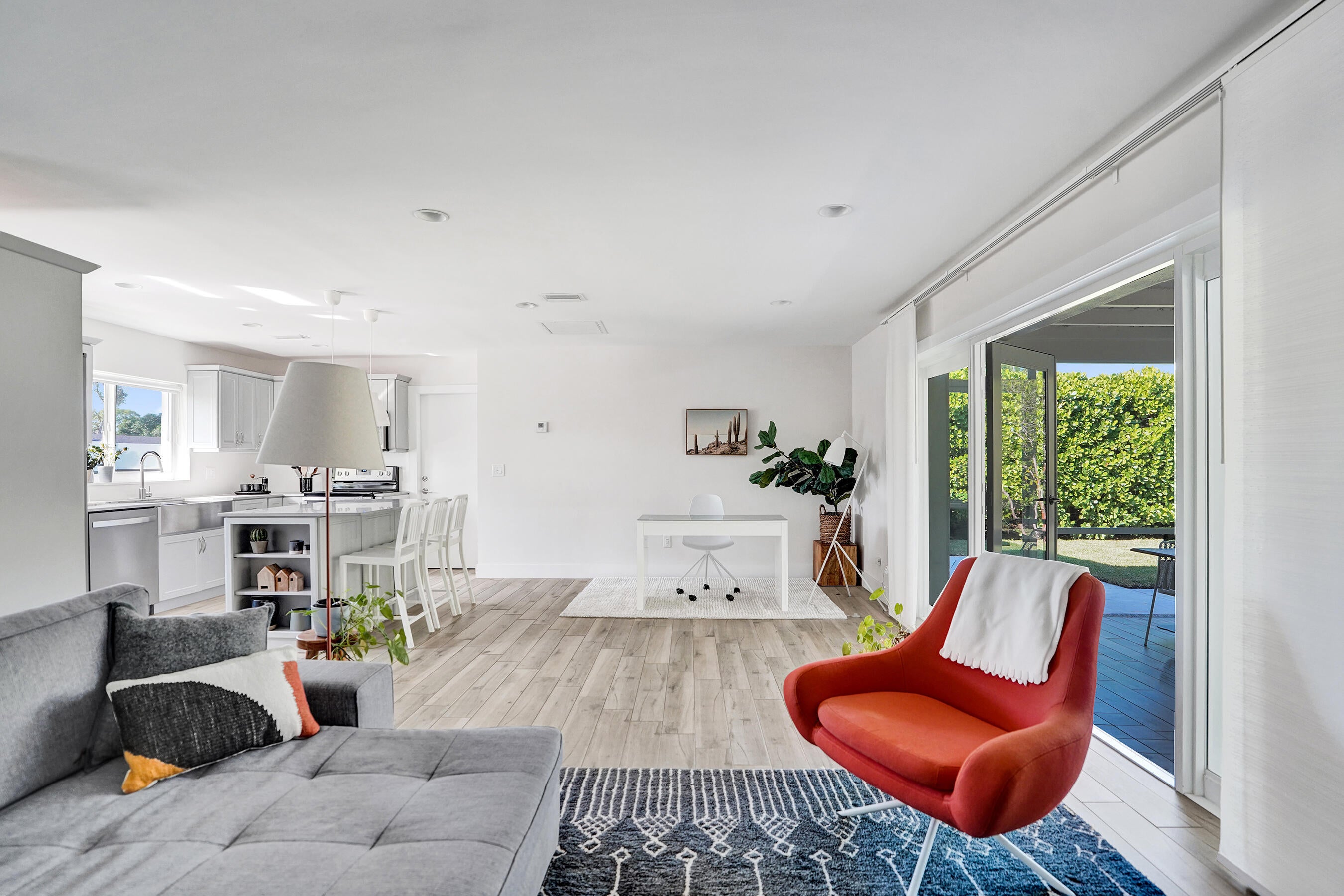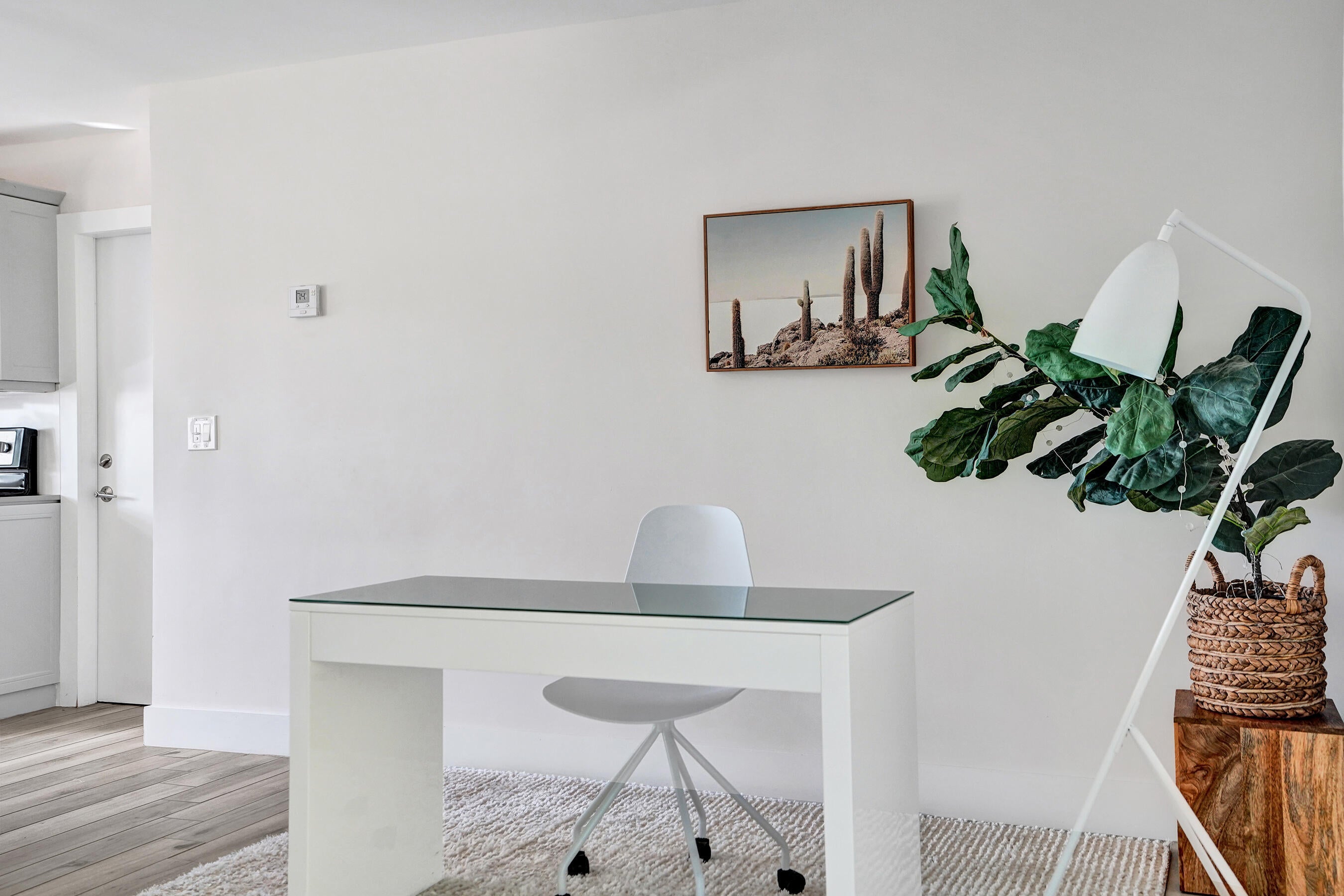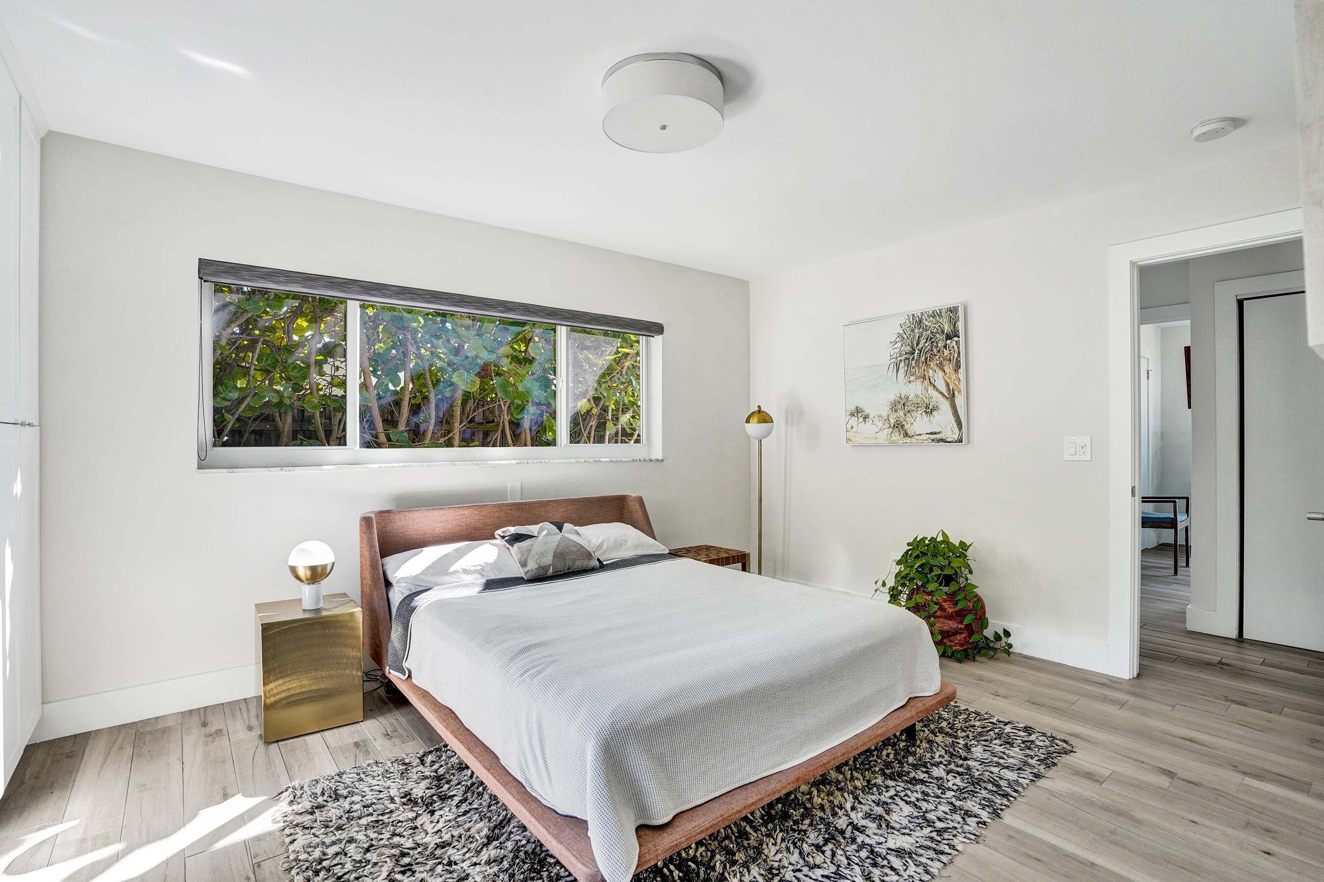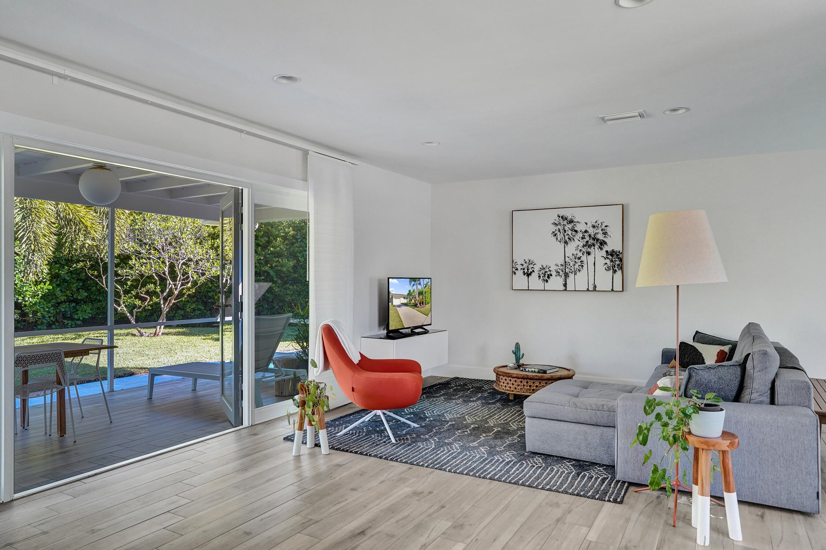 Beautifully furnished seasonal or annual rental in East Boca - designers own remodeled midcentury modern home with lush tropical landscaping, lots of light and great energy! Live in the charming and highly desirable Boca Square that locates you 5 mins from anywhere - Mizner Park, The Beach, Whole Foods, Trader Joes and 95. Two bedrooms with custom finishes and queen size beds from Ethnicraft and Blue Dot, heavenly deluxe mattresses and storage galore. Open style living space with an office desk and comfortable Calligaris sofa with cozy throws for your Netfix nights. The kitchen is stocked with all the cooking essentials. A screened in patio set up for outdoor dining and lounging. The garage is built out with a small gym and full size W/D. Inquire for seasonal rates and details. No pets