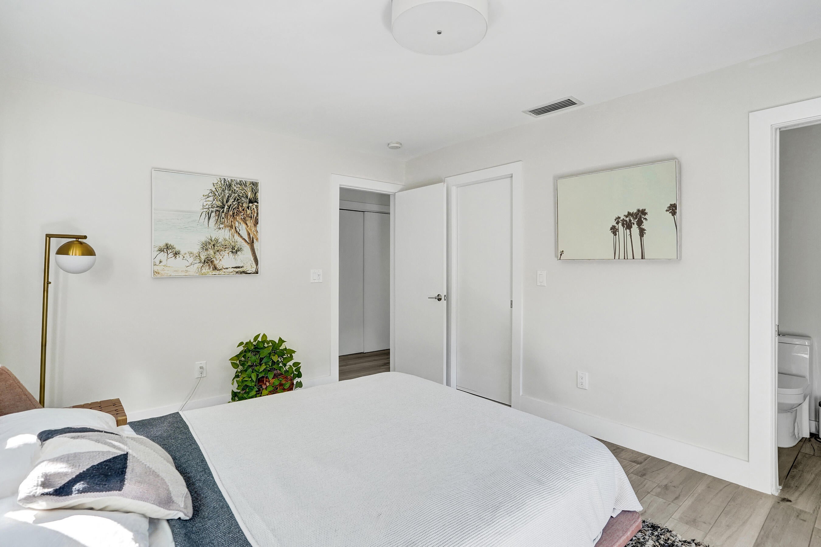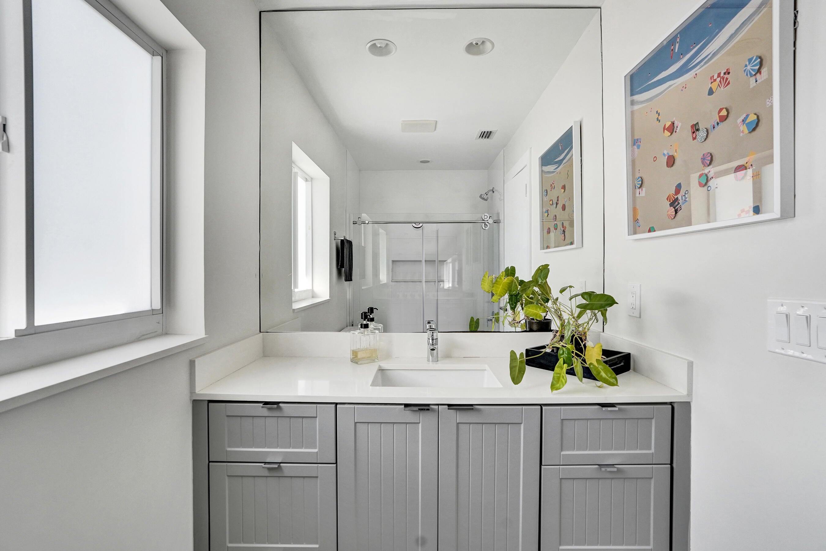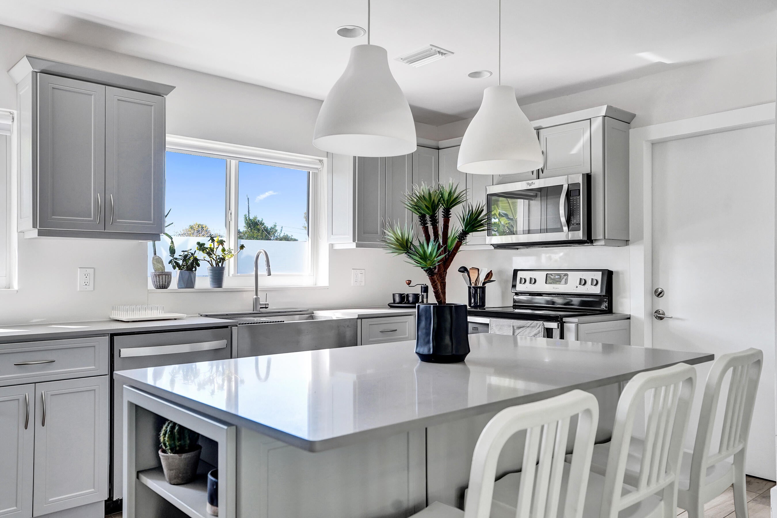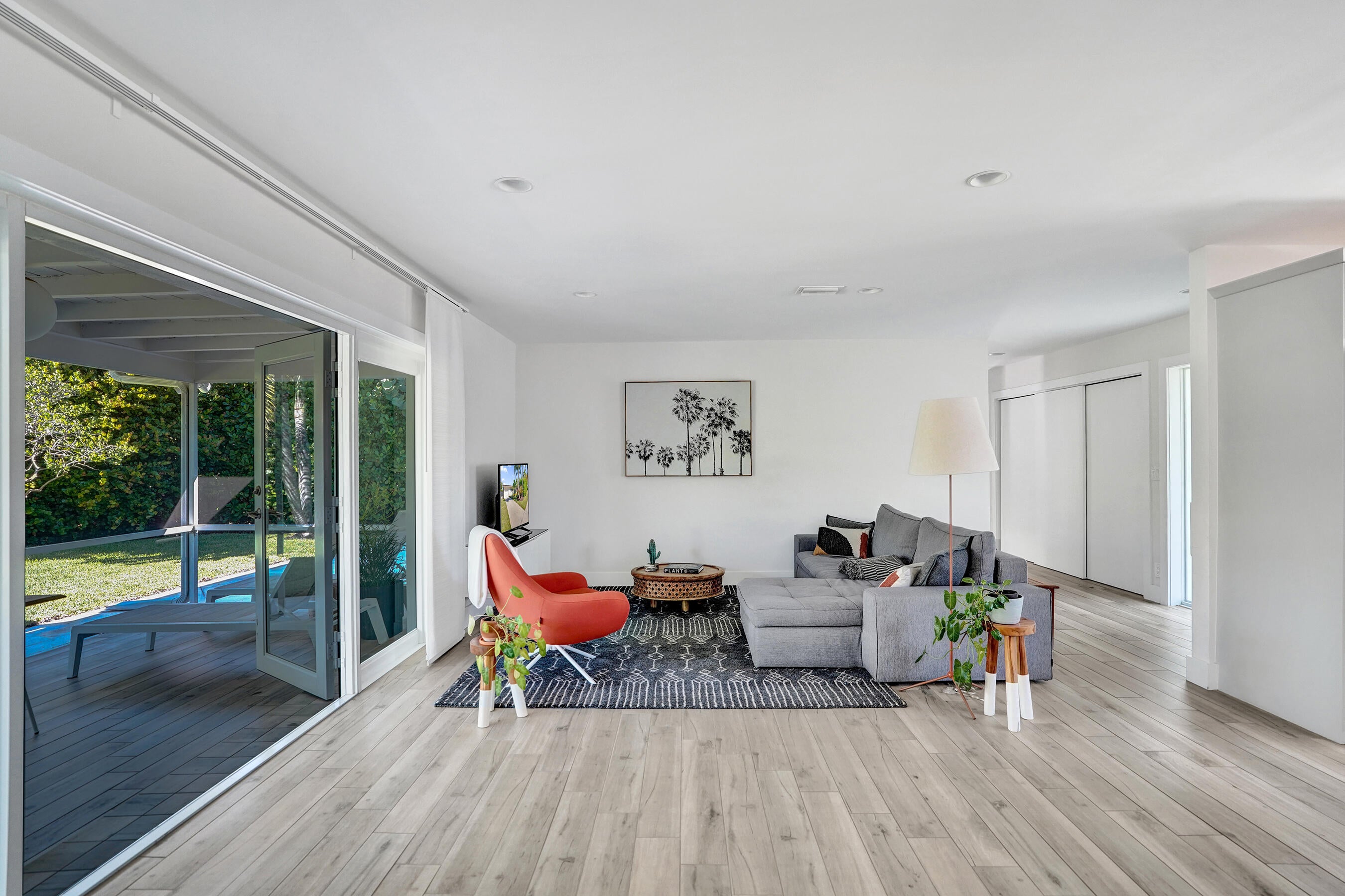 Beautifully furnished seasonal or annual rental in East Boca - designers own remodeled midcentury modern home with lush tropical landscaping, lots of light and great energy! Live in the charming and highly desirable Boca Square that locates you 5 mins from anywhere - Mizner Park, The Beach, Whole Foods, Trader Joes and 95. Two bedrooms with custom finishes and queen size beds from Ethnicraft and Blue Dot, heavenly deluxe mattresses and storage galore. Open style living space with an office desk and comfortable Calligaris sofa with cozy throws for your Netfix nights. The kitchen is stocked with all the cooking essentials. A screened in patio set up for outdoor dining and lounging. The garage is built out with a small gym and full size W/D. Inquire for seasonal rates and details. No pets