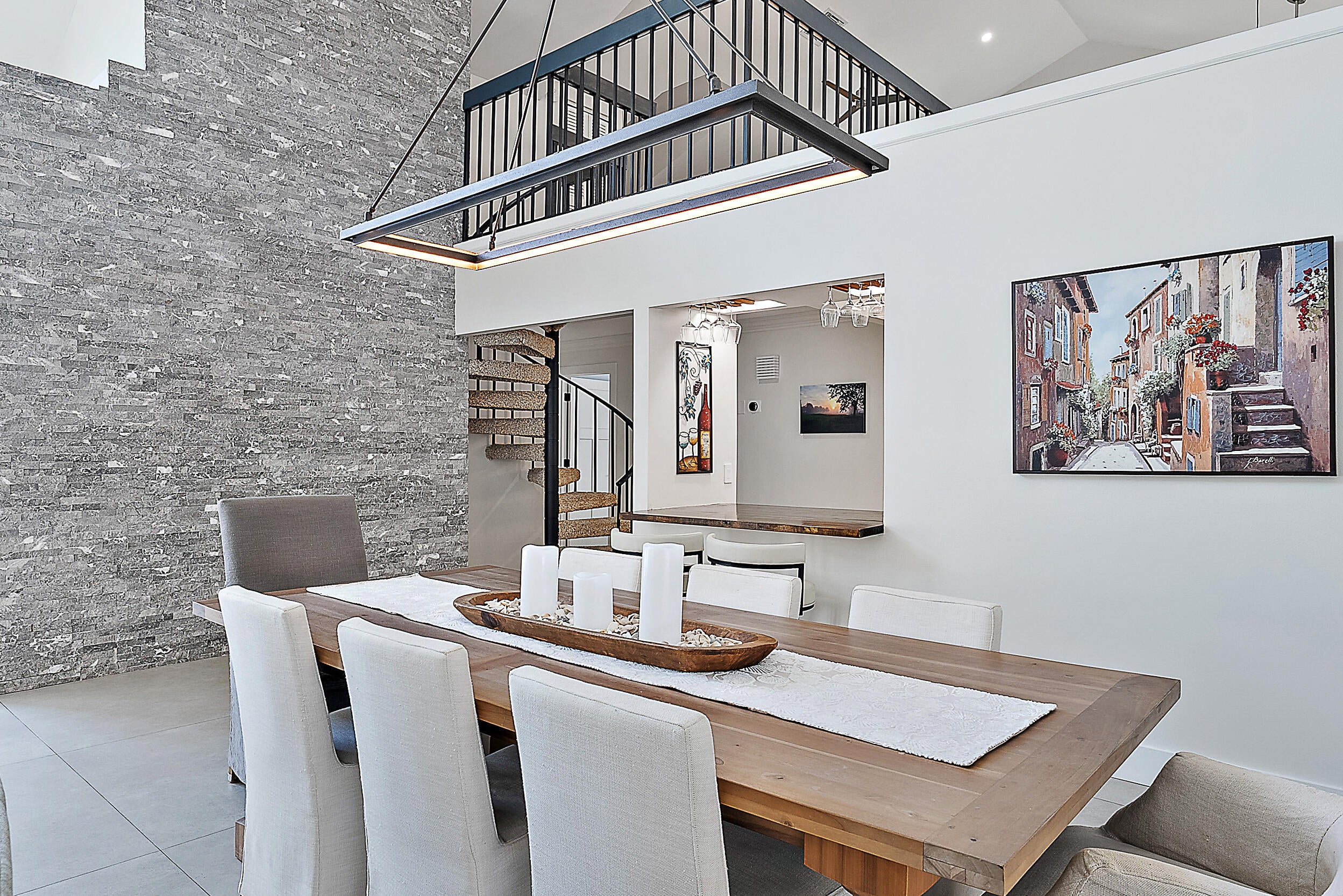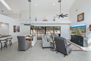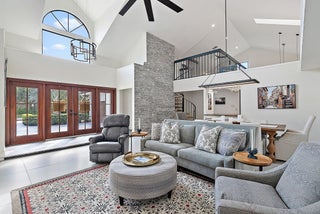 Welcome to this exceptional residence in the gated community of Frenchmen's Landing--perfectly positioned in the center of it all and just minutes to restaurants, Trader Joe's, the beach, and world-class shopping. This special property offers an impressive combination of space, style, and updates with a spacious floor plan and beautifully renovated interior. Enjoy 4'x4' tile throughout the main level, new designer lighting, a striking stone accent wall, updated bathrooms, newer appliances, 2018 & 2025 AC units, partial impact windows, accordion shutters on sliders, an oversized 2-car garage, and so much more. A grand entry with soaring 24' ceilings delivers the WOW factor every buyer loves. Open the pocket sliding glass doors and seamlessly blend indoor and outdoor liviThe expansive decking surrounds a sparkling saltwater pool ideal for entertaining family and friends. The property is fully fenced and surrounded by lush tropical landscaping, featuring a new rock outdoor shower and abundant privacy throughout.