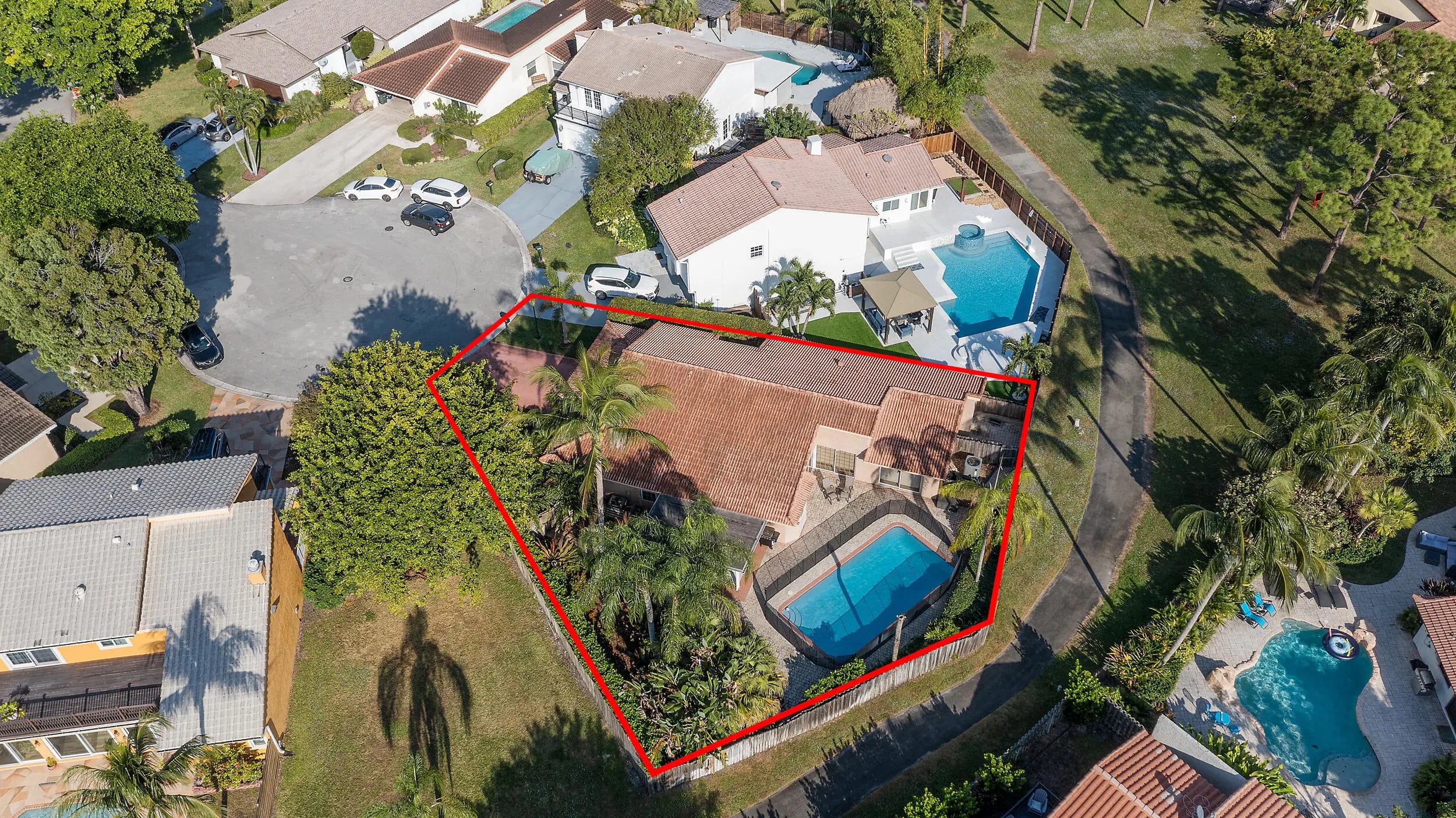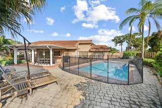 Discover exceptional outdoor living in this lakeview ranch home, set on one of the largest and most private lots in the community. The expansive backyard is a true retreat, featuring a heated pool, shaded pergola, lush privacy trees, and serene water views--your own hidden oasis.Inside, the home offers flexible living with what was originally a true 4-bedroom layout. The previous owners opened one bedroom wall to create additional living space, easily convertible back if desired. Recent updates include added attic insulation, a new double sink, new stovetop, updated AC vents, and a new pool filter pump.Move-in ready and perfectly positioned for those who value privacy, space, and exceptional outdoor living.