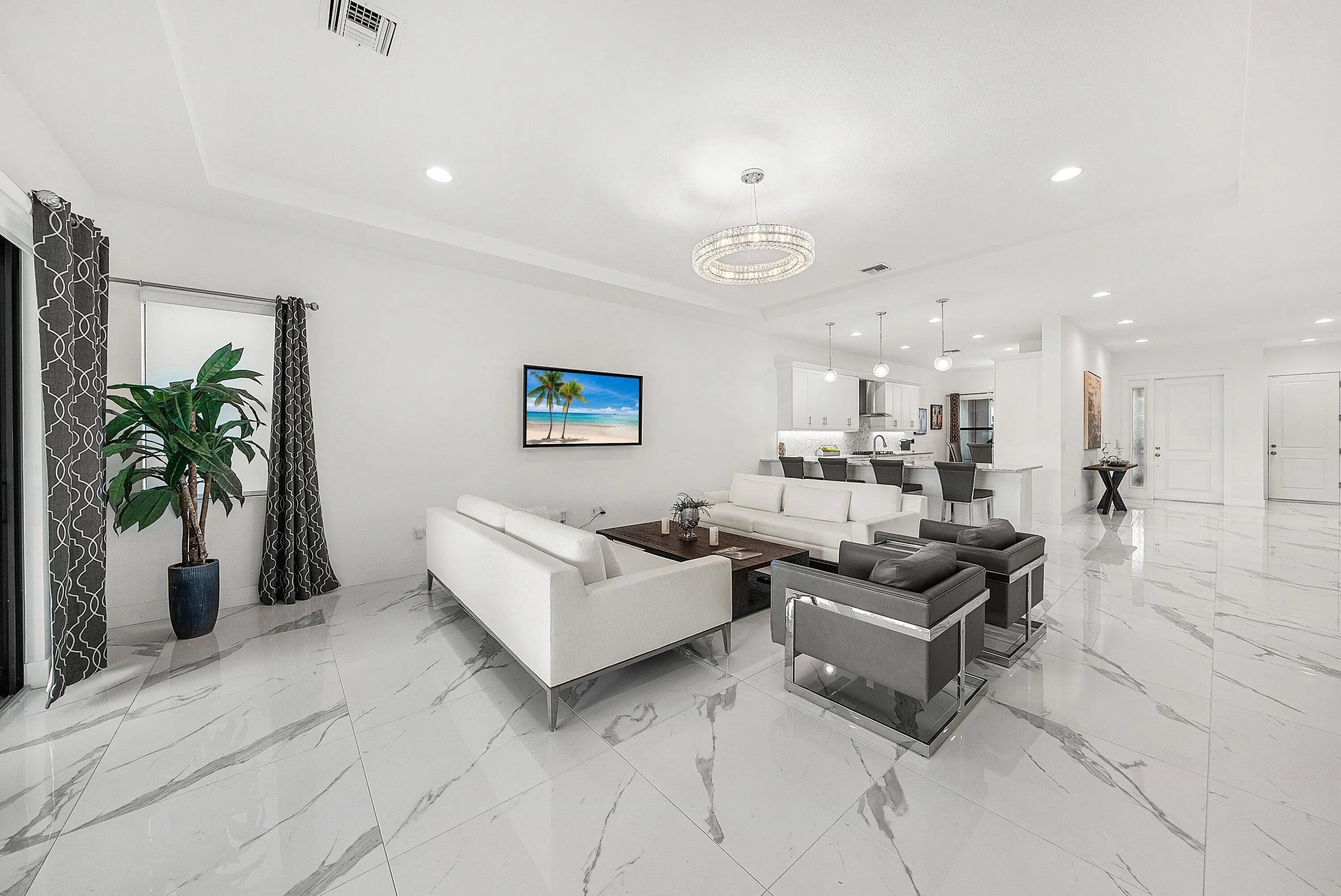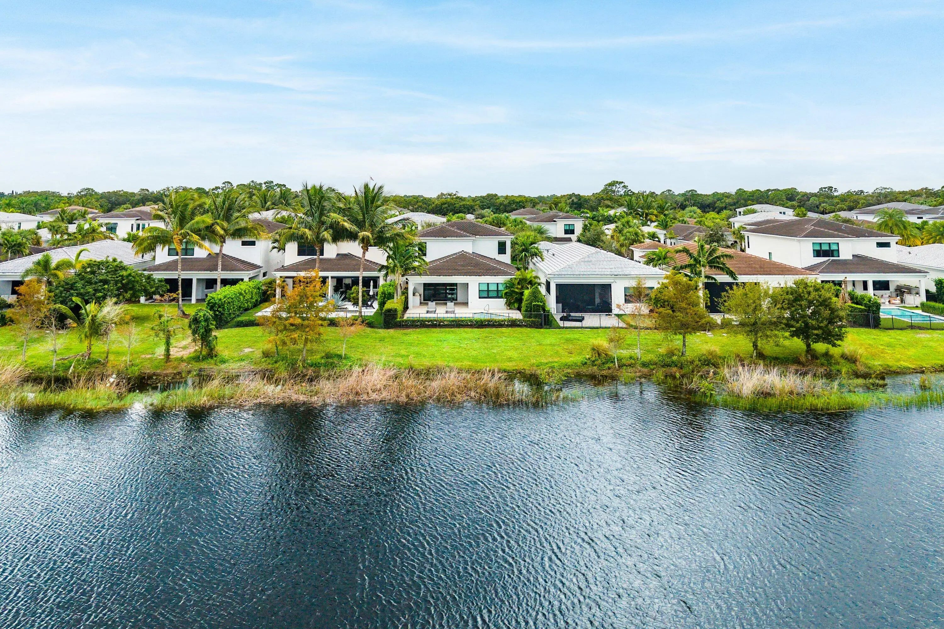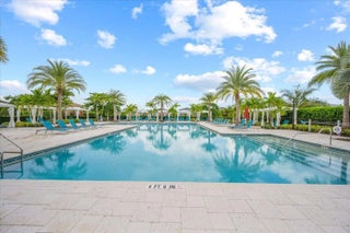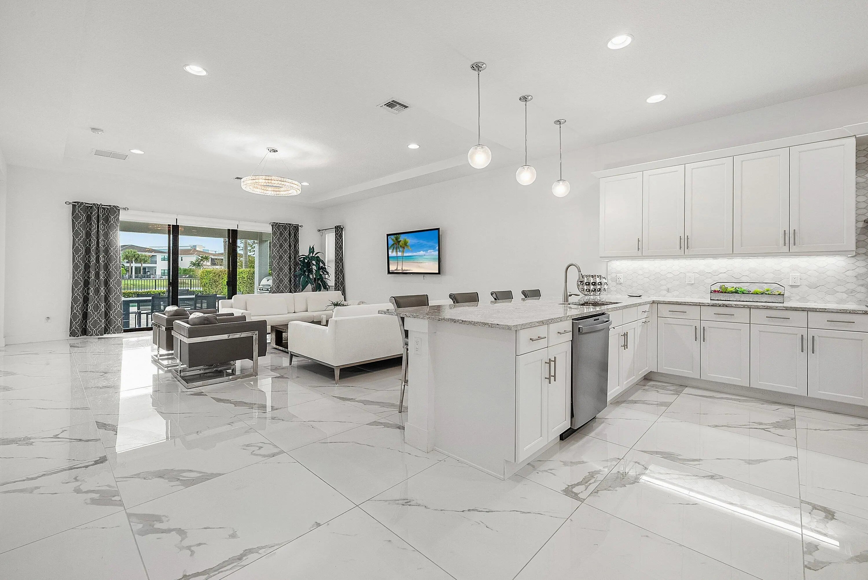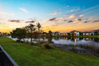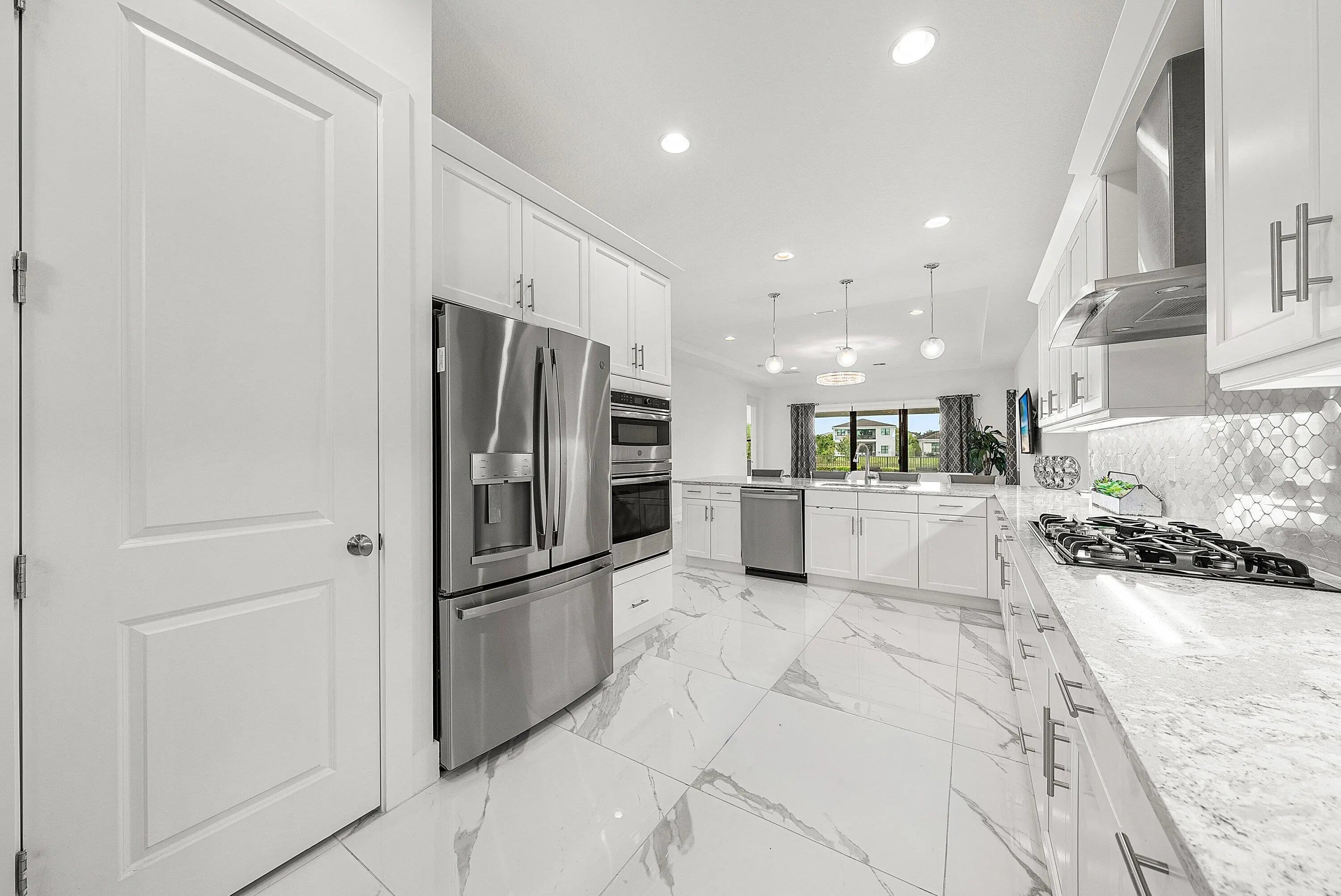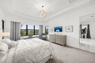 EXPANSIVE LAKEFRONT POOL HOME WITH DOWNSTAIRS PRIMARY SUITE. This highly desirable Francesca Model sits on one of the most premium lots, centrally located in the quietest section of Artistry, creating a peaceful oasis, while still walking distance from the clubhouse amenities. The home can be purchased conveniently with Restoration Hardware furnishings (pictured), just bring your toothbrush! Boasting 3162 sq. ft. of living space, the floor plan is perfectly suited for a family or snowbird. Featuring a large ground floor primary bedroom, 2 upstairs guest suites with walk-in closets & ensuite bath, plus an additional loft (flex space or 4th bedroom).The property is loaded with upgrades like oversized porcelain tile flooring, custom window treatments, high end carpets, designer