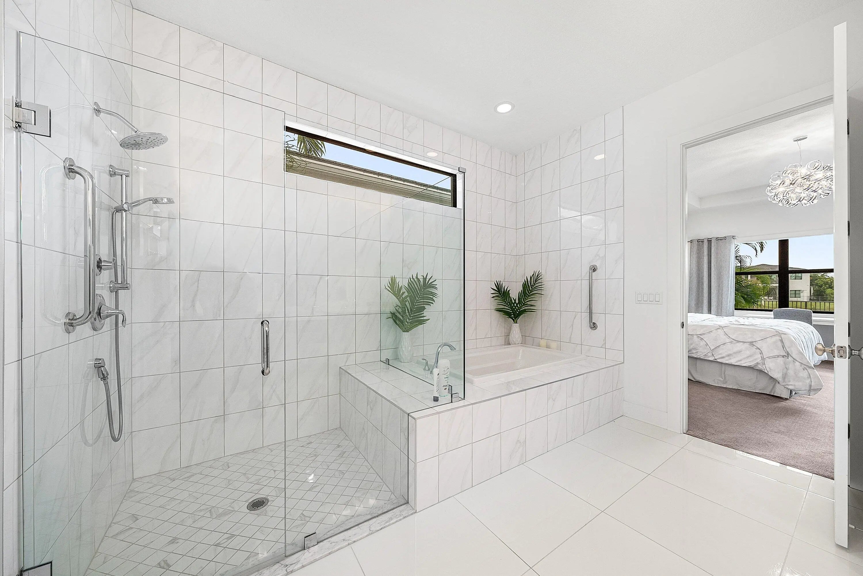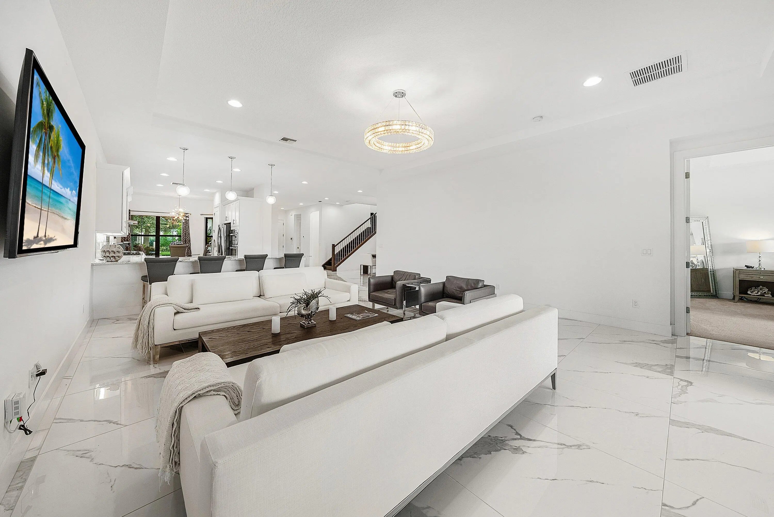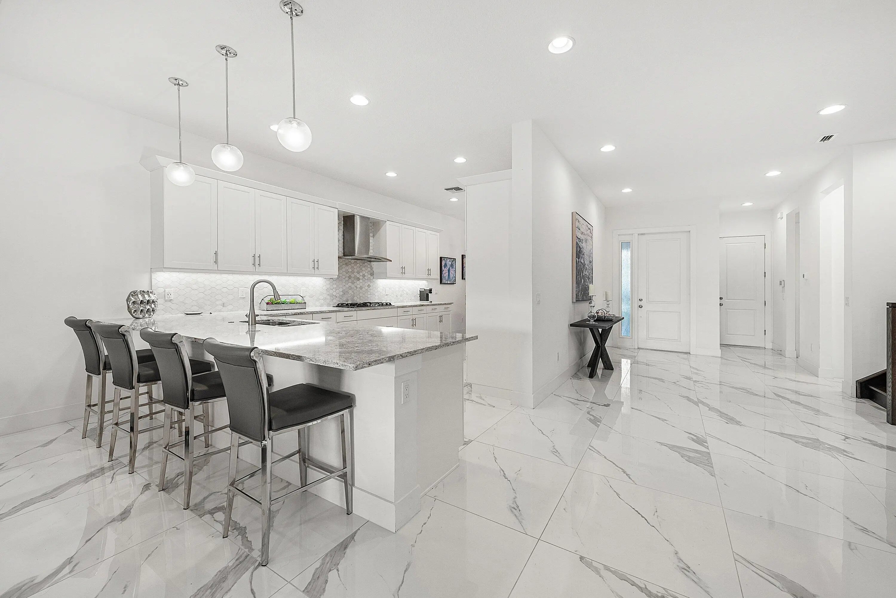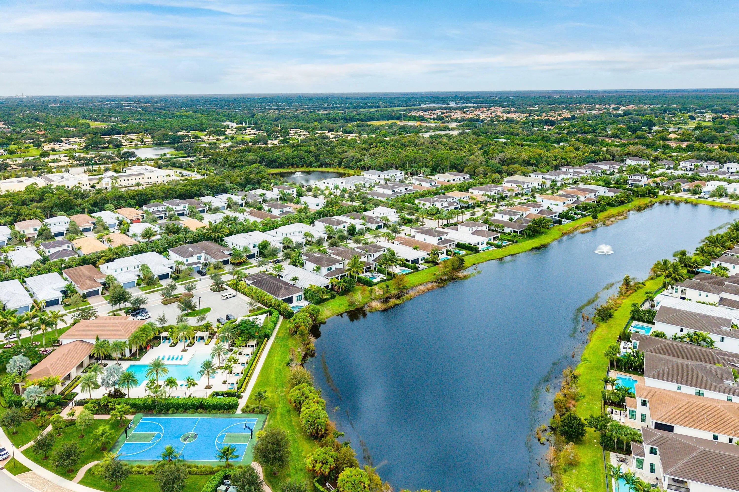 EXPANSIVE LAKEFRONT POOL HOME WITH DOWNSTAIRS PRIMARY SUITE. This highly desirable Francesca Model sits on one of the most premium lots, centrally located in the quietest section of Artistry, creating a peaceful oasis, while still walking distance from the clubhouse amenities. The home can be purchased conveniently with Restoration Hardware furnishings (pictured), just bring your toothbrush! Boasting 3162 sq. ft. of living space, the floor plan is perfectly suited for a family or snowbird. Featuring a large ground floor primary bedroom, 2 upstairs guest suites with walk-in closets & ensuite bath, plus an additional loft (flex space or 4th bedroom).The property is loaded with upgrades like oversized porcelain tile flooring, custom window treatments, high end carpets, designer