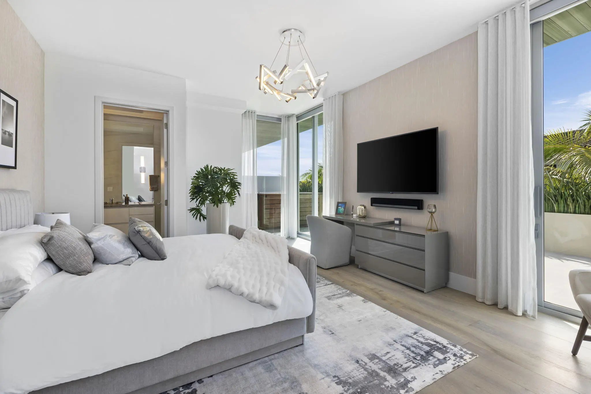 Experience unparalleled coastal luxury at The Sting Residence, an exceptional 4-bedroom, 3.5-bathroom oceanfront penthouse in Delray Beach's premier full-service concierge building, 1625 Ocean. One of only four exclusive penthouses, this fully furnished masterpiece--designed by Interiors by Steven G--delivers the ultimate turnkey lifestyle in one of South Florida's most coveted boutique residences. All designer furnishings are not included in the list price but can be negotiated separately.Perched above the pristine shoreline, the residence showcases nearly 2,000 square feet of expansive wraparound outdoor living space, offering a true sanctuary in the sky. Bask in the warm southern exposure, dine al fresco, entertain with ease at your summer kitchen, or unwind in your private