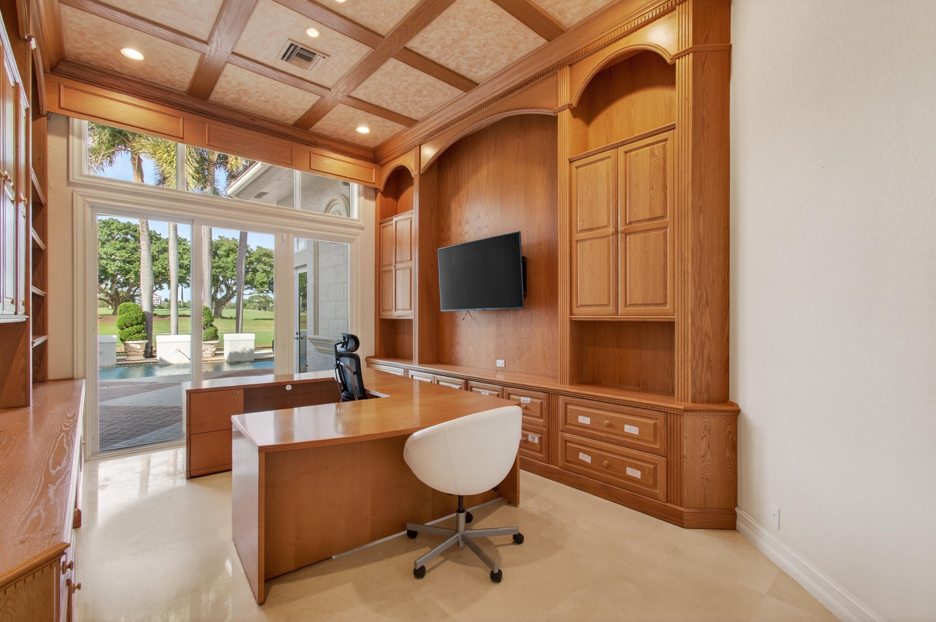 331 Mizner Lake Estates Drive is a distinguished residence located within the legendary The Boca Raton Resort & Club, positioned in the exclusive, double-gated enclave of Mizner Lake Estates. This single-story estate offers exceptional privacy, security, and sophistication, all while being steps away from world-class country club amenities.The property features five bedrooms, including four en-suite guest rooms, as well as a private guest house, gym, office/retreat, a four-car garage, and a gated private entrance. High ceilings and a thoughtfully designed floor plan create a seamless flow throughout the home, complemented by expansive golf course and lake views that define luxury living in Boca Raton.The primary suite is ideally positioned to capture sweeping views of the manicured grounds and lake, and includes an indulgent spa-style bathroom with separate vanities, dual showers, soaking tub, water closets, and generous walk-in closets. The richly finished hardwood-paneled office offers a quiet sanctuary separate from the main living areas. The outdoor environment is designed for both relaxation and entertaining, complete with a resort-style pool, outdoor kitchen, and spacious dining and lounge areas. Residents enjoy simplified living, as the association maintains the pool, landscaping, and water services. While club membership is not required, full membership opportunities are available through The Boca Raton, providing access to unparalleled dining, golf, spa, beach club, and social amenities. Living in Mizner Lake Estates places you in one of the most coveted locations in Boca Raton, a city renowned for its pristine beaches, top-tier schools, vibrant cultural scene, premier shopping, and exceptional quality of life. Combining exclusivity, convenience, and timeless elegance, this estate embodies the very best of Boca Raton livingresort-style luxury enhanced by unmatched privacy and security.