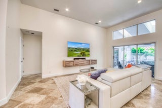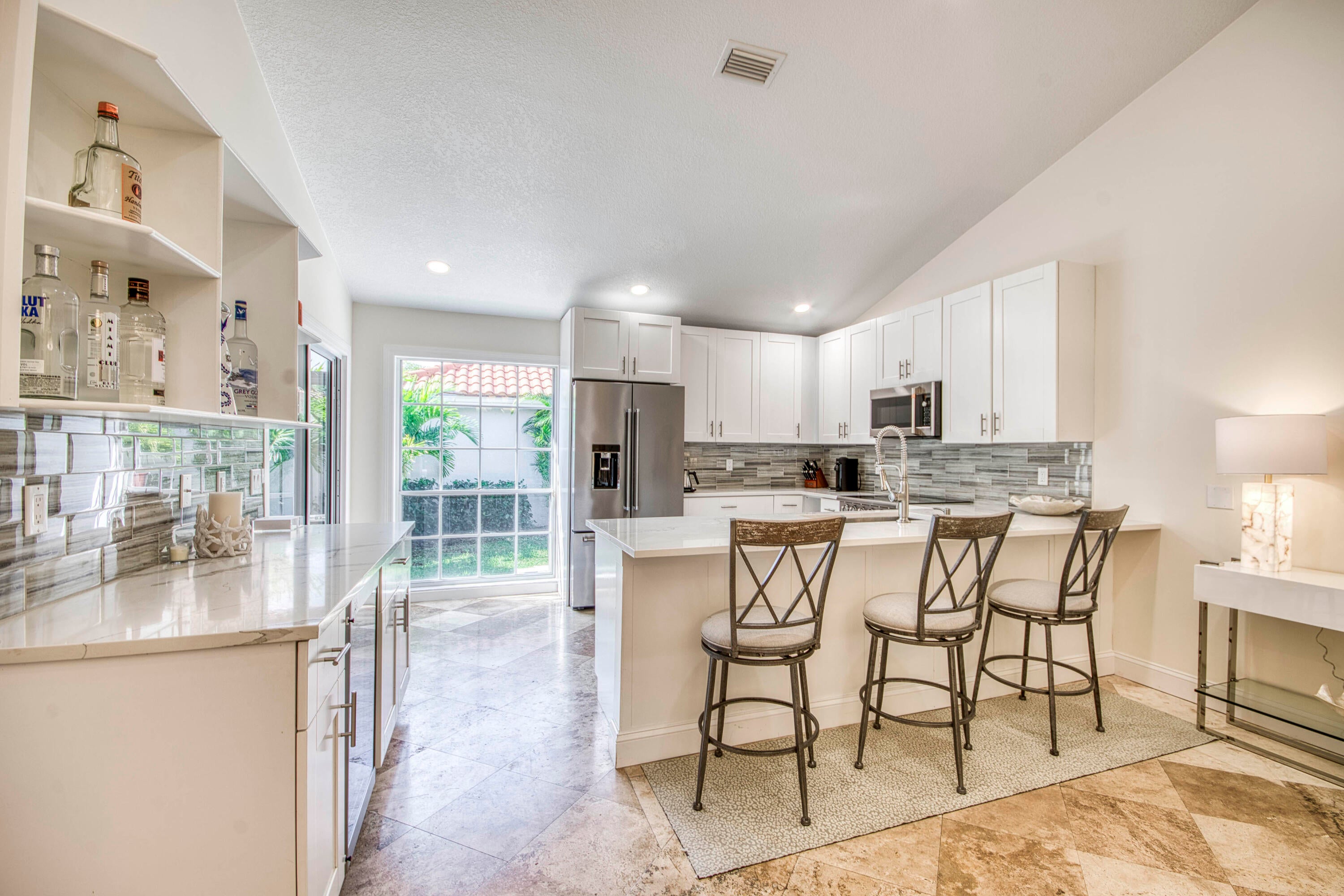Elegantly updated home in the highly sought after gated community of Eagleton Lakes at PGA National. This impeccable home features a new kitchen and 3 new bathrooms! The home offers an open, floor plan with vaulted ceilings and abundant natural light. Upgrades include a brand-new kitchen with custom cabinetry, quartz countertops, stainless-steel appliances, wine cooler, renovated baths, new flooring, and freshly painted interior and exterior. The split-bedroom layout provides privacy, and the spacious primary suite features a lovely seating area and access to the screened patio overlooking a private backyard, perfect for quiet relaxation or entertaining. Located in prestigious PGA National, residents enjoy the security of a gated community with optional club membership.Furniture is negotiable, making this home truly move-in ready.