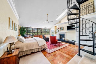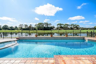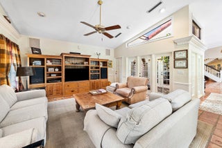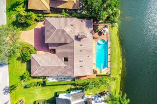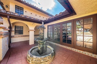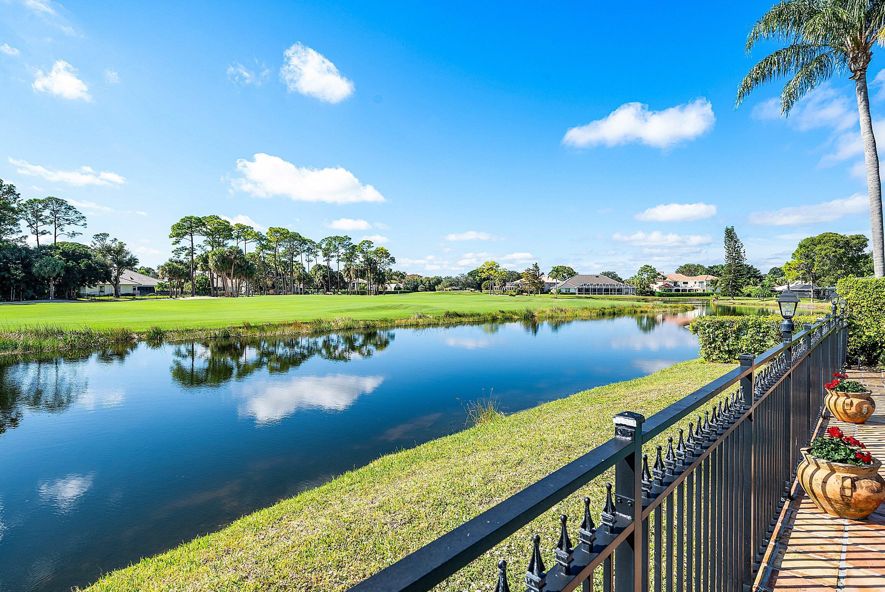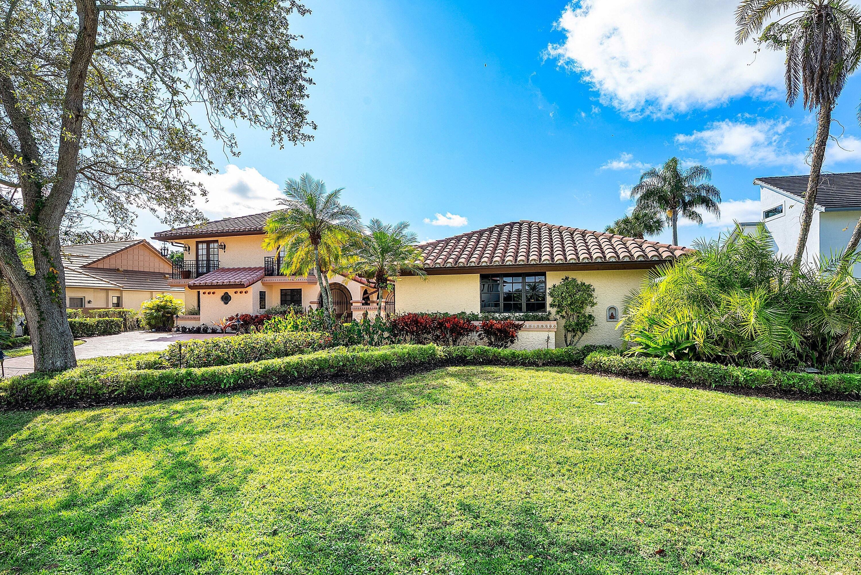 Extraordinary panoramic lake, sunset, and golf views from this architecturally unique, 4BR (Possible 5th)/5BA + office, ''Old World'' Spanish home with many custom niches and high-quality features in the sought-after community of Marlwood Estates/ PGA National. The huge, open and airy, yet cozy interior will wow guests with its soaring vaulted ceilings, stained-glass skylights and windows, 4 fireplaces, gorgeous upgraded kitchen with hand-painted Portuguese tile, spacious master bedroom with a loft library, steam shower in the master bathroom with separate Jacuzzi tub, authentic Spanish floor tiles, newer roof with hard-to-find true barrel Mission tiles, wine cellar, dental molding, Trek-wood patio deck and dock, Olympic pool & spa, and a hidden concrete-block safe room with a steel door.