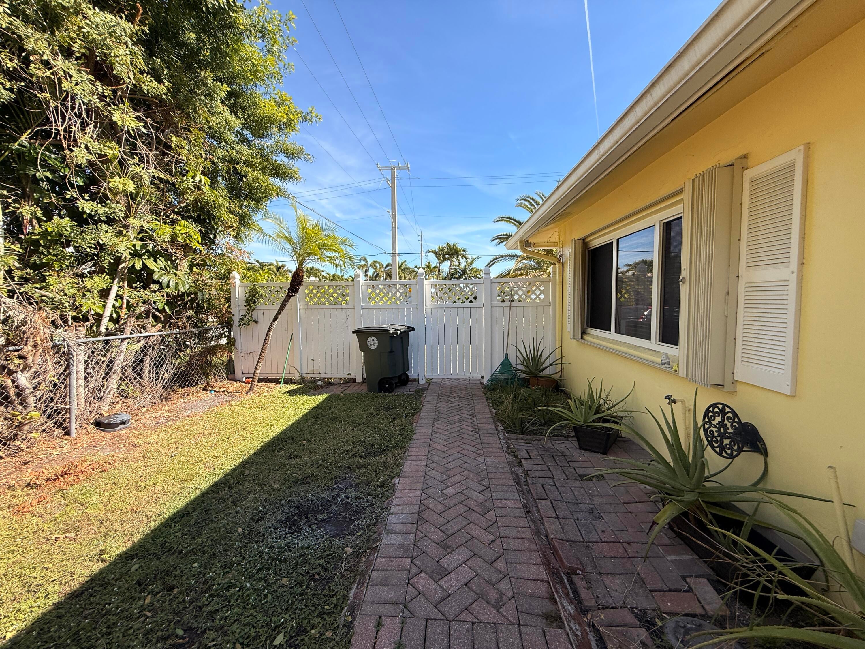 Beautifully updated Key West style one story 2BR/2BA corner duplex with 1 car garage. Ceramic tile floors thru-out, bright living/dining area, updated Kitchen with granite countertops, stainless steel appliances, single sink and wood shaker cabinets. Master & 2nd BA have granite top vanities. Master BR has walk-in closet & shower stall. Newer French doors lead to private side concrete and brick paver open patio with beautifully landscaped fenced yard. Ceiling light/fans, window treatments and central A/C. Accordion hurricane shutters and metal roof. Great East Boca location close to beaches, parks, golf courses, shopping, restaurants, schools, Federal Hwy and I-95. No pets allowed. Tenant pays electric & cable. NO HOA restrictions. Owner pays for water, sewer, lawn care & garbage.