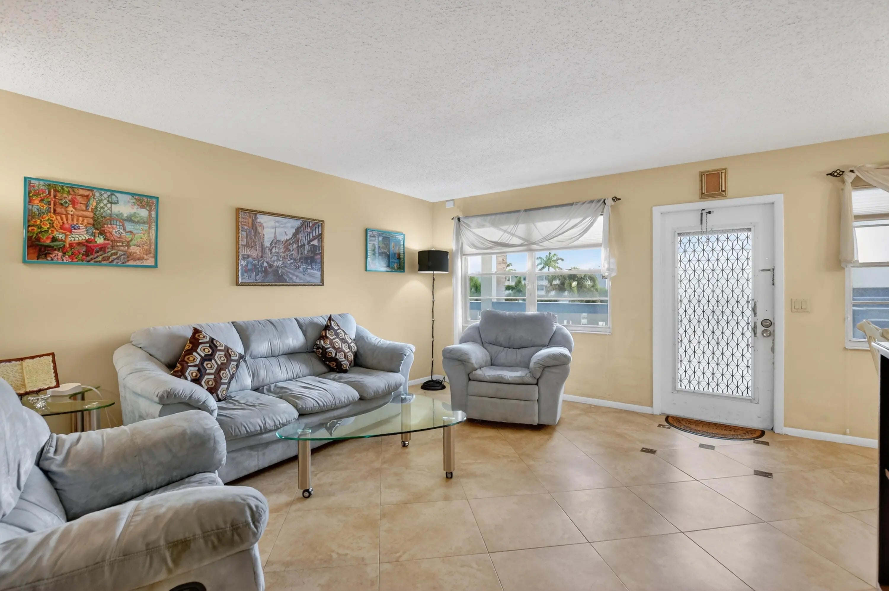 WAKE UP TO SUNSHINE ALMOST EVERYDAY! MOVE IN READY, Welcome to this , UPDATED, FULLY Modern and Comfortable FURNISHED condo in the desirable perfect location, Century Village Boca, YARMOUTH community. Designed for comfort and convenience, this residence offers modern finishes, beautiful water views, and easy access to exceptional amenities.Ceramic TILE floors in living room sunroom and one bedroom create a warm, cohesive flow.The renovated kitchen features white wood cabinetry. Comfortable modern furniture, in living room also provides extra sleeping space. 2 full bedrooms and bathrooms in this luxury size condo.A lanai with breathtaking water views provides the perfect retreat for