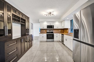 Bathed in natural light, this spacious and elegant two-story residence offers an open, airy layout designed for both refined living and effortless entertaining. The home currently features three bedrooms but can easily be restored to four. Two bedrooms were thoughtfully combined to create an expansive primary retreat; reinstalling the wall and reconfiguring the hallway door allows for a seamless return to a fourth bedroom if desired.Set on an oversized, private waterfront canal lot at the end of a quiet cul-de-sac, the property is surrounded by lush, mature landscaping and tranquil water views, creating a serene and secluded atmosphere.The grand living and dining areas showcase wood-look tile flooring and generous proportions, ideal for hosting on any scale. The designerkitchen is both stylish and functional, featuring granite countertops and backsplash, stainless steel appliances, rich wood cabinetry, and exceptional pantry storage with elegant glass-front doors. A separate family room provides additional space for relaxed everyday living. All bedrooms are located upstairs and feature high-end laminate flooring. The home offers 2.5 beautifully renovated bathrooms, all updated in 2020, and is further enhanced by a brand-new roof. The expansive corner lot provides abundant outdoor space for entertaining, recreation, or simply enjoying the peaceful waterfront settingan exceptional opportunity to own a private, move-in-ready home in a truly desirable location. Investor friendly, can be rented immediately.