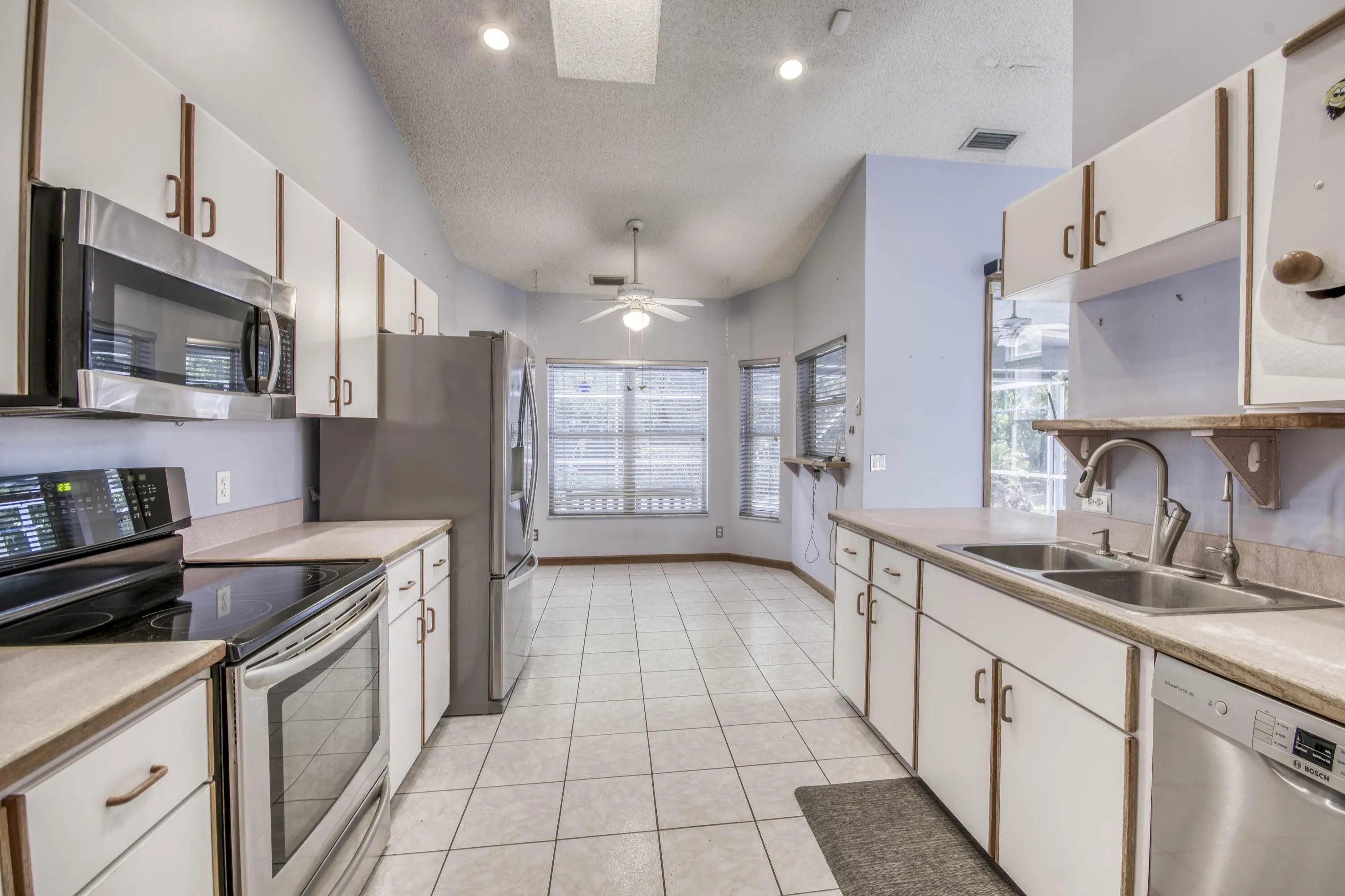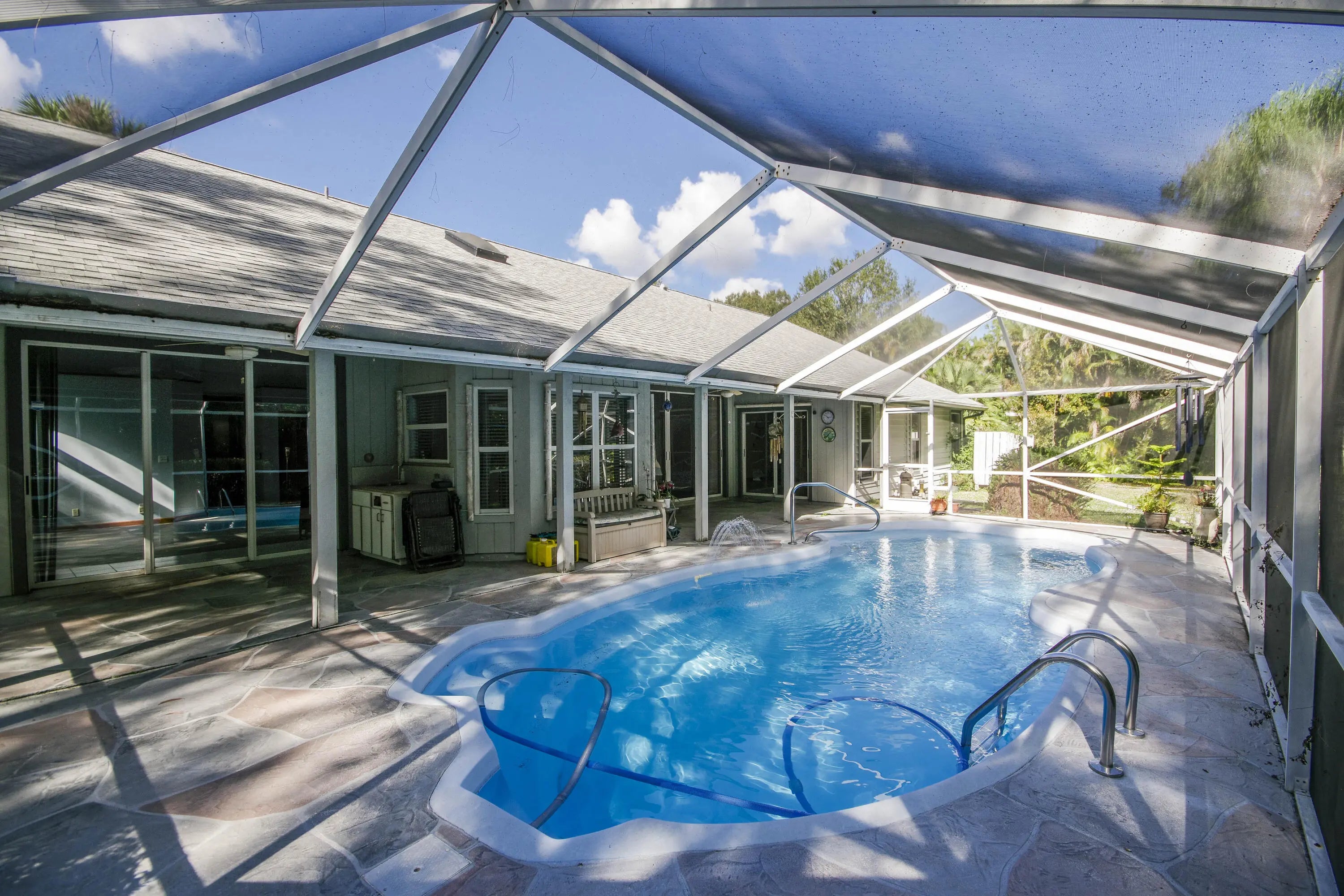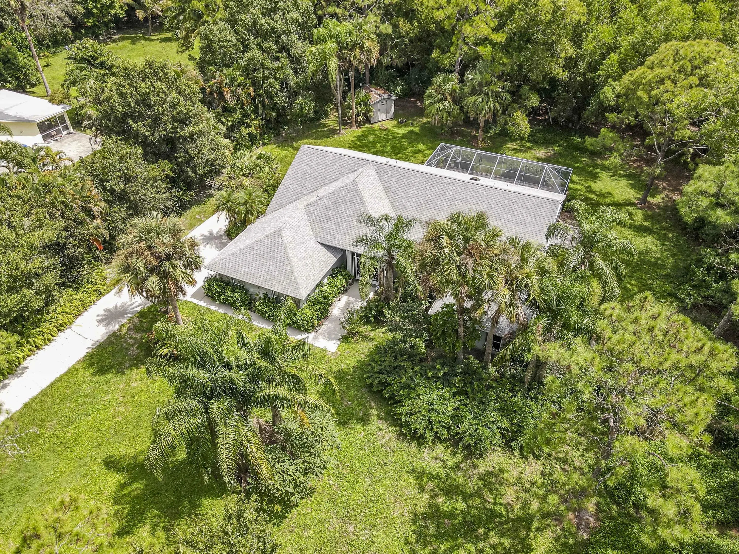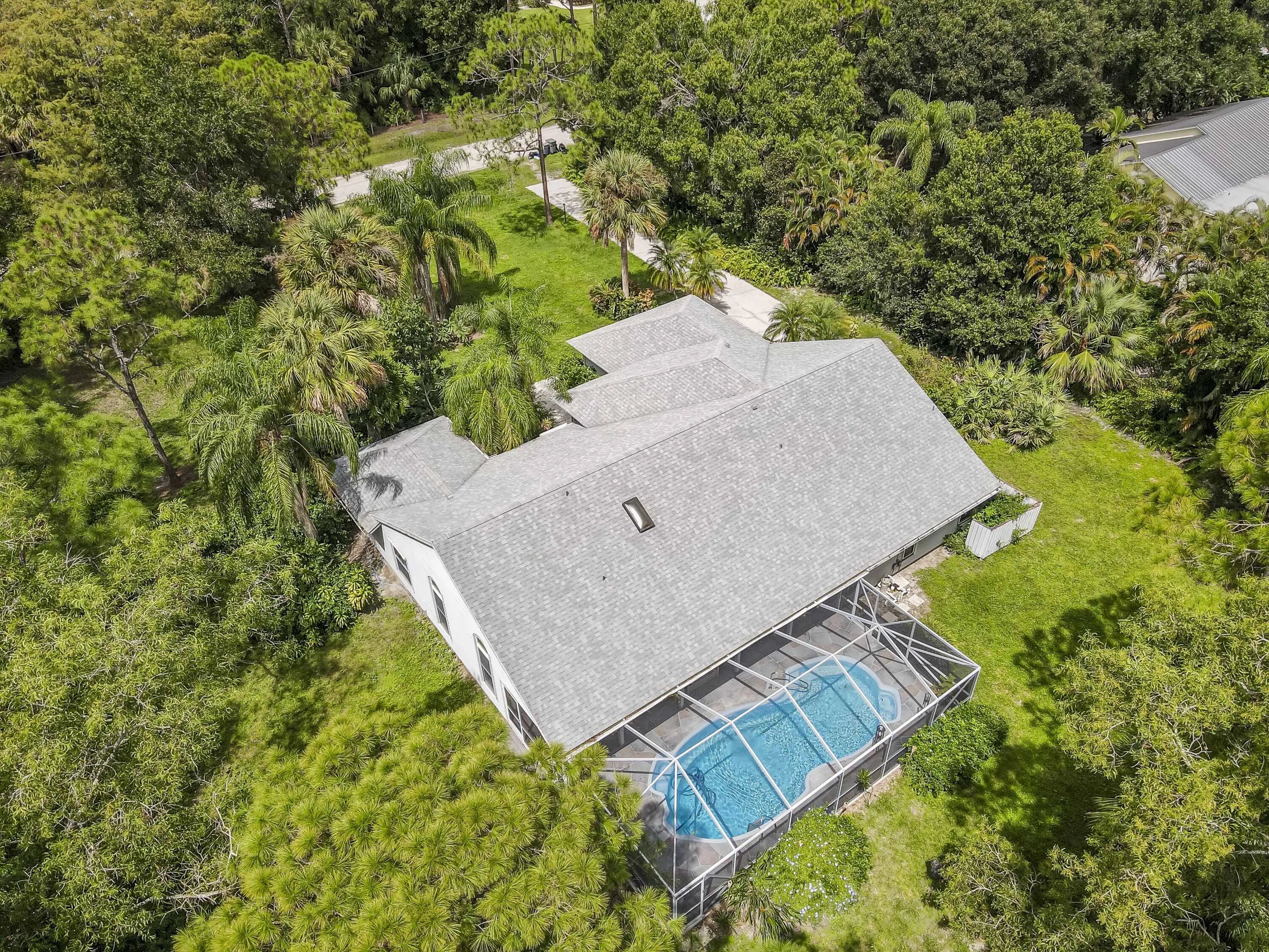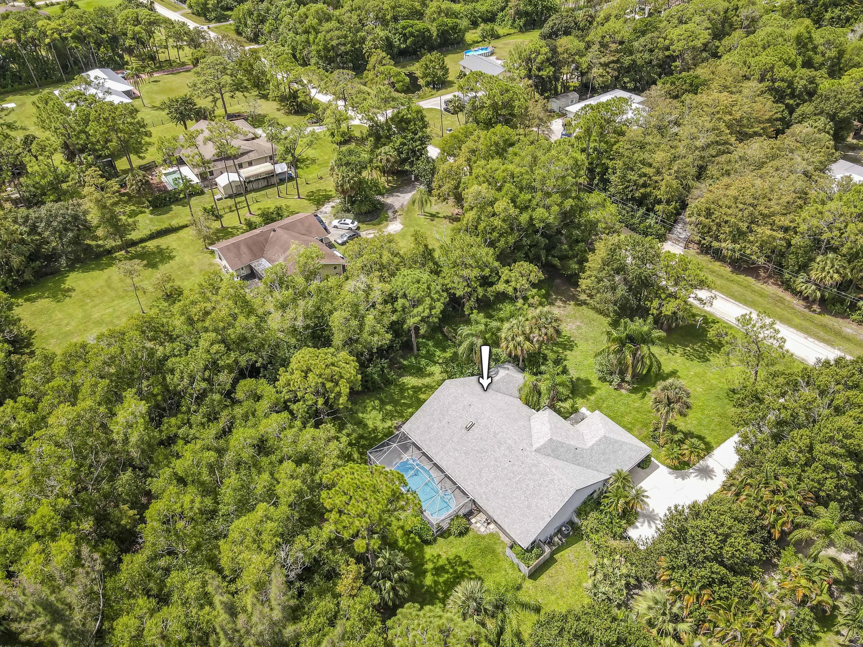 She's very healthy, but she DOES need a facelift! The original owner has 35 years of happy memories in this home, and its next happy chapter could be yours! Tall ceilings send your gaze upward as you imagine your own touch on over 2500 sq ft of potential: Laid out with family function in mind, you have 4 bedrooms and 3 full baths, including a very sizable primary bedroom, bath and his & hers walk-in closet. Outside, a screened pool deck on a fully fenced and private 1.25 acres. Roof replaced 2012, AC 2018, water heater 2018, whole house water softener and Reverse Osmosis water purifier in the kitchen. Impact windows in the living room, hurricane fabric for the remaining openings. Blueprints are available in the Documents. This is a friendly neighborhood in Jupiter Farms with freedom of