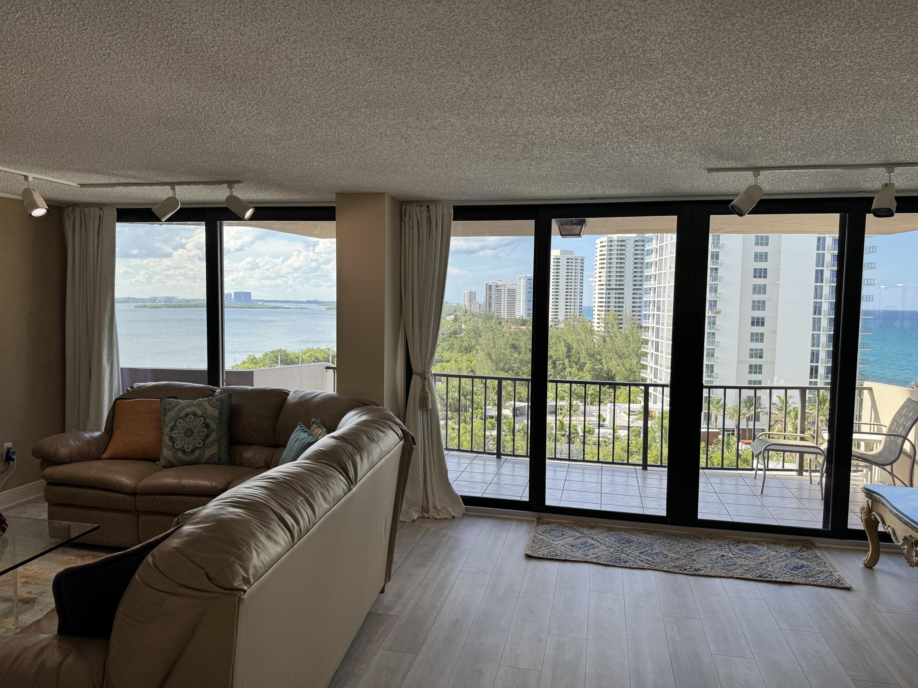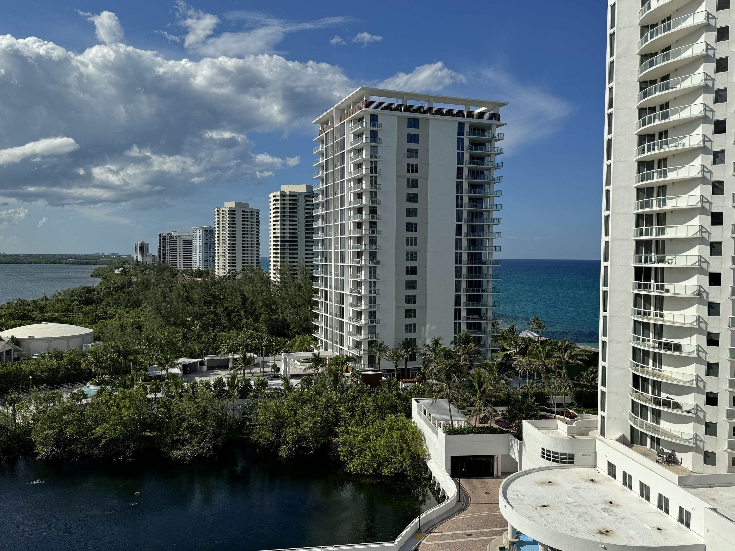 The 2BR / 2BA split BR comes with furnished, available for yearly rental. Unit has excellent views of ocean and intracoastal. Kitchen has granite counters and ample cabinet space, backsplash & nice appliances. Large washer dryer inside unit. Impact windows throughout. Cote D'Azur has fob access to each tower. On-site manager M-F. Pool, grills & large outdoor social area between the two towers. Gym, community room, library & tennis courts. Close to shopping, dining, entertainment and PBI Airport.