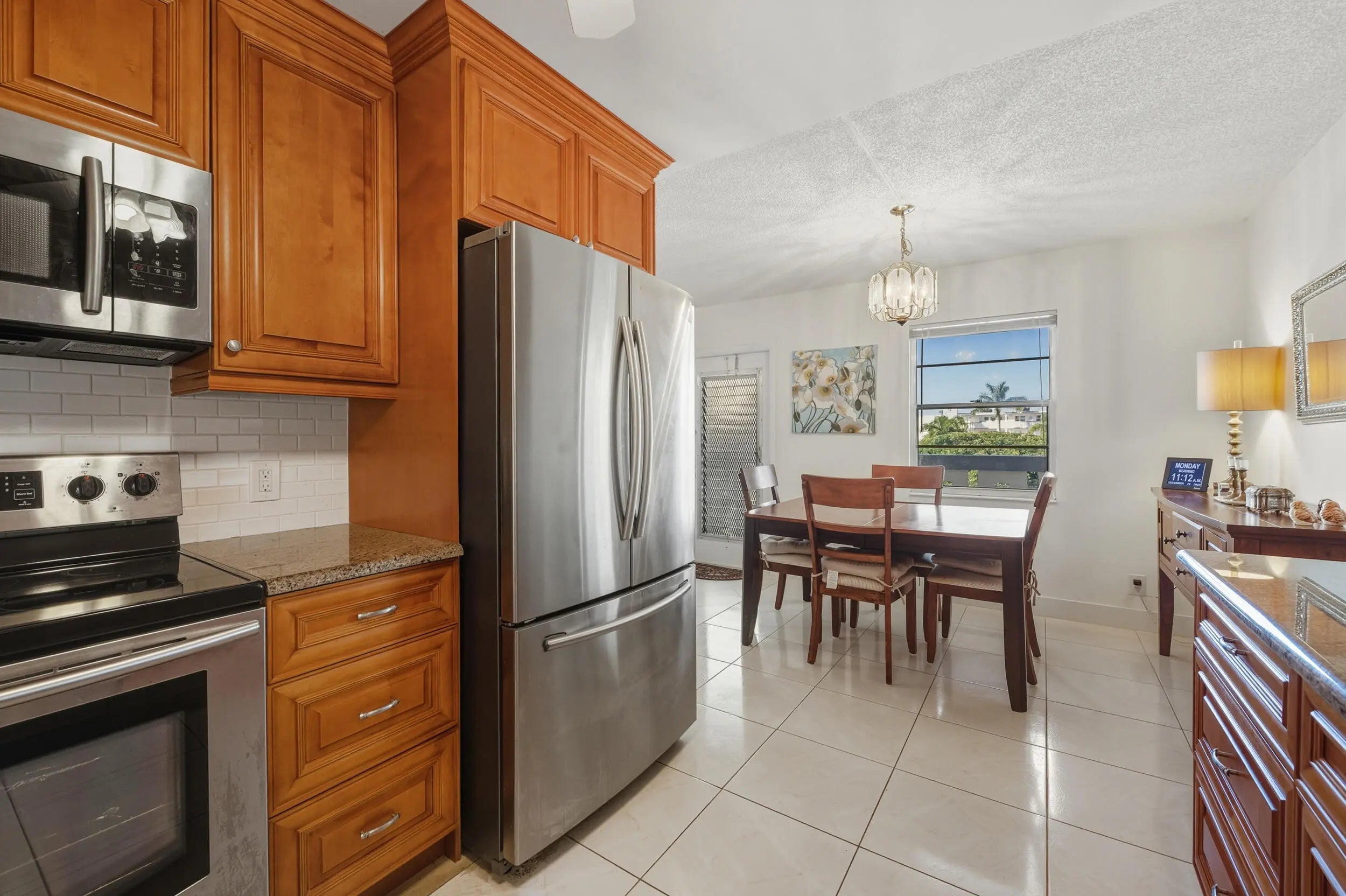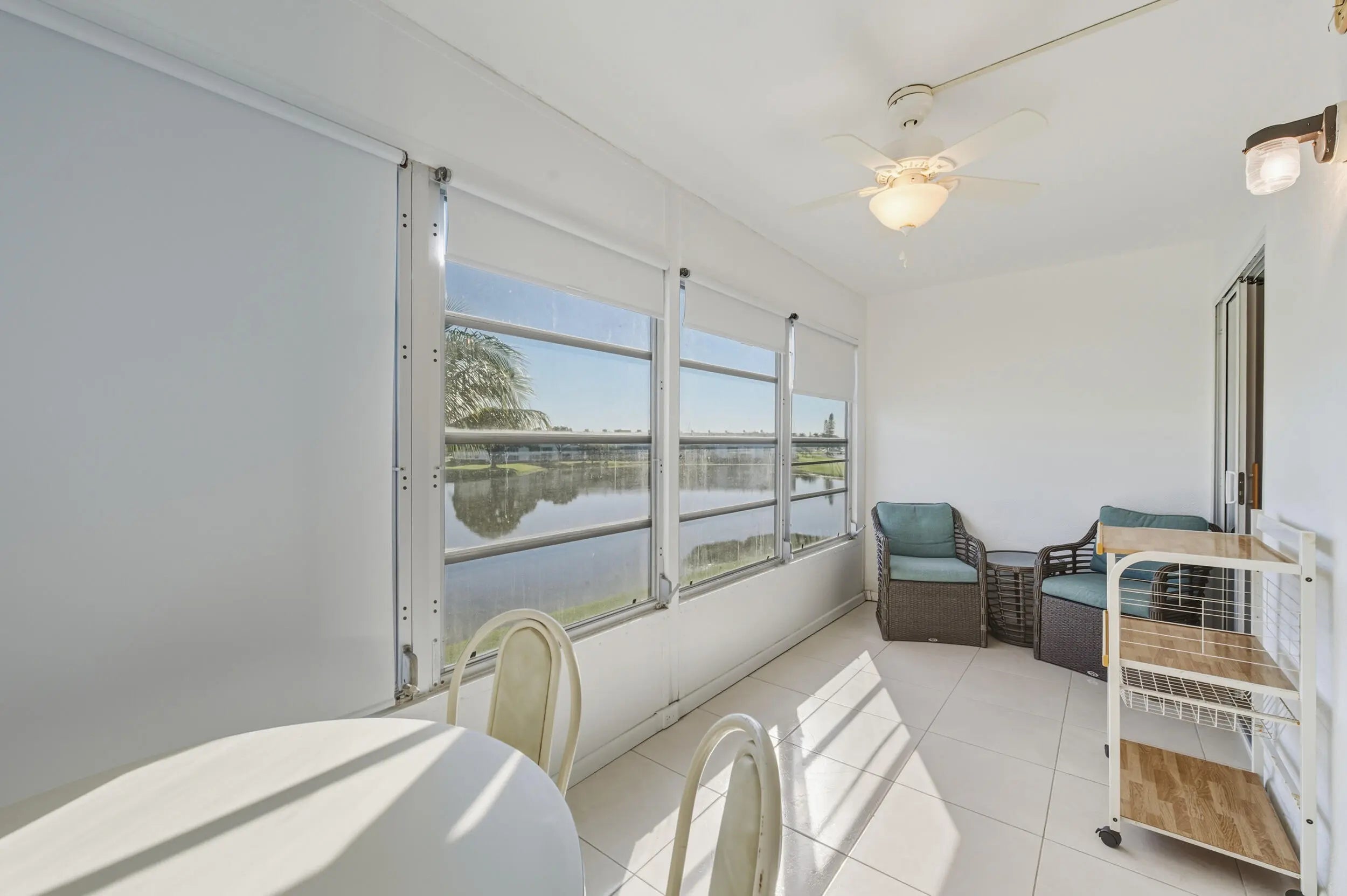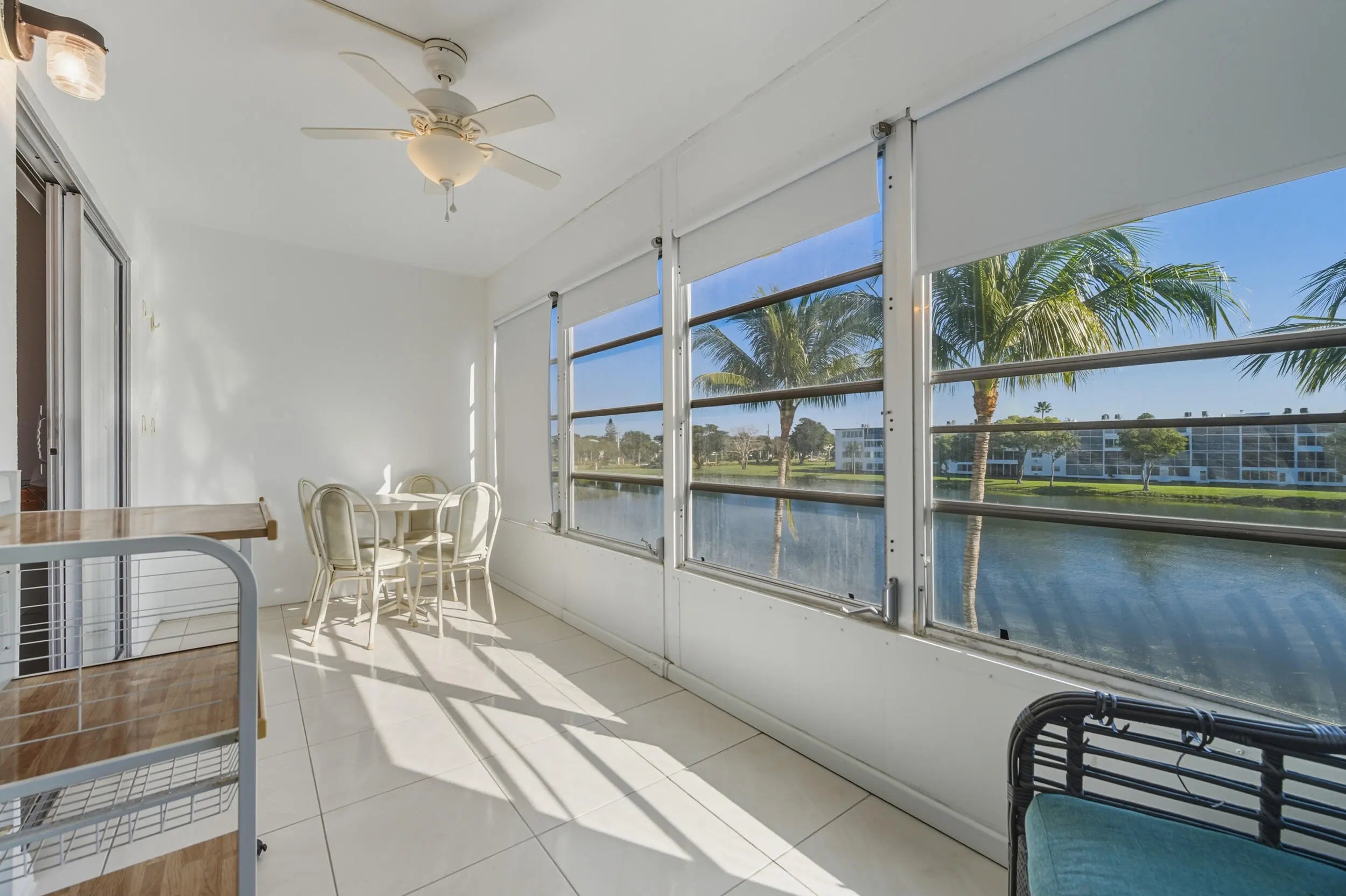 Welcome to 3063 Yarmouth D, ideally located just steps from places of worship within the highly sought-after Century Village 55+ Country Club. This turnkey, fully furnished residence offers comfort, style, and serene lake views. Enjoy a beautifully remodeled kitchen featuring granite countertops and stainless-steel appliances, perfect for everyday living and entertaining. New tile flooring enhances the main living areas, while the bedrooms feature engineered laminate flooring for added warmth and comfort. Relax and unwind with gorgeous lake views, and appreciate the main bathroom with a tub and updated vanity. Sliding doors into the enclosed patio from living area and master bedroom. Additional highlights include a new AC, making this home truly move-in ready.