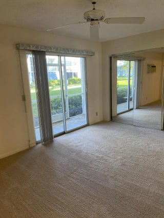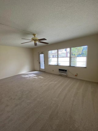 This wonderful sought after first floor unit has BRAND NEW Carpet and Range. Walk right out your door to Laundry, Mail and Parking. Spacious one bedroom with one and a half baths and great open living and dining area. Ready to move right into or for investors rent out immediately with no waiting period! Ample storage closet in hall and large closet in bedroom. Beautiful newly screened patio off bedroom with garden view. Century Village is a beautifully landscaped and maintained 55 plus community in Boca Raton which has a fabulous clubhouse with Tennis ,Pickleball, pool, transportation etc. Seller Motivated make an offer!!