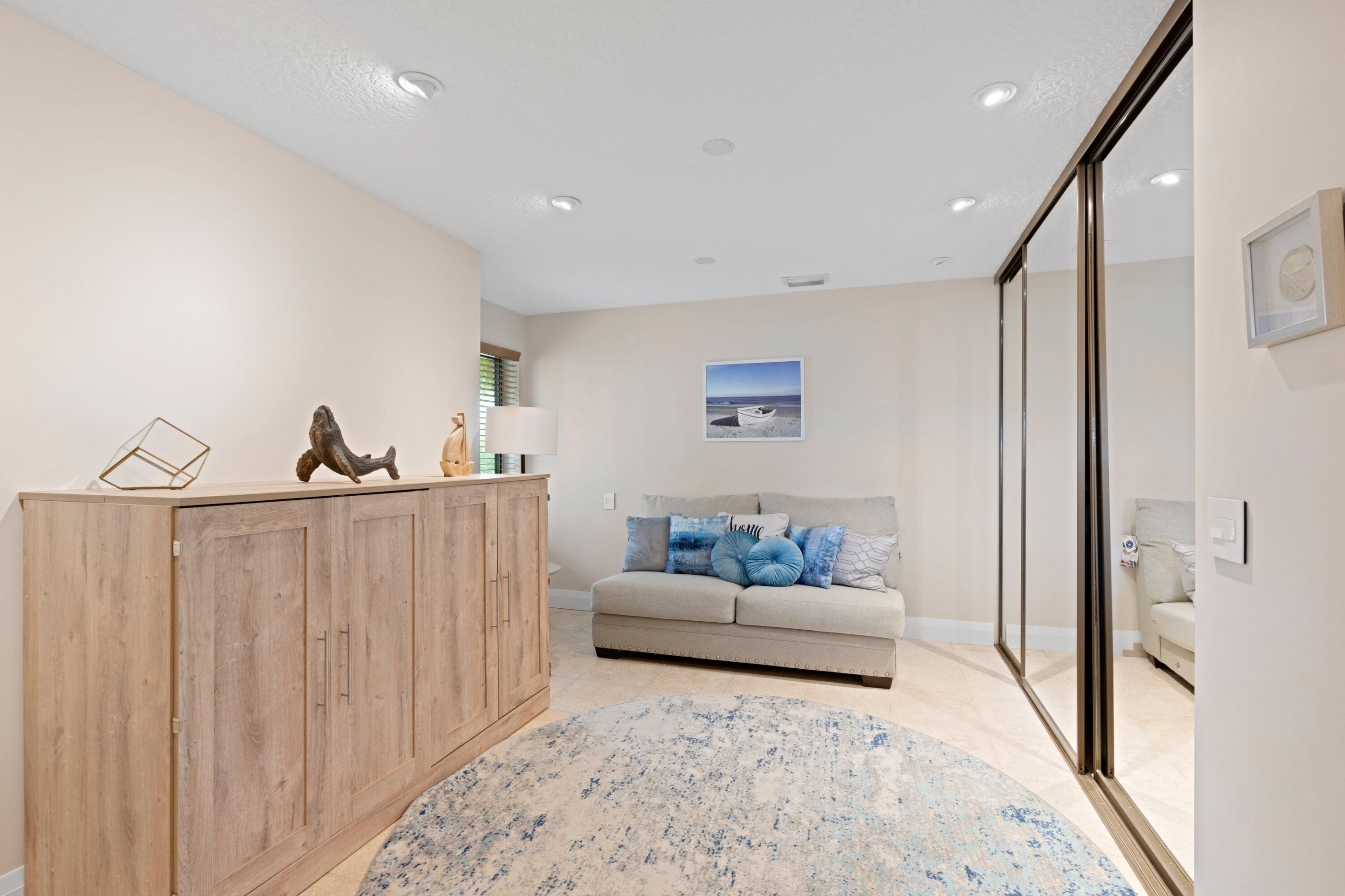 Available 2026 Seasonal rental. Walk to the turquoise waters of Jupiter Beach & the Juno Pier from this tastefully turnkey furnished 3 bedroom + loft, located high up on the Ridge in the Bluffs. Home offers lovely east views (peek of the ocean) & spectacular ocean breezes. Natural light flows through each room. Relax on the private elevated deck & watch kiteboarders sail along the beach. Custom features: Shell stone & wood flooring throughout, custom woodwork in office/den/BR in large sunny loft, extended open kitchen w/granite c-tops, french doors, coquina wood burning fireplace, atrium dining room in a natural setting, cabinets and sink in laundry room. Amenities include: community pool, tennis, pickleball, basketball, playgrounds and parks. close to shopping and restaurants
