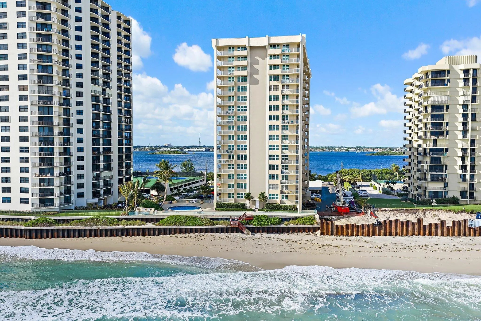 Direct oceanfront and on the sand, this 2-bedroom, 2-bath residence in the desirable Aquarius Condominium with breathtaking Atlantic Ocean and Intracoastal views. This southeast corner residence features a wraparound balcony capturing spectacular sunrises and panoramic water vistas. Turnkey and move-in ready, just bring your toothbrush.The spacious open floor plan is beautifully fully furnished, offering stunning water views from every room. Enjoy a resort-style lifestyle with an oceanfront pool, private beach access and washer and dryer in unit.